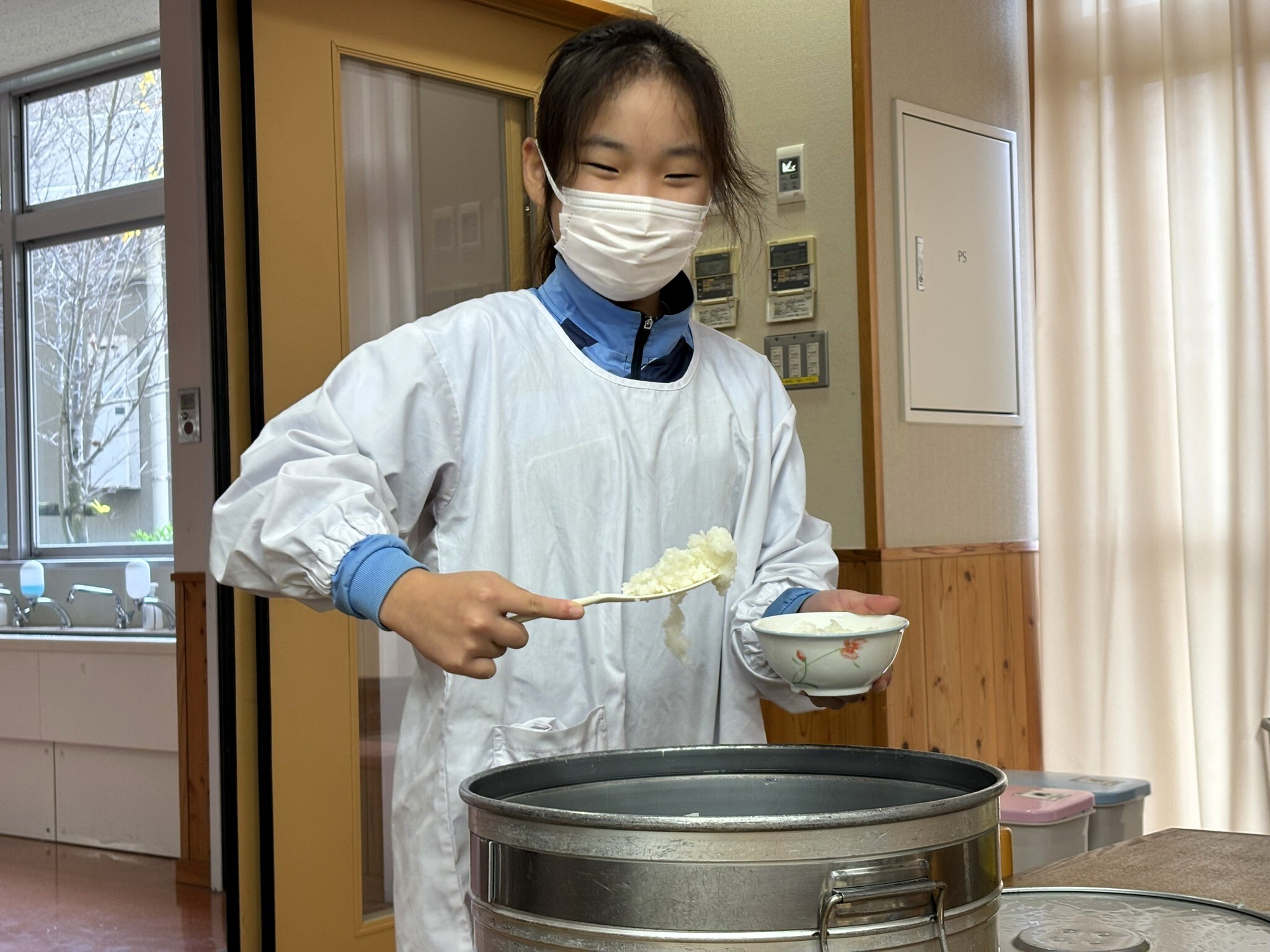 給食の時間には、いつも以上に大きな「いただきます」の声が教室に響き渡りました。笑顔でごはんを味わい、何度もおかわりをする姿が見られ、見事に完食しました。