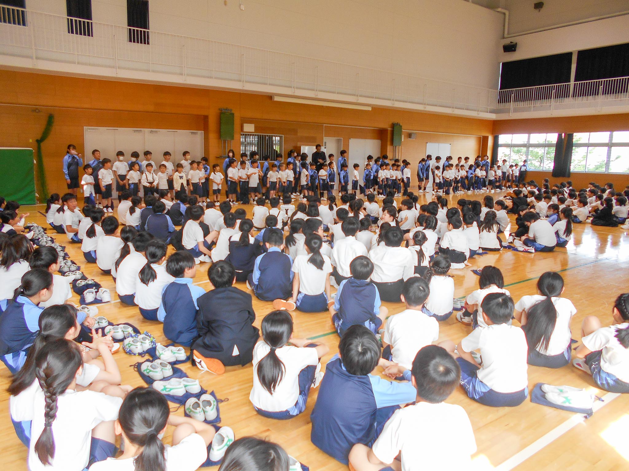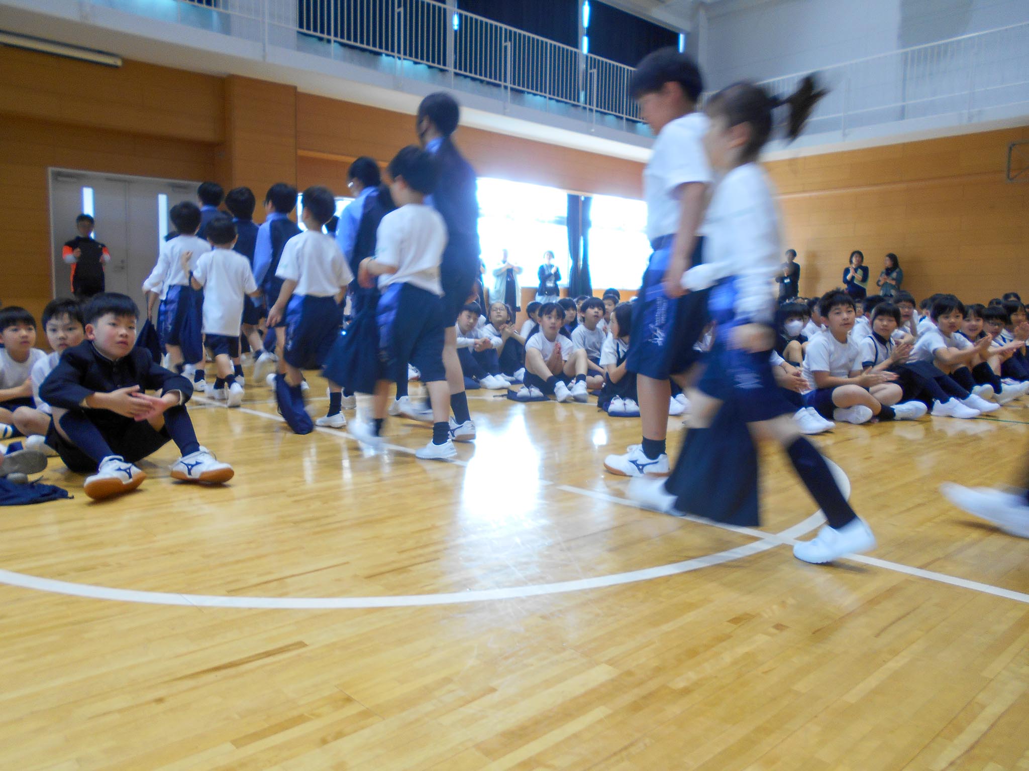 はじめに、M2生(6年生)のお兄さん、お姉さんと手をつないで入場し、P2~M1生(2~5年生)が手拍子で迎えてくれました。