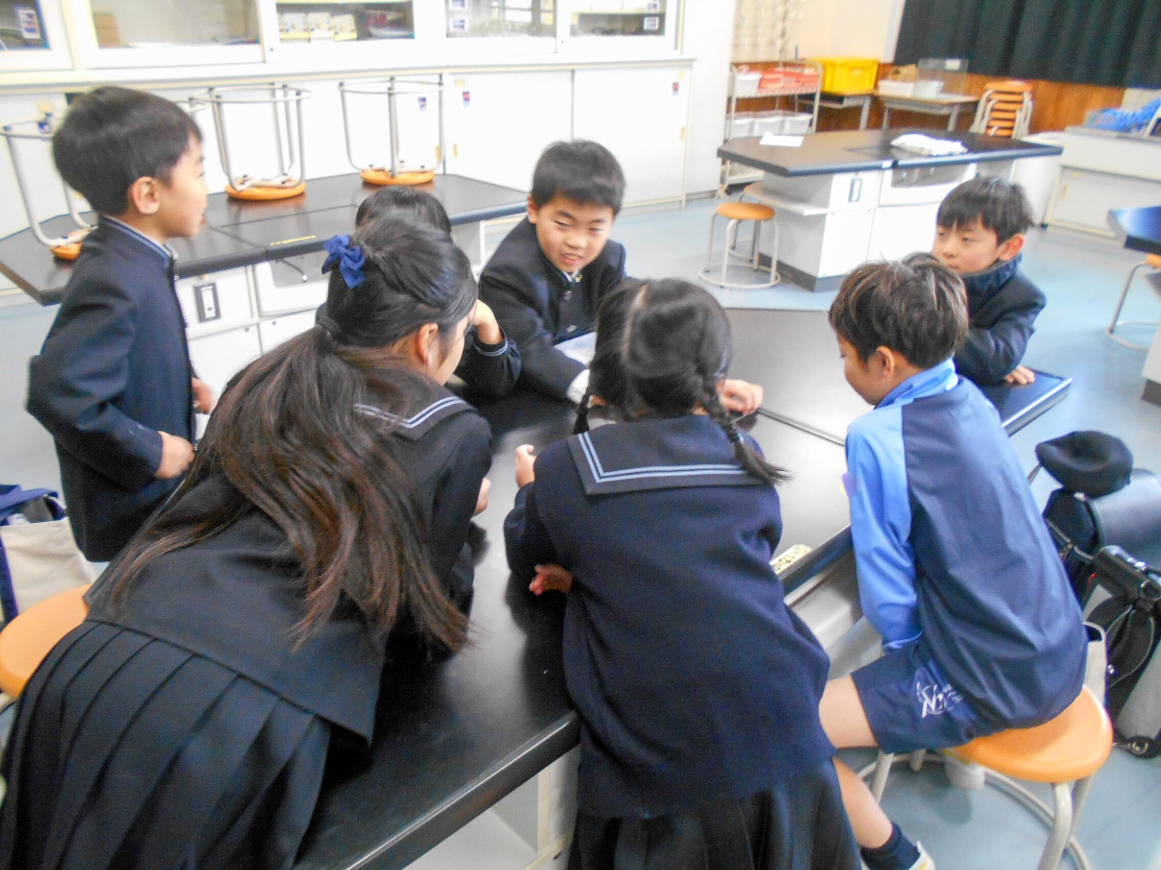 学期始めなので、それぞれの登下校の同じグループに分かれて、登下校班会を行いました。