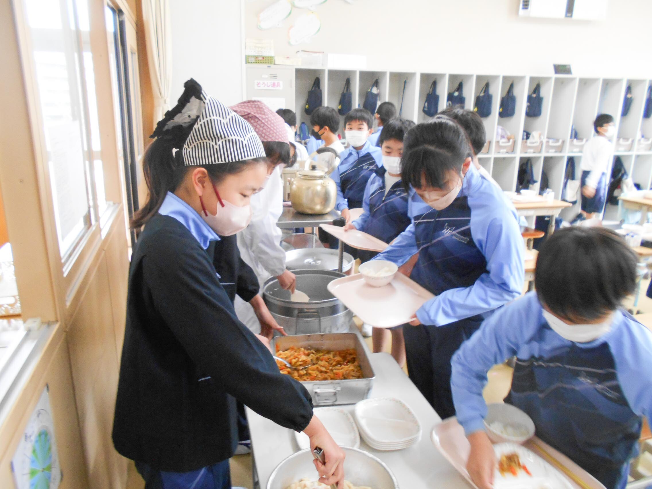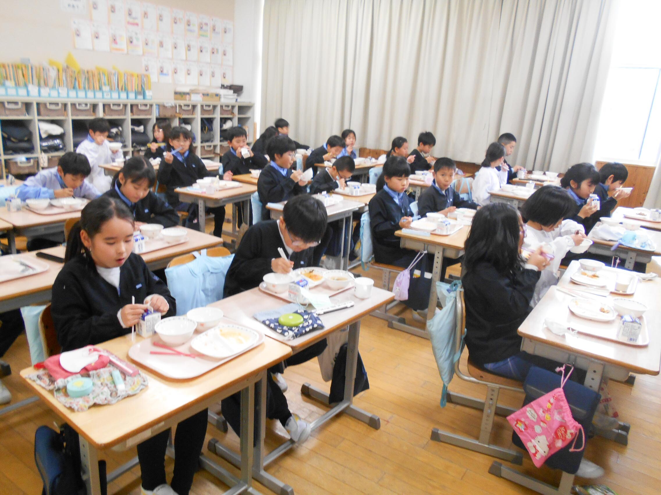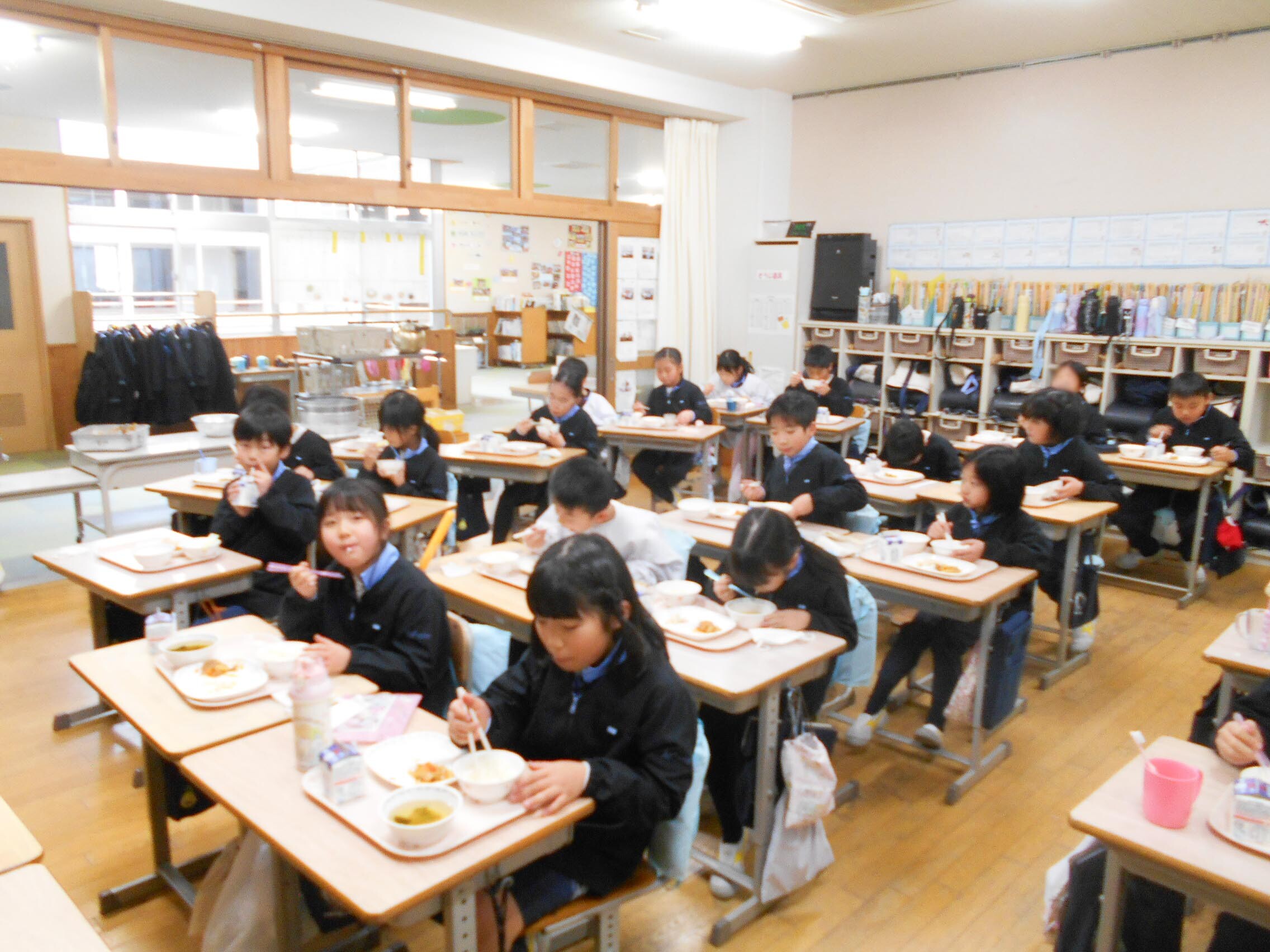 久しぶりのおいしい給食 2026.01.14(水) Tweet 3学期が始まって2日目。今日から給食が始まり、平常授業が始まりました。 久しぶりに教室でみんなと一緒に食べる給食。メニューは、ご飯、豚肉のバーベキューソテー、マカロニサラダ、コンソメスープ、牛乳です。 自分たちで配膳した後、「いただきます」。 パクパクとおいしそうに子どもたちは給食を食べていました。 « 3学期がスタート! 3学期の登下校班会 »