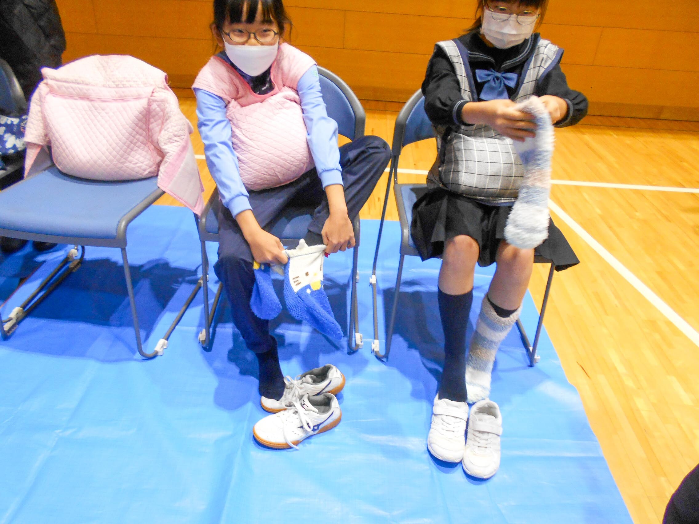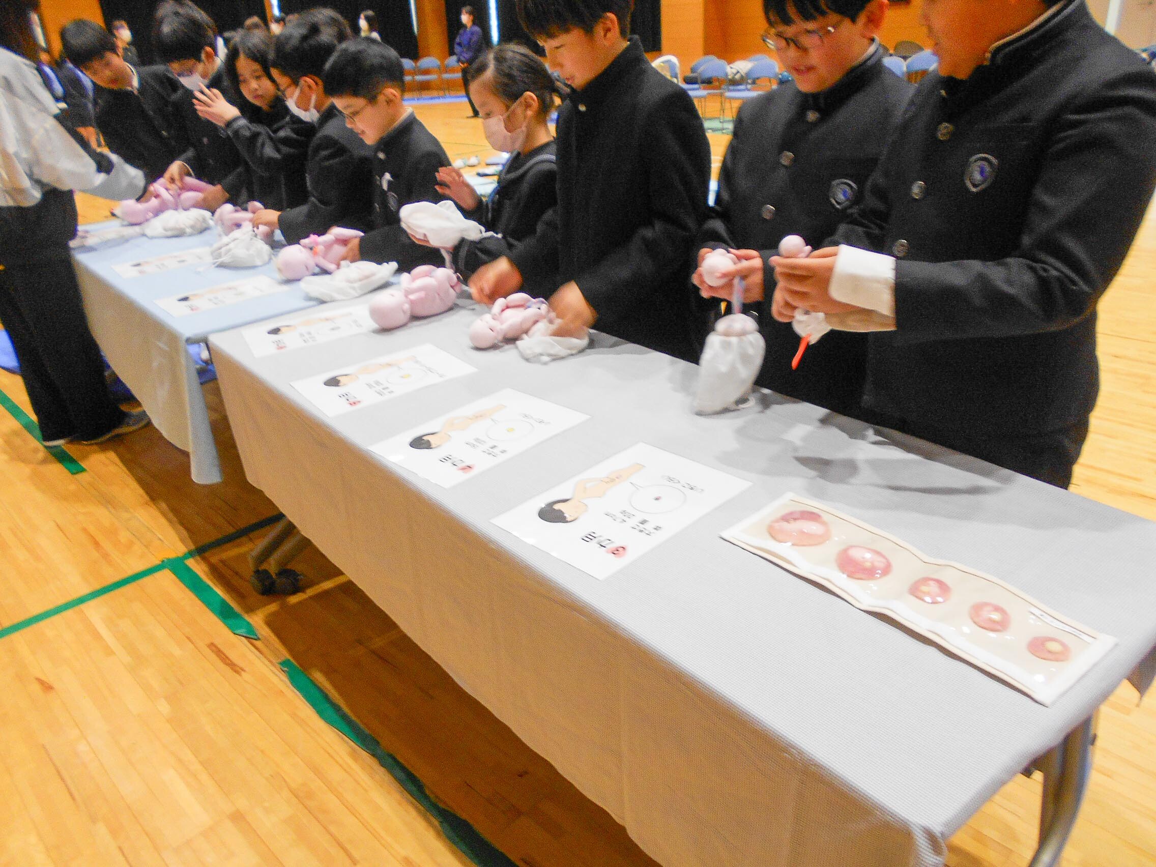 その後、赤ちゃん人形を抱っこしたり、妊婦体験をしたり、心音を聴いたりする体験学習をしました。