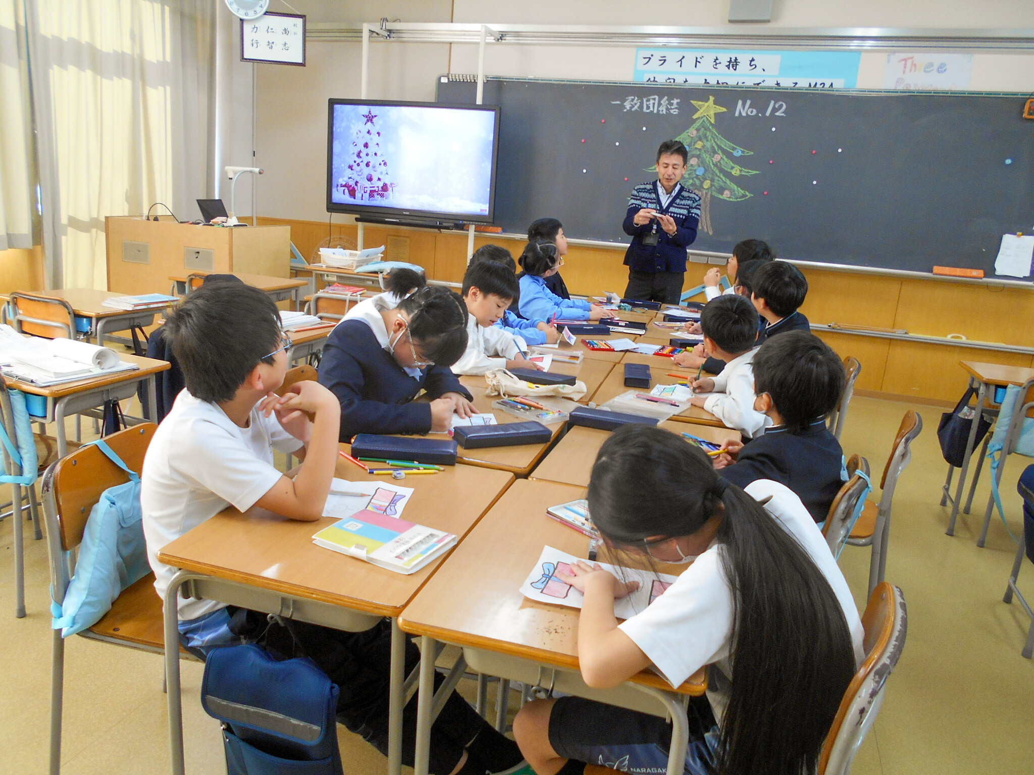 楽しいクリスマス会 2025.12.18(木) Tweet 16日に全校縦割り活動として、クリスマス会を行いました。 今回は各グループに分かれて、クリスマスカードを作りました。リーダーのM2生(6年生)が作り方の説明をした後、色鉛筆で自分の好きな絵を描き、思い思いのカードが出来上がりました。 « クリスマス文庫をいただきました いのちの授業 »