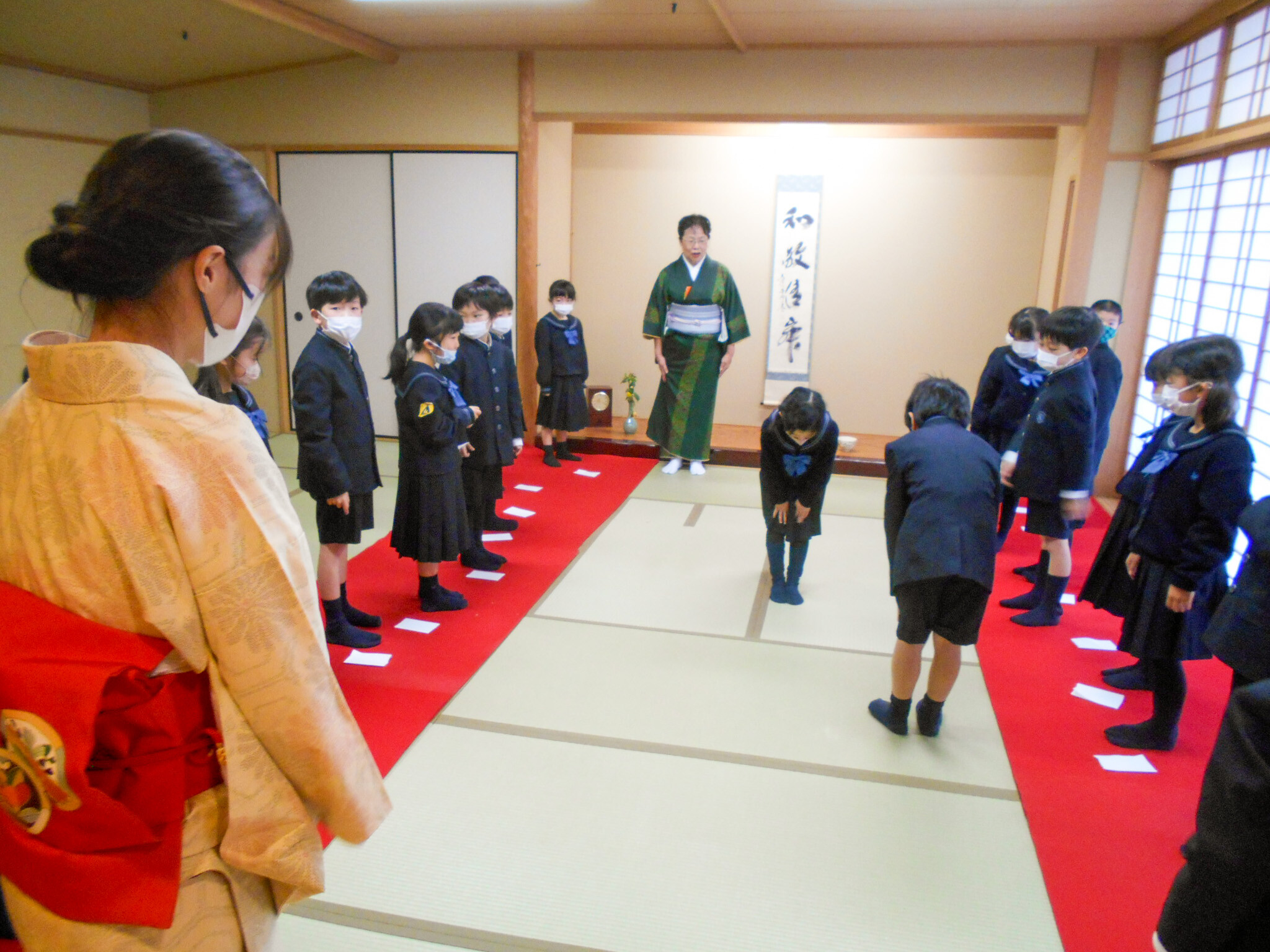 P1生(1年生)が、礼法の時間にお茶会をしました。