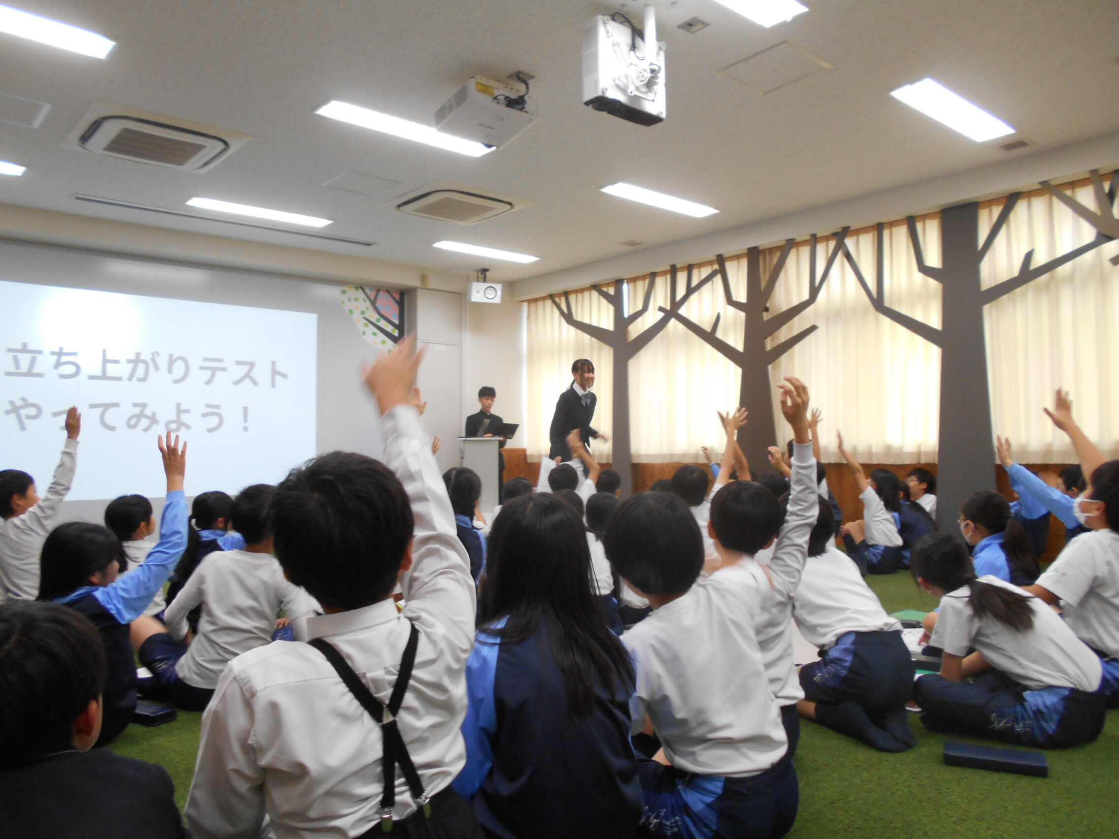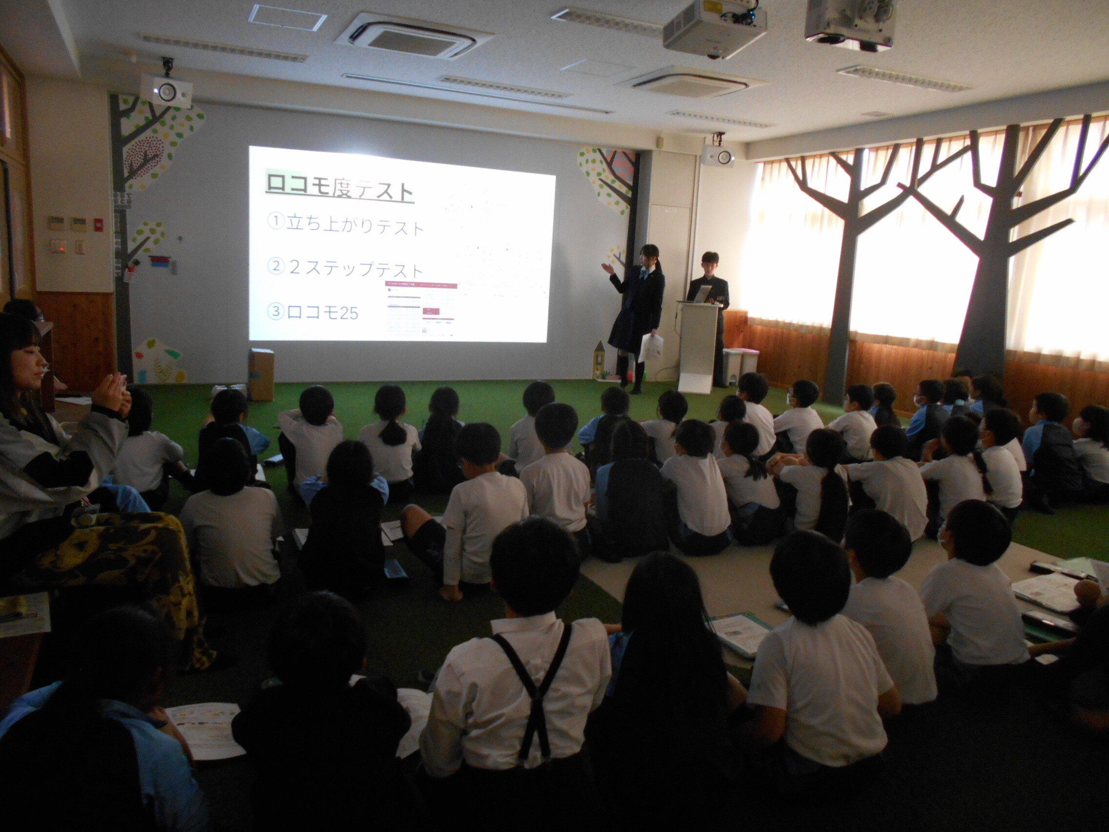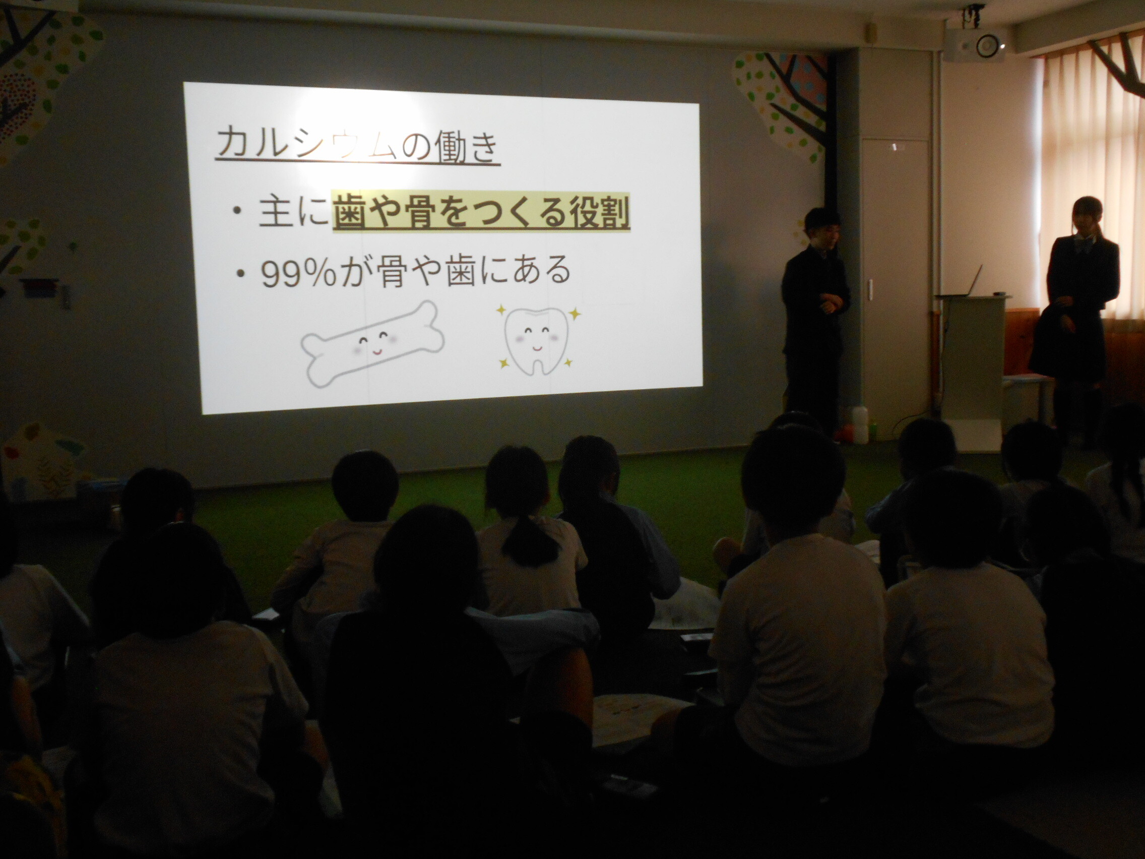 Y2生(高校1年生)の生徒二人が、P4生(4年生)に食育に関わるお話をしてくれました。