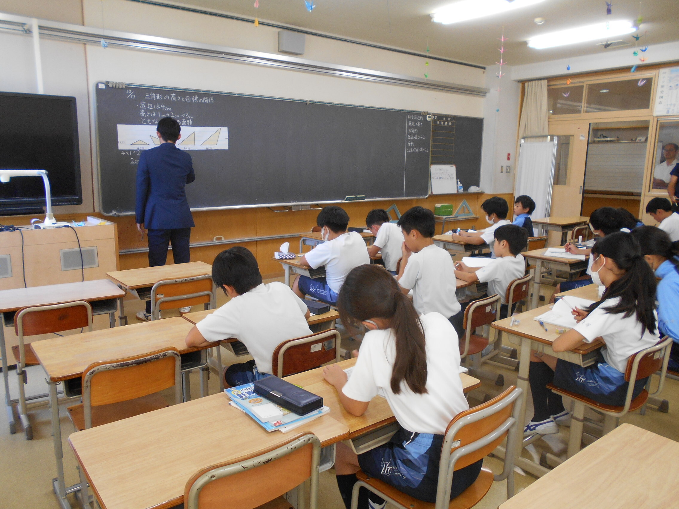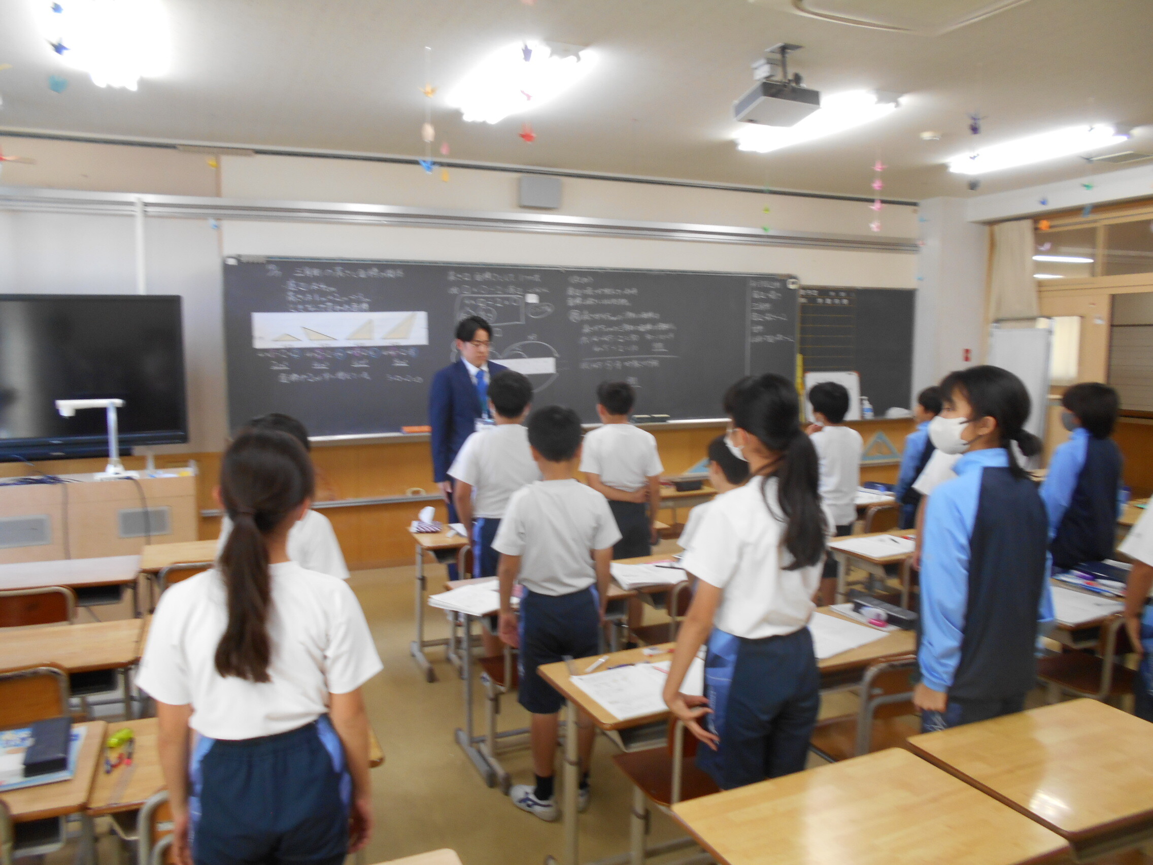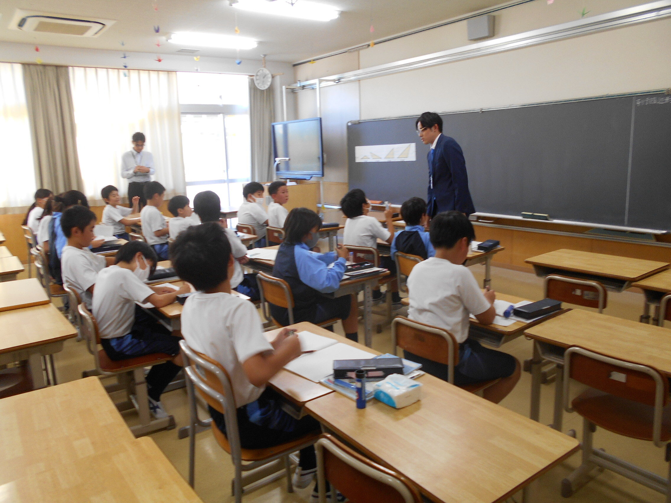 今日はM1生(5年生)に来ている教育実習生が算数の研究授業を行いました。単元は