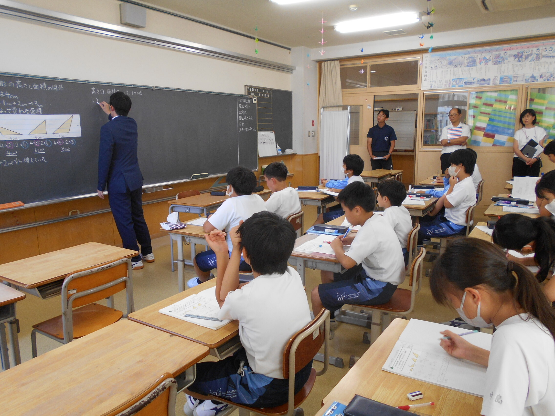 今回の授業の目標は、三角形の底辺の長さを一定にして高さを変えたとき、面積は高さに比例することを理解するでした。