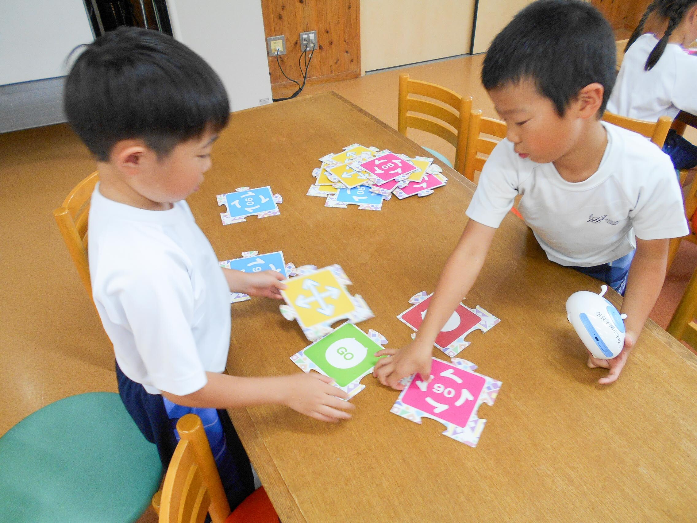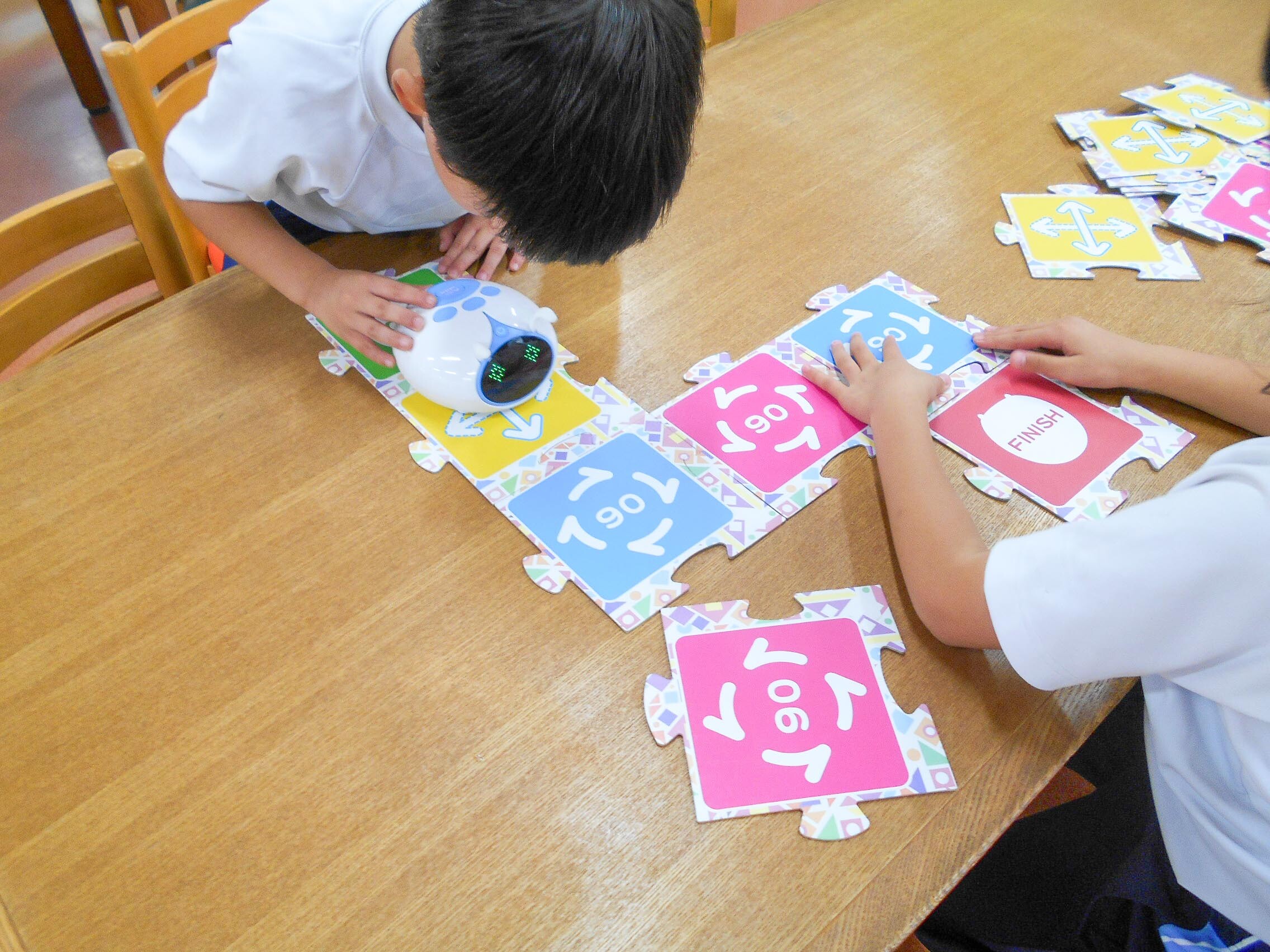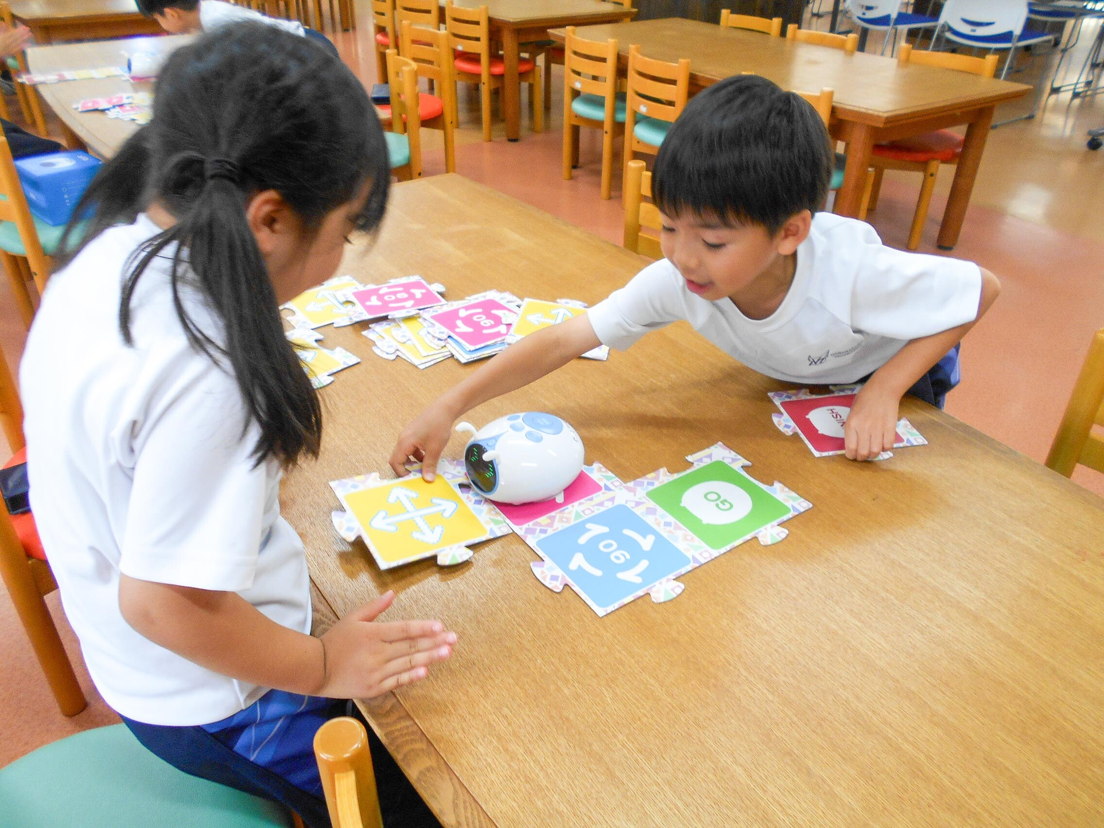 アリロと遊ぼう 2025.10.10(金) Tweet P1生(1年生)が情報科の授業で、ロボット(アリロ)を使ってプログラミングの学習を行いました。 5枚のカードを机の上に並べて、アリロが進んでいく道順を二人で考えます。一度やってみてできなければ、相談してカードを並び替えて再度チャレンジ! この試行錯誤することと二人で話し合うことがとても大切です。 « ほり進み版画 中間考査始まる! »