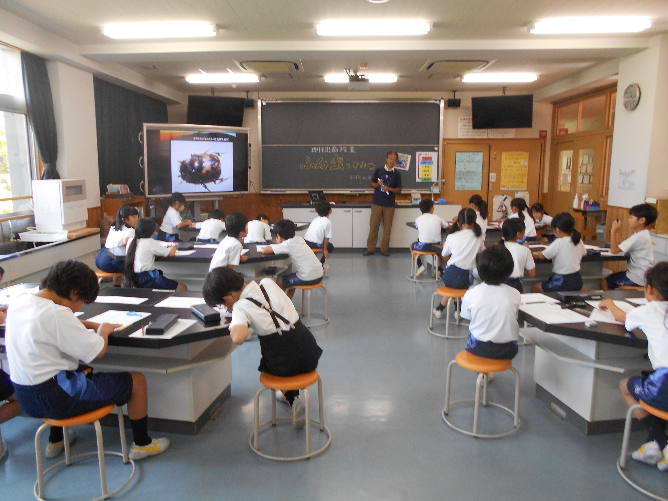 P3生(3年生)がサイエンス教室を行いました。ゲストティーチャーとして、ならまちふん虫館の中村先生がきてくださいました。