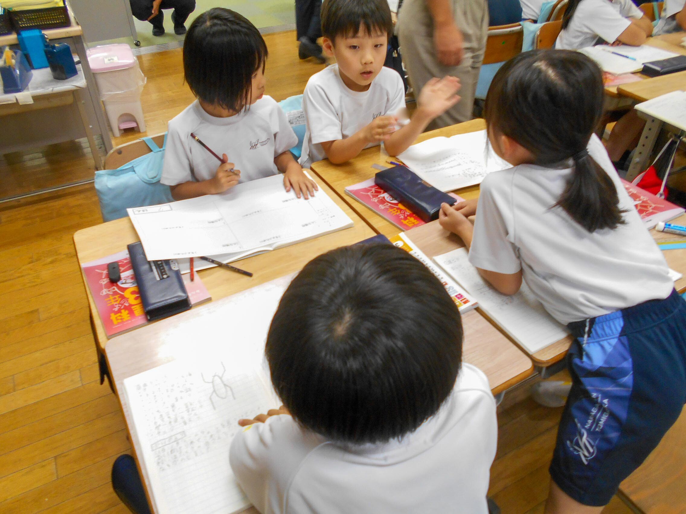 子どもたちは、今までこん虫を見つけた経験を思い出して、一生懸命に自分の考えをまとめたり、グループになって話し合いをしていました。