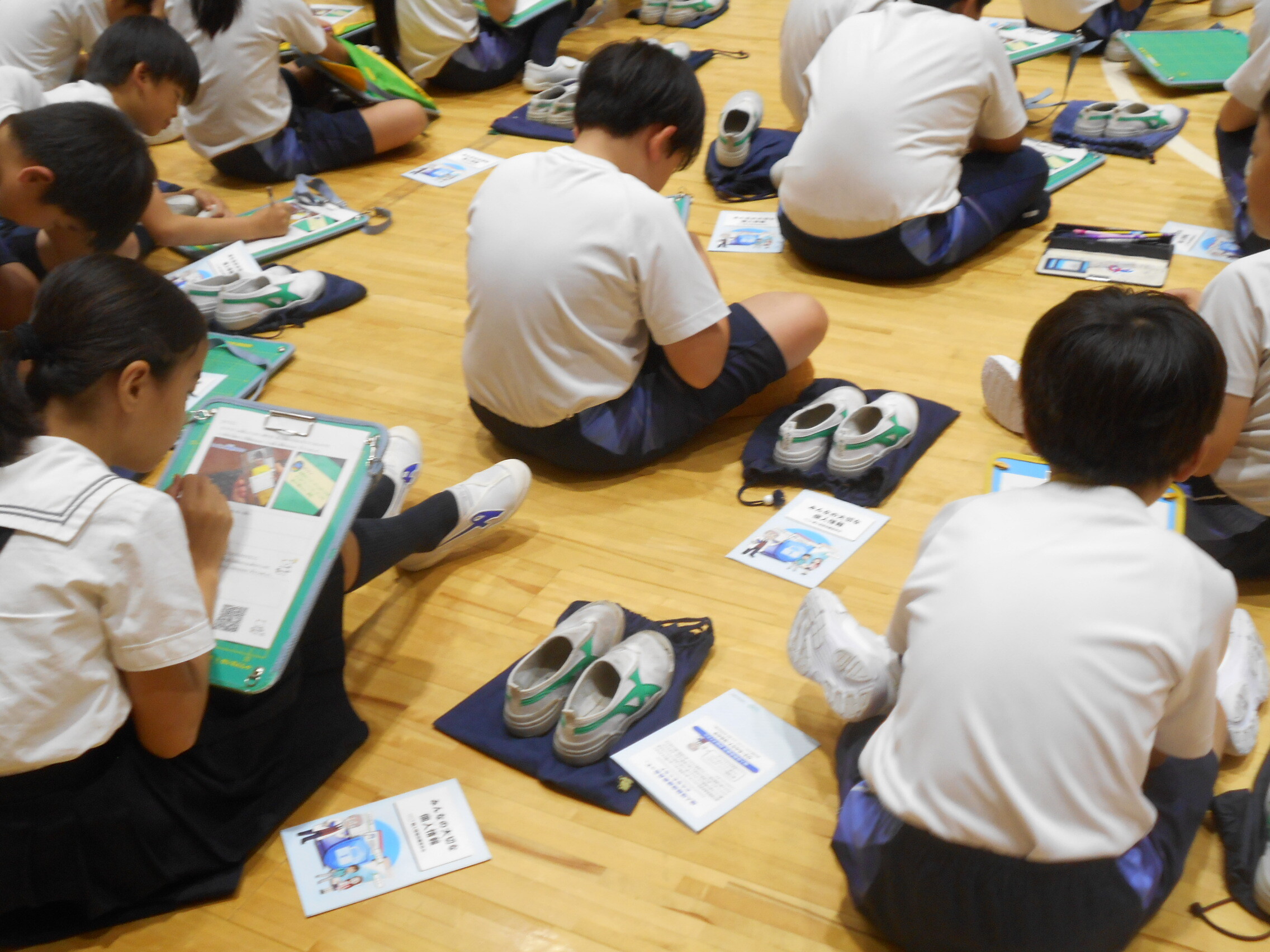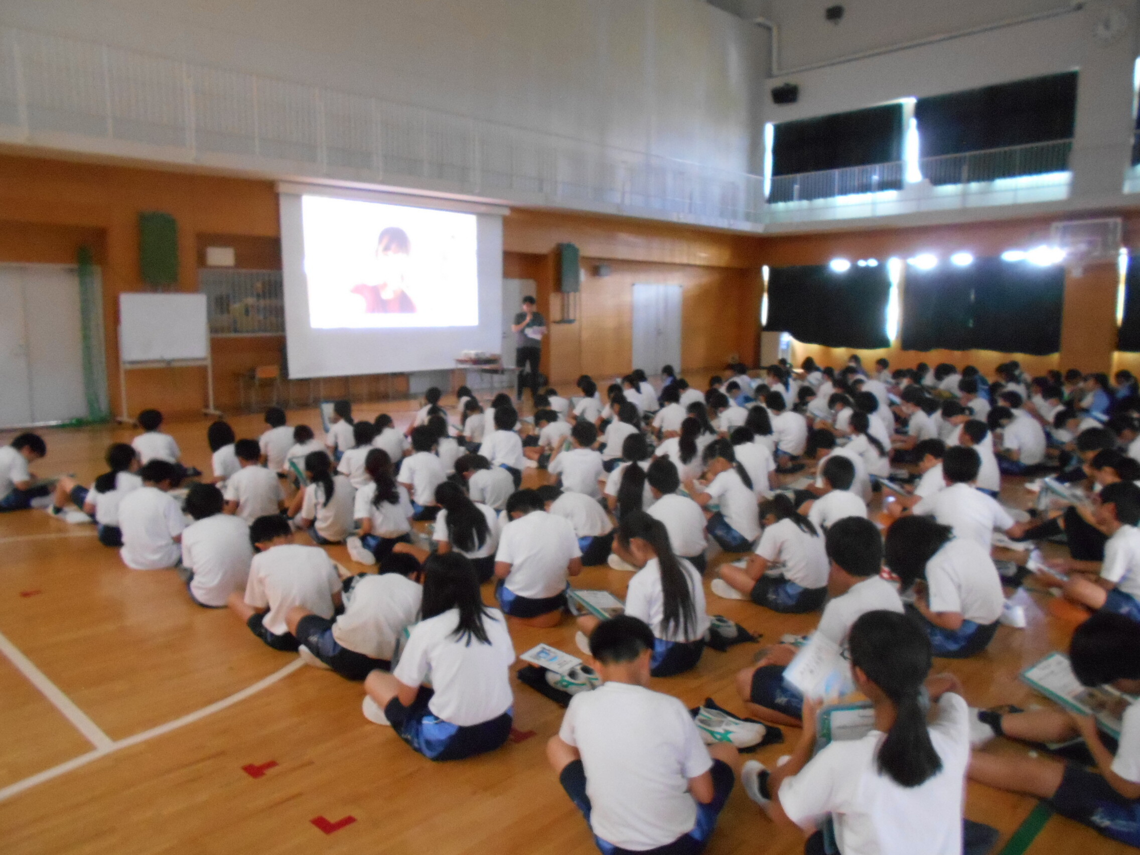 個人情報モラル教育 2025.09.05(金) Tweet P4~M2生(4~6年生)が体育館で情報モラル教育出前授業を行いました。 ゲストティーチャーとして東京から個人情報保護委員会の方が来られて、ビデオを映し出しながらお話をしてくださいました。 スマートフォンやオンラインゲームなどの使い方を少し間違えてしまうと、個人を特定してしまうような事例や危険なことに遭遇してしまうことなど、ワークシートを使って丁寧に教えていただきました。 子どもたちの身近にあることなので、しっかりと覚えておいてくださいね。 « ザリガニマンション 2学期登下校班会 »