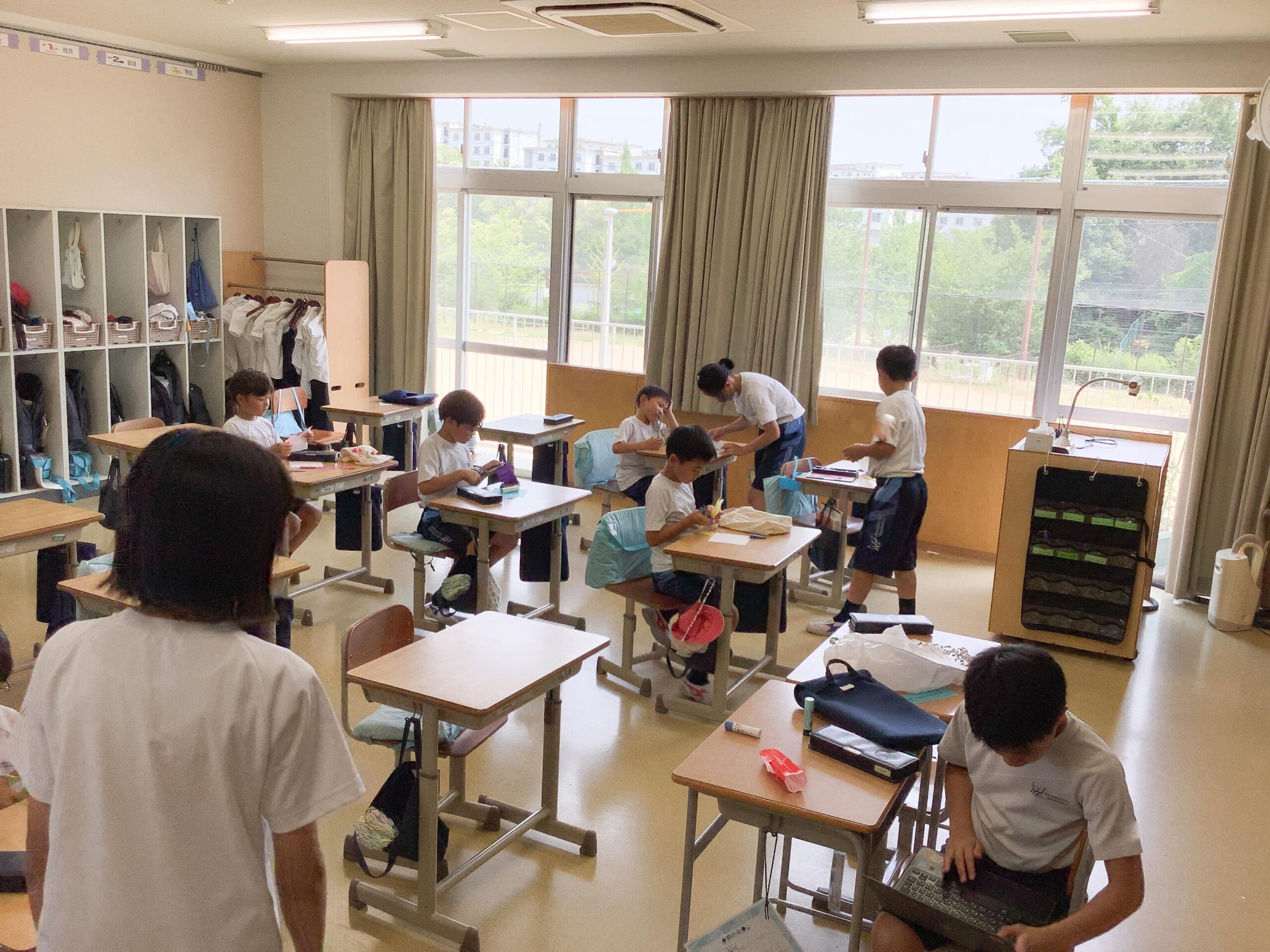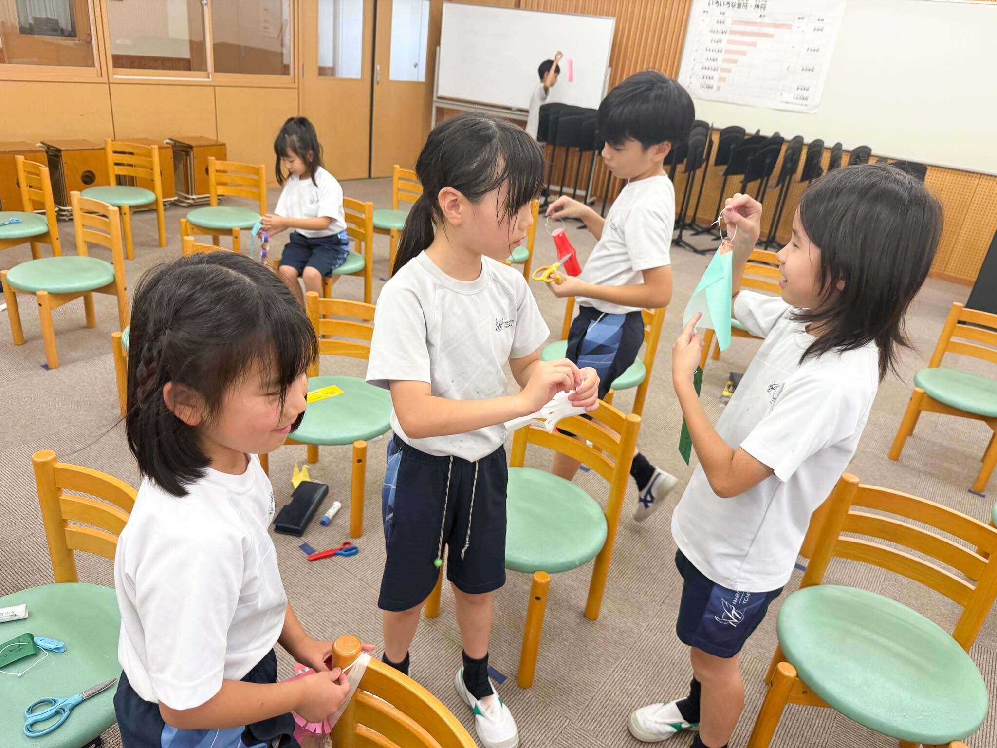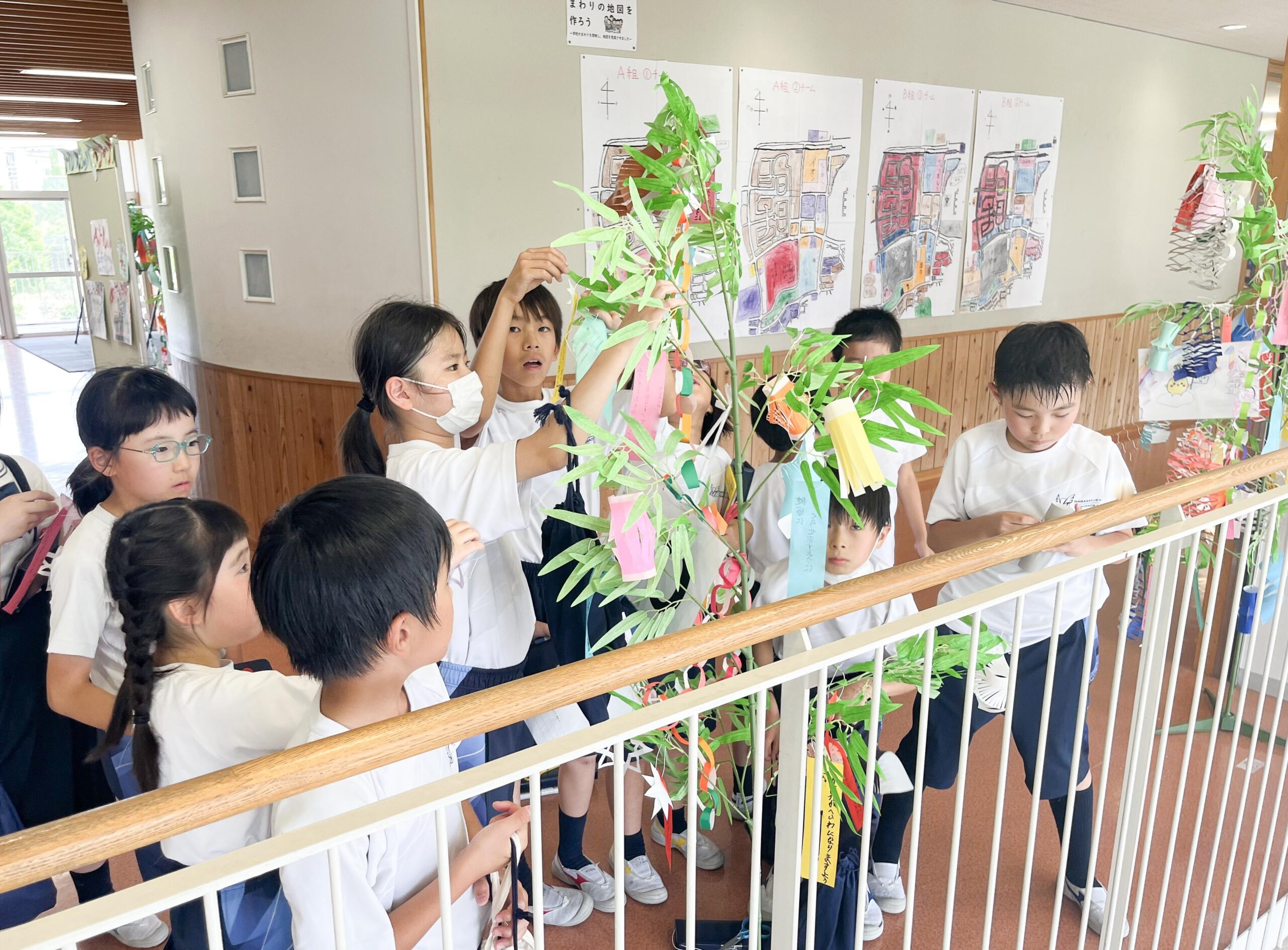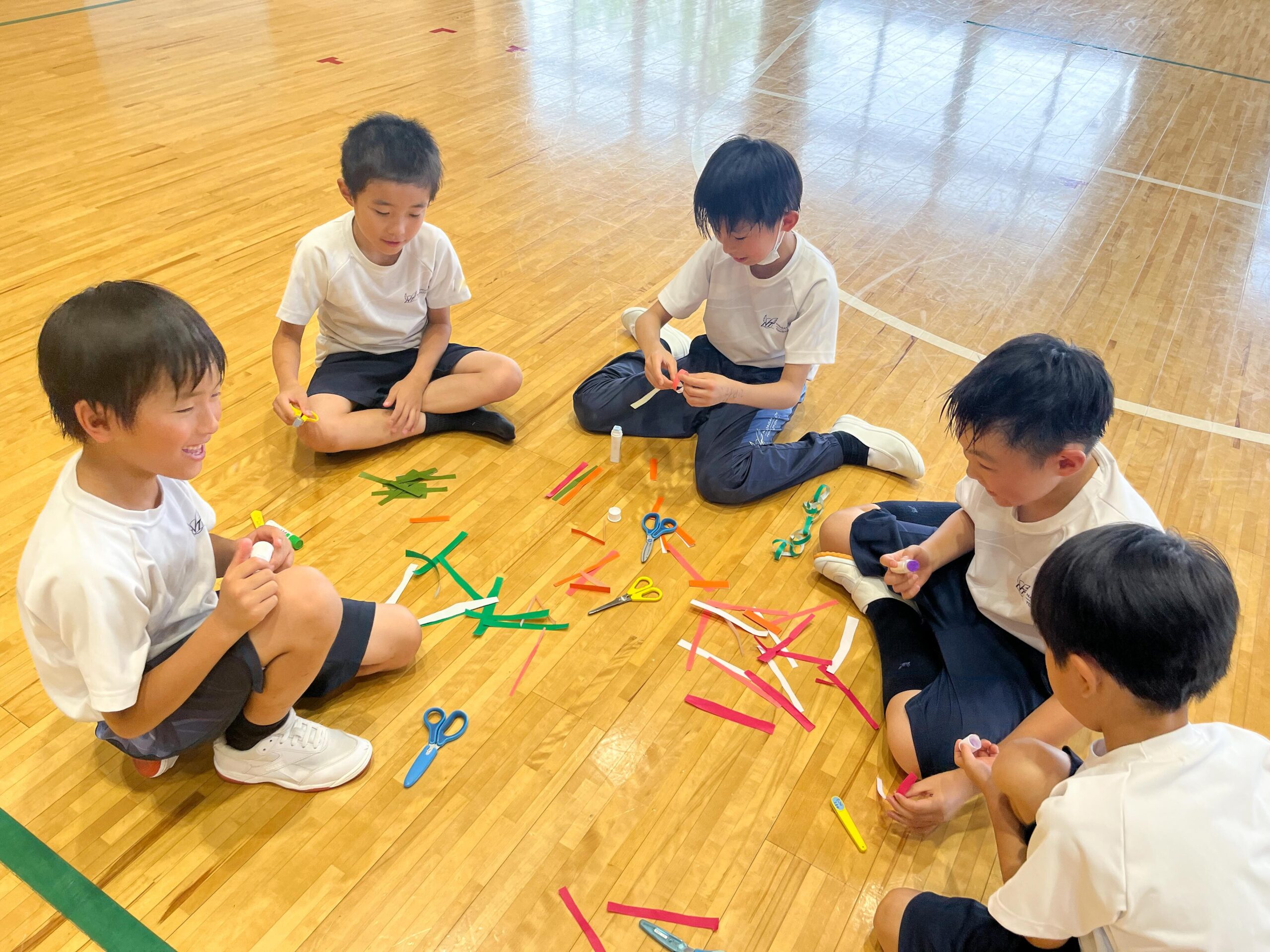 それぞれの縦割りグループに分かれた後、M2生(6年生)がリーダーとなり、笹につける飾りをみんなで協力して作りました。