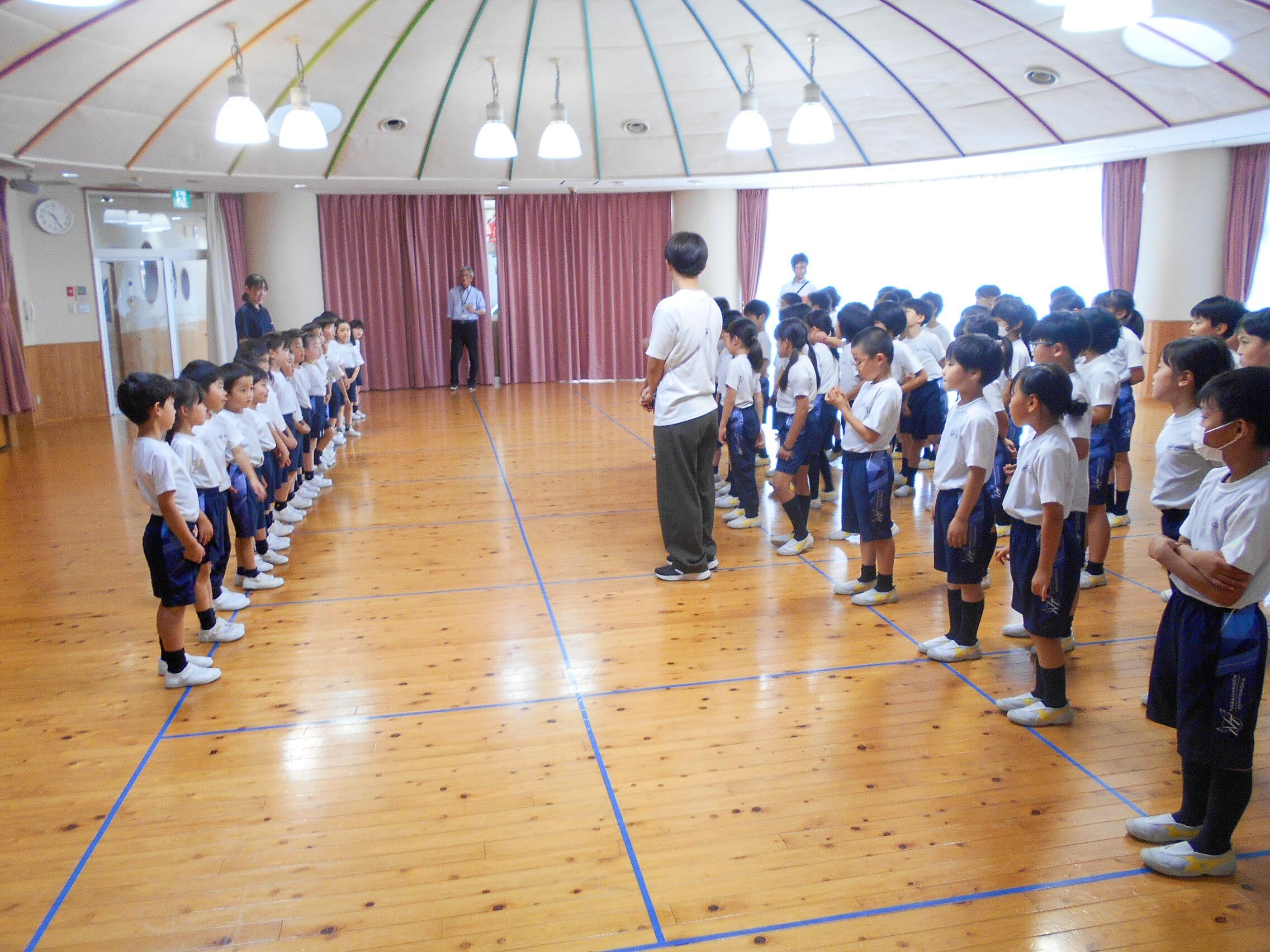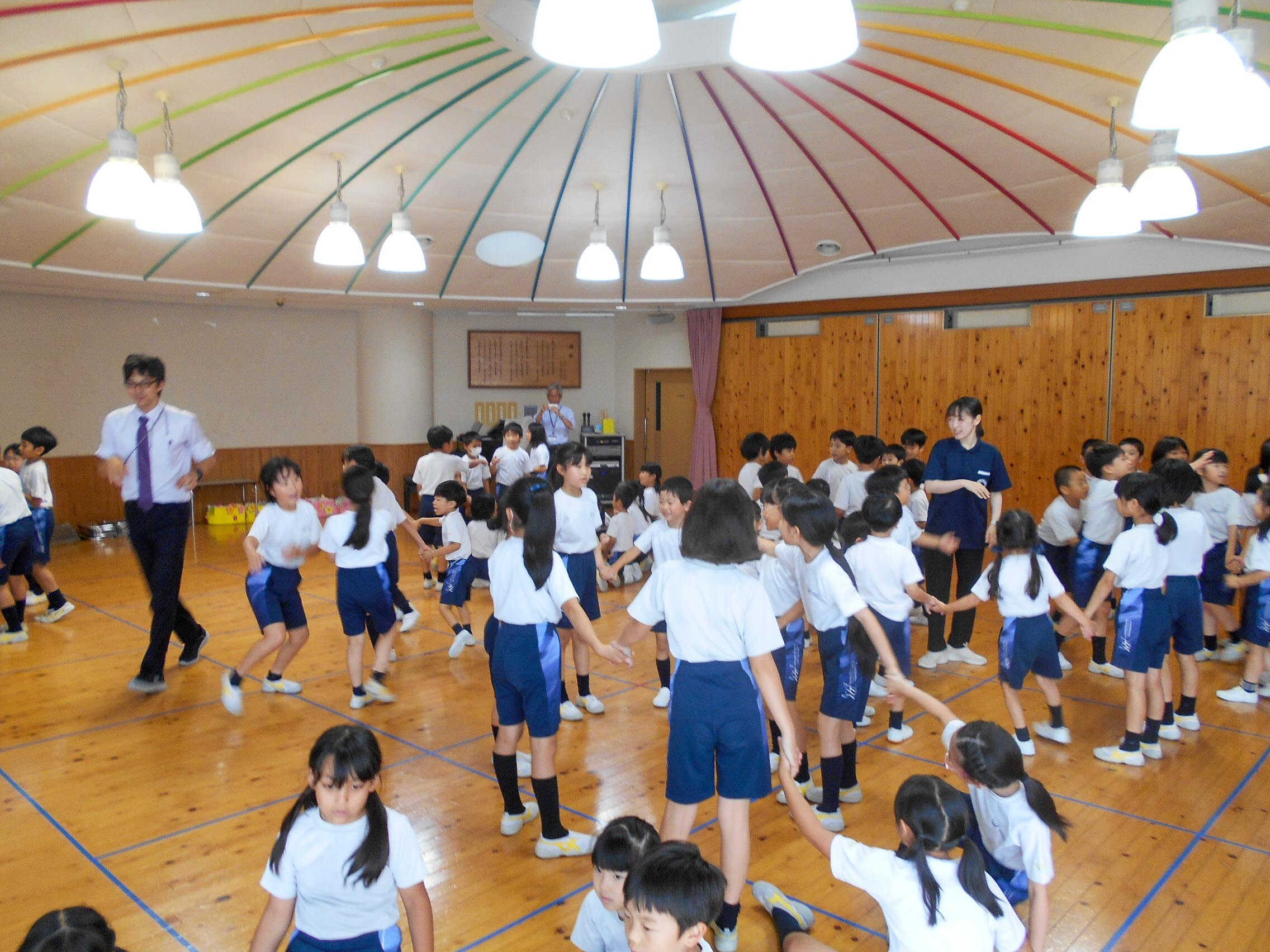 交流会で園児と楽しく遊ぼう 2025.06.27(金) Tweet P3生(3年生)と奈良学園幼稚園のPP3生(年長組)の子どもたちが幼稚園の遊戯室で交流会を行いました。 音楽に合わせていっしょにリズムよく踊ったり、人数集めのゲームをしたりして楽しい時間を過ごしました。 « 墨で描いてみよう 七夕に願いこめて »