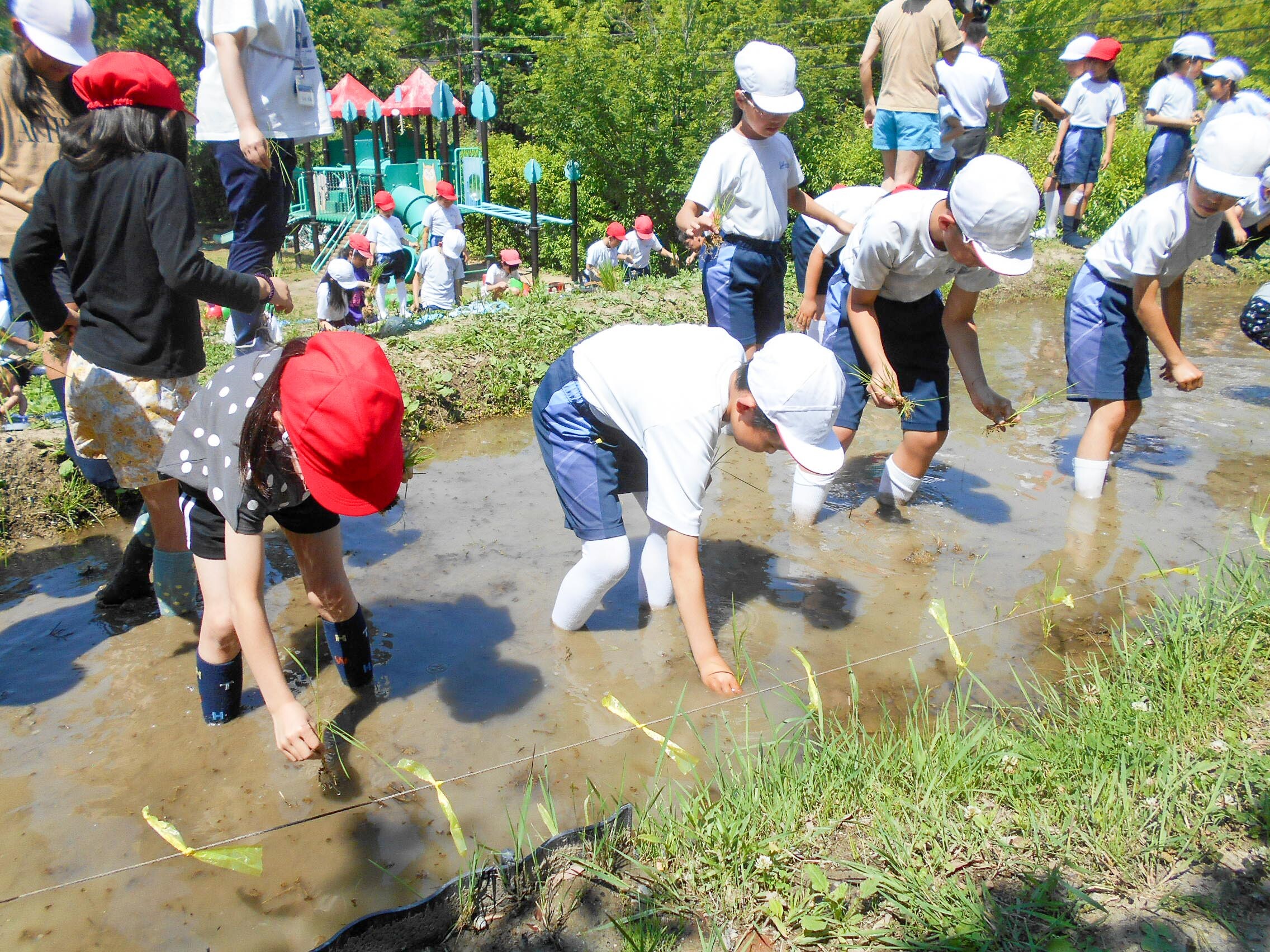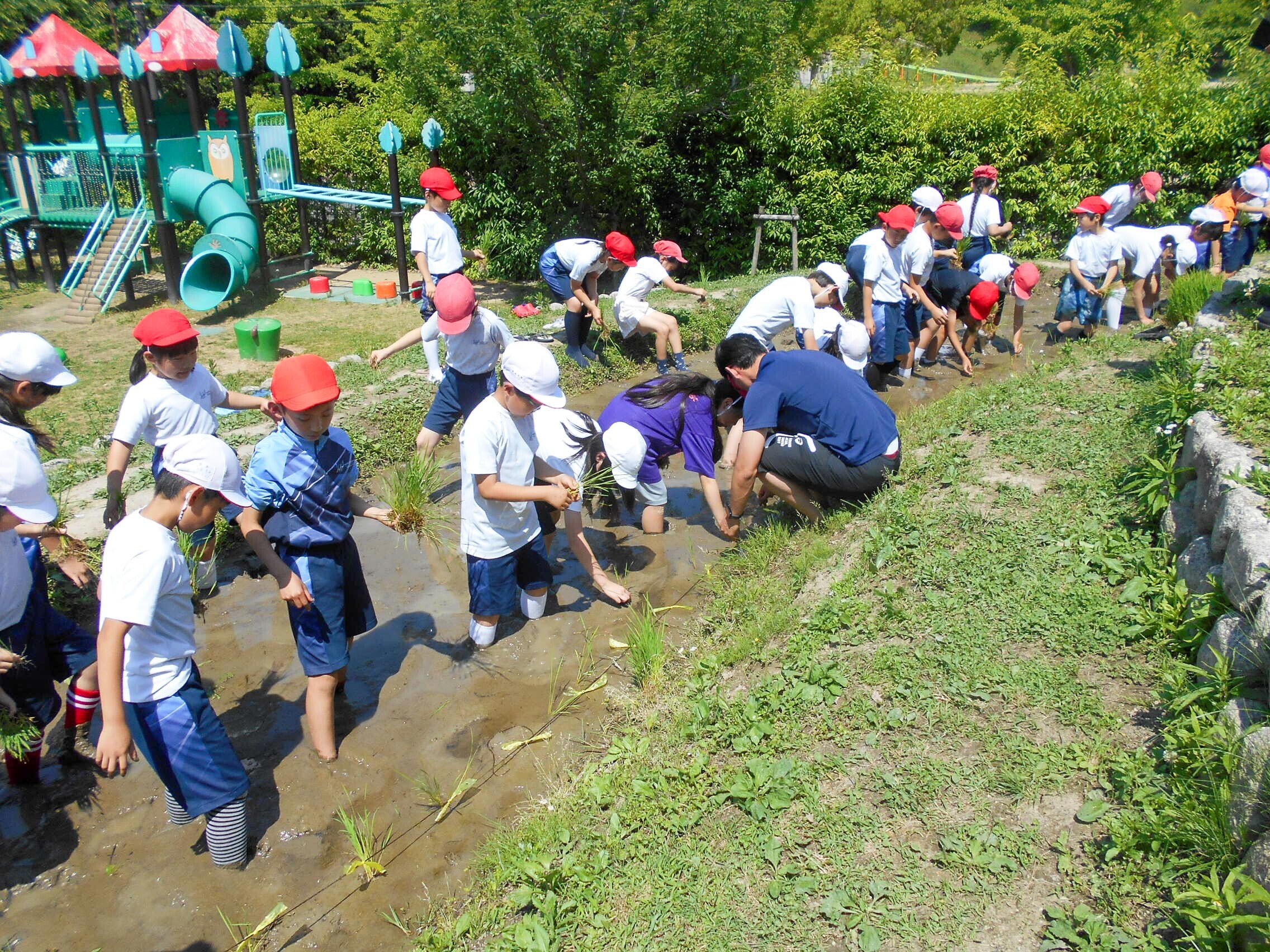 P3・4年生(3・4年生)が、米作りとして田植えをしました。
