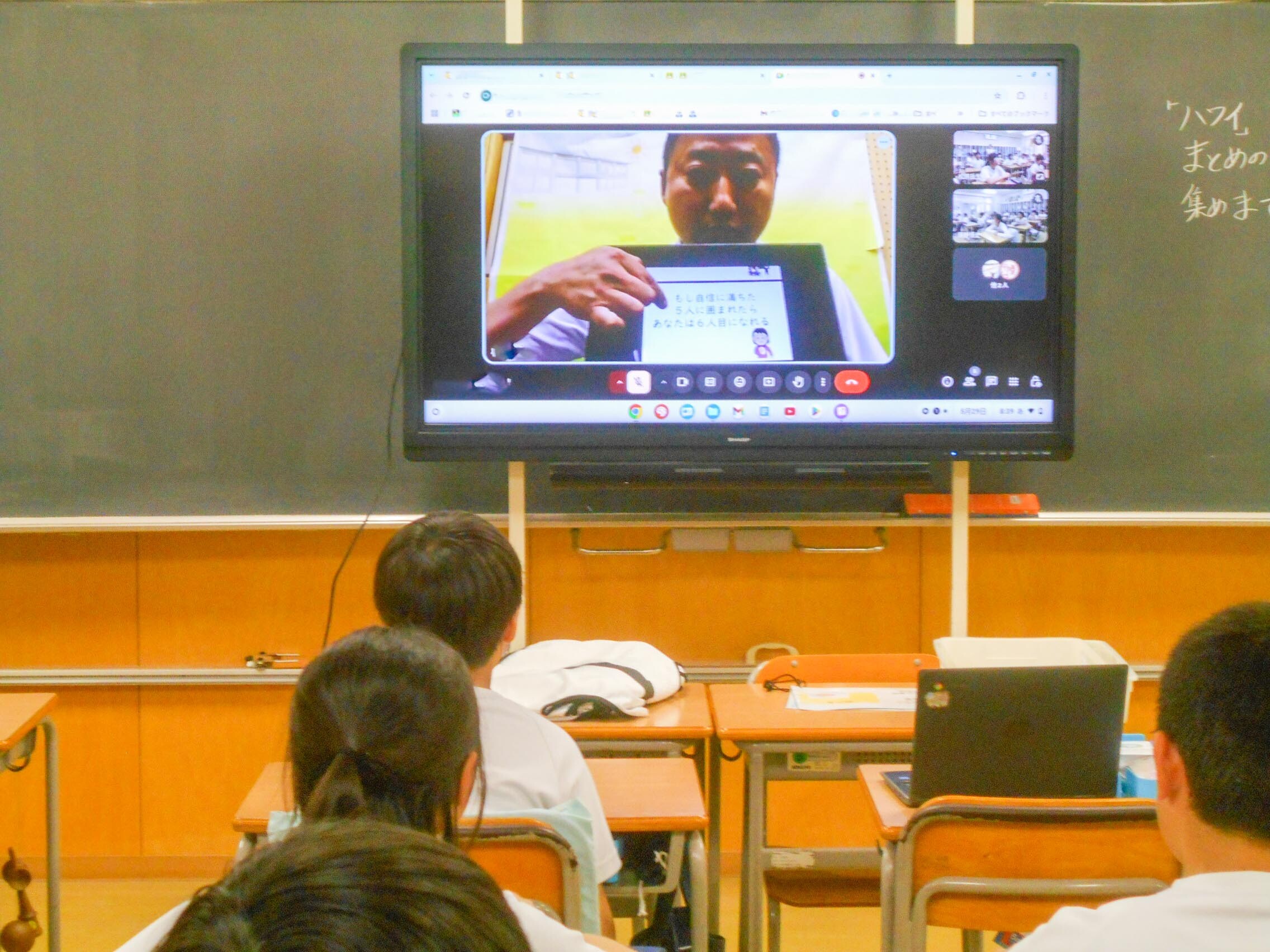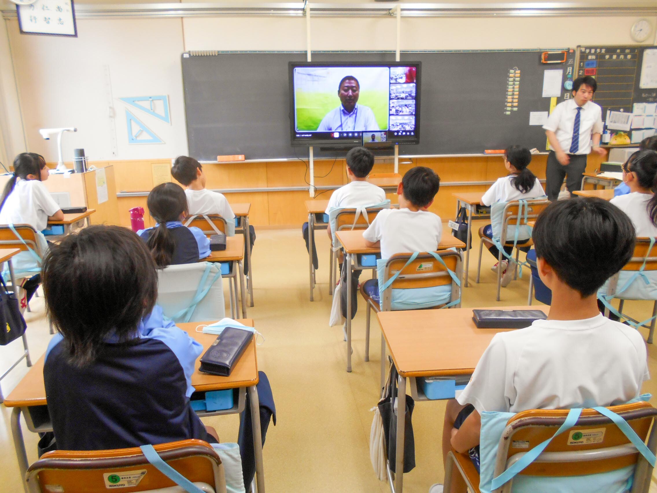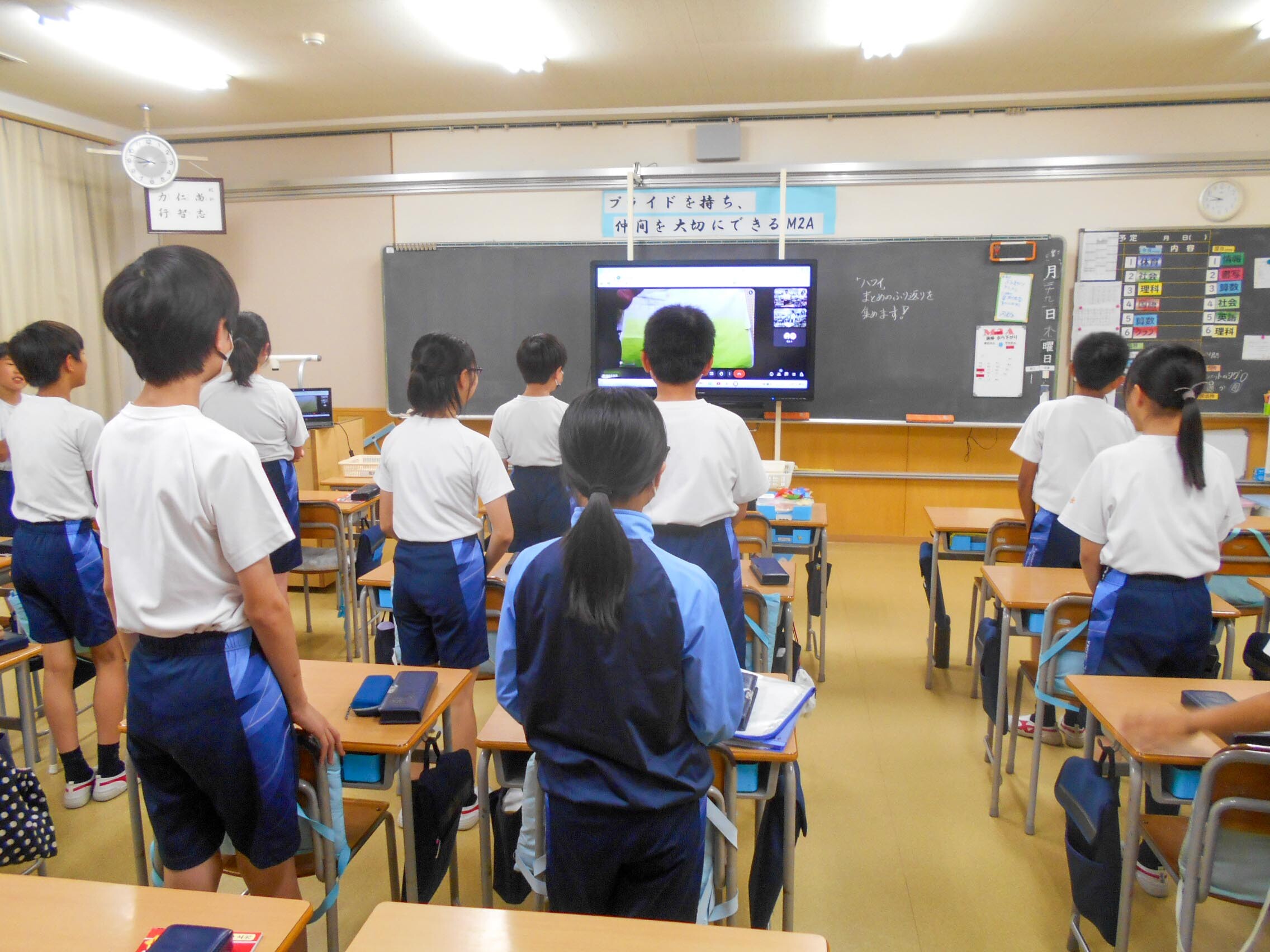 29日の朝、M朝礼(小学校5・6年生)をオンラインで行いました。