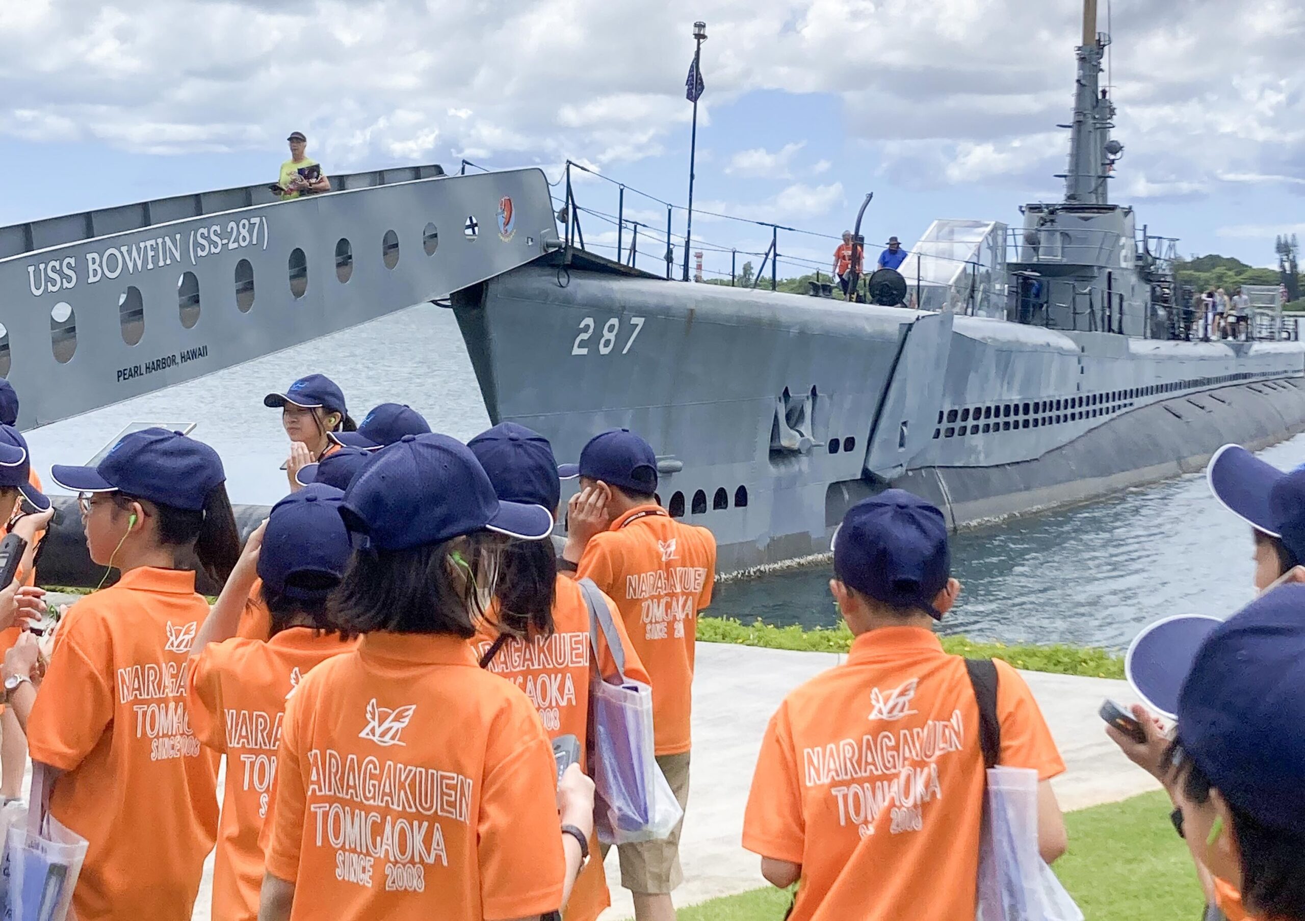 その後は、パールハーバーで平和学習をしたり、プランテーションビレッジでハワイの移民の昔の家や生活の様子を学んだり、姉妹校のメリノール校と交流会をしたり、砂浜で環境学習をしたり、フランダンスを踊ったりするなど様々な貴重な体験をしました。