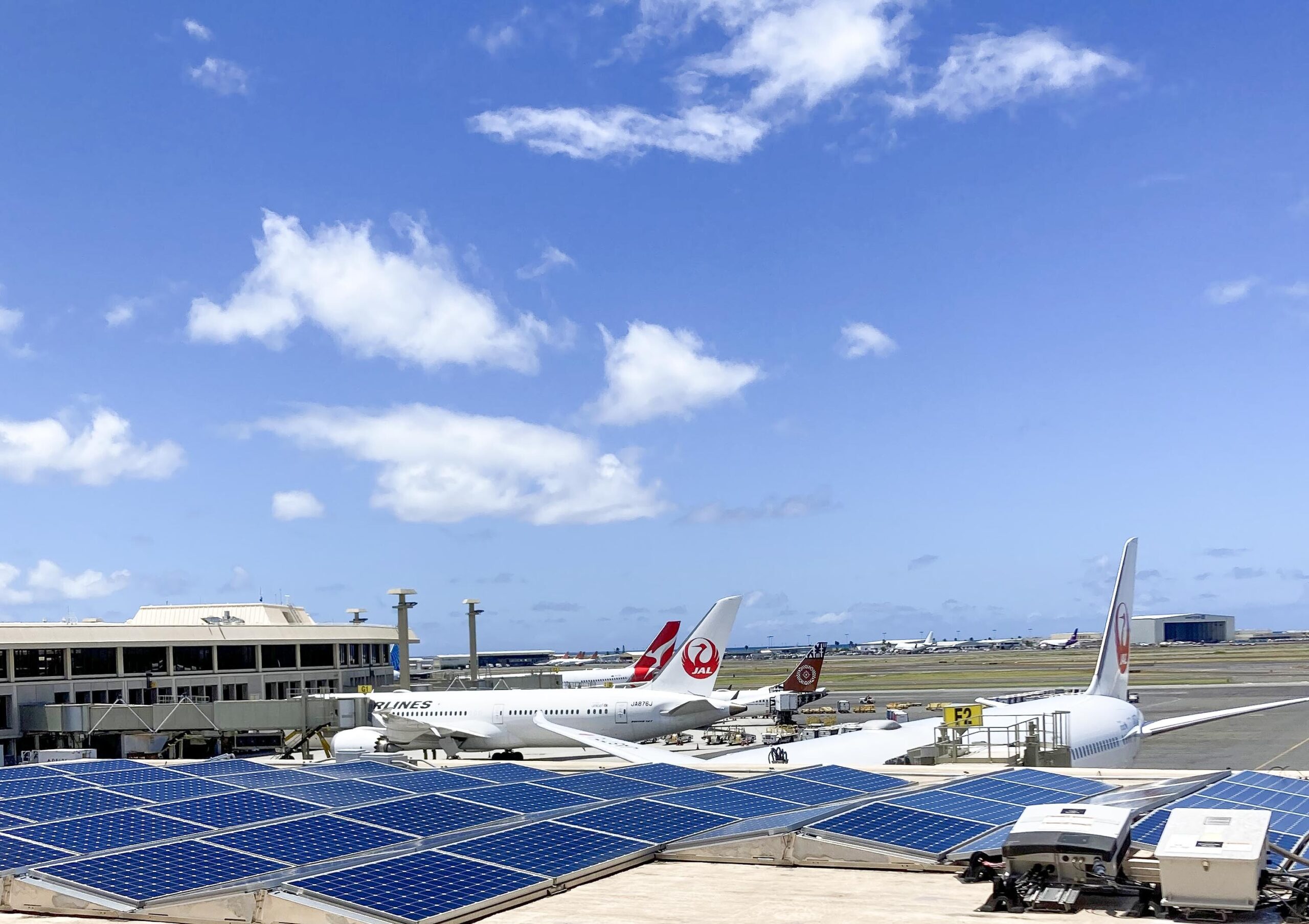 関西国際空港から飛行機に乗ってホノルル(ダニエル・イノウエ)空港へ。