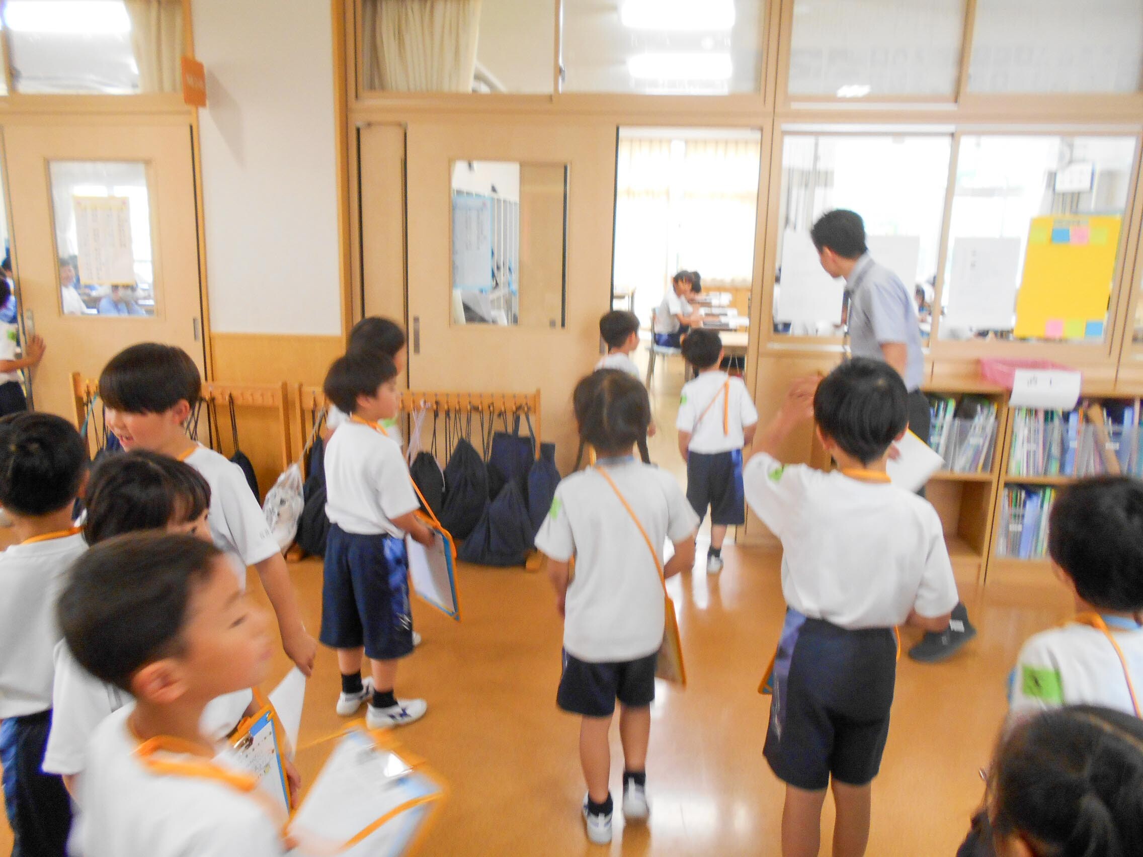 P1生(1年生)が、生活科の学習で学校たんけんを行いました。