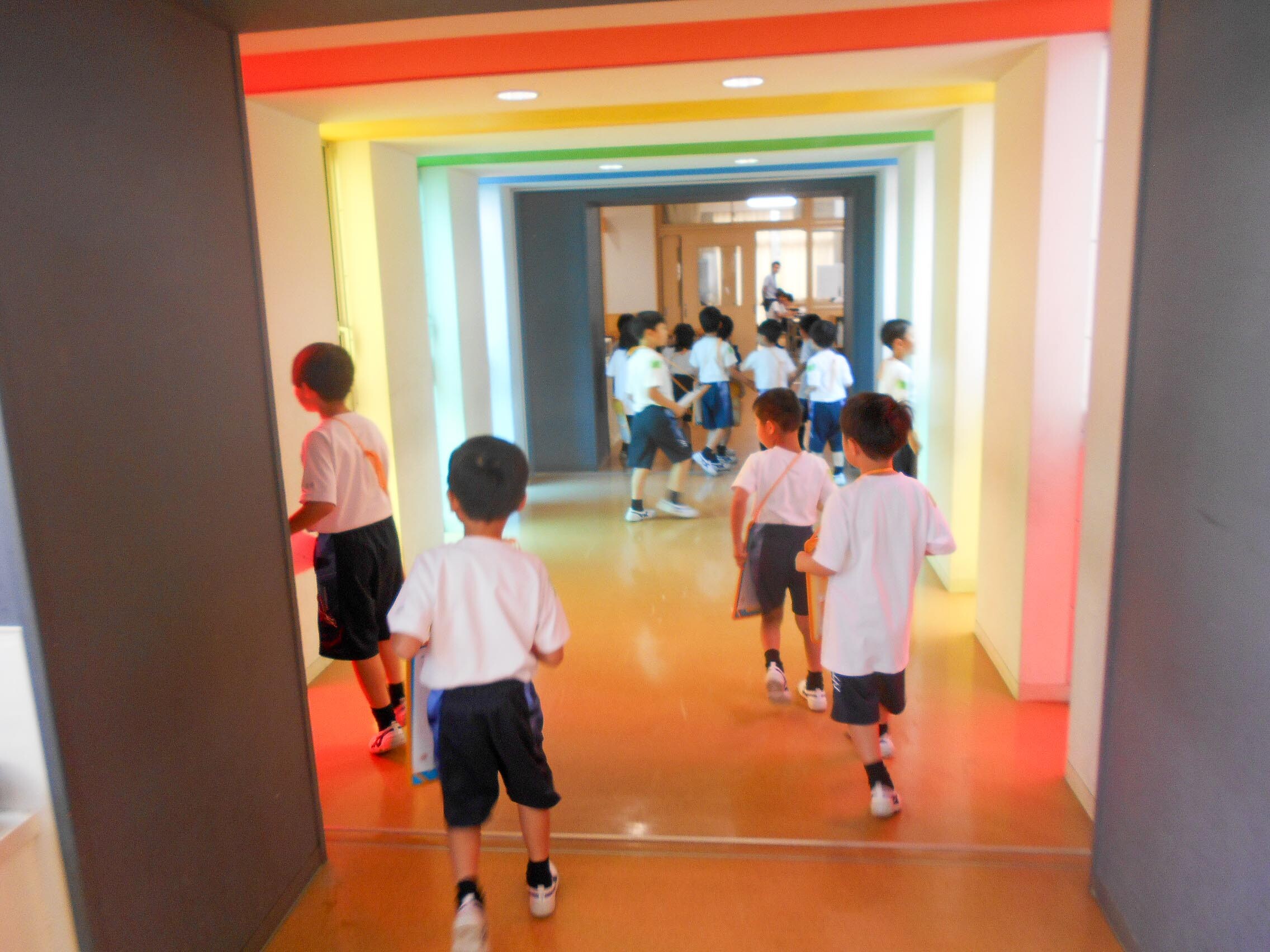 入学して約1ケ月間経ち、学校生活にも慣れてきましたが、自分たちで校舎内を自由に回って確かめることは、とても嬉しそうです。