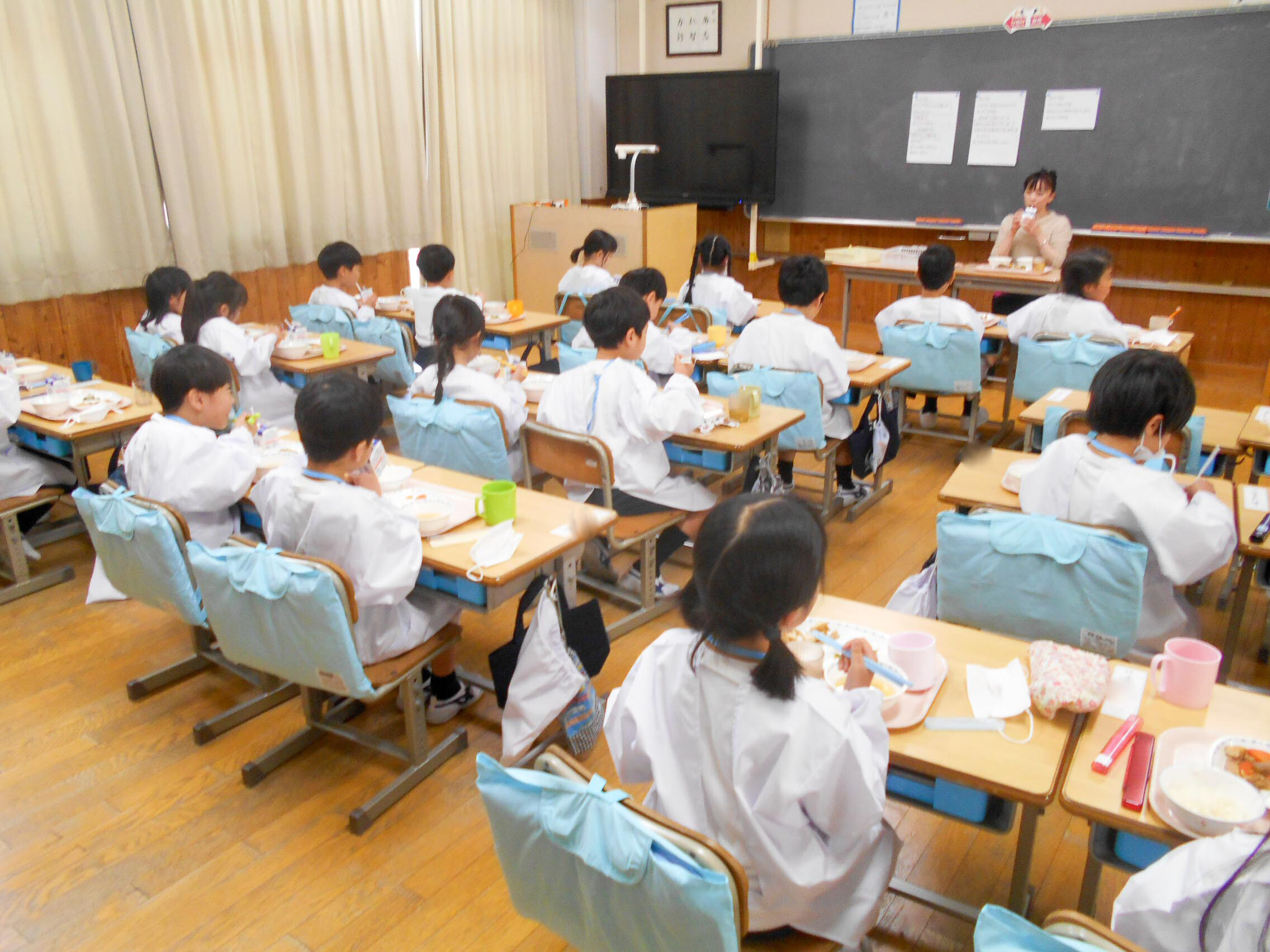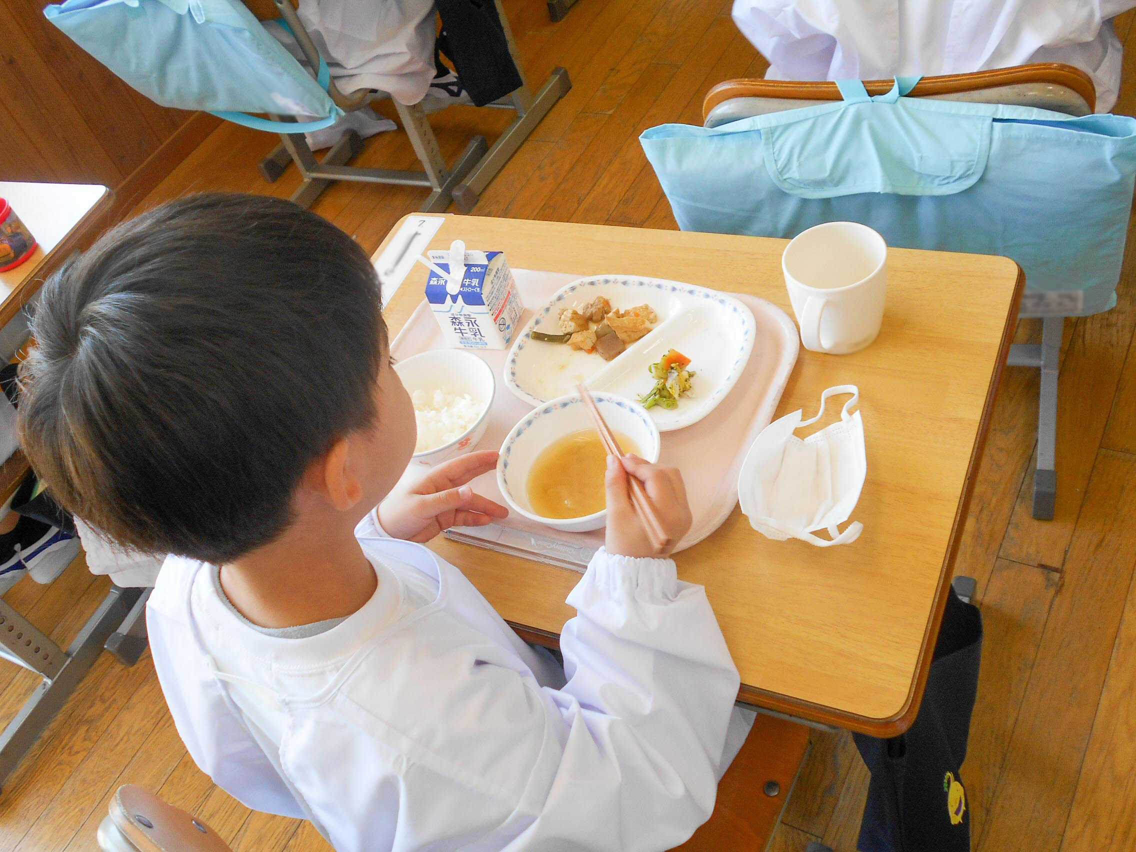 子どもたちは、小学校初めての給食を静かに、そしてぱくぱくと食べていました。