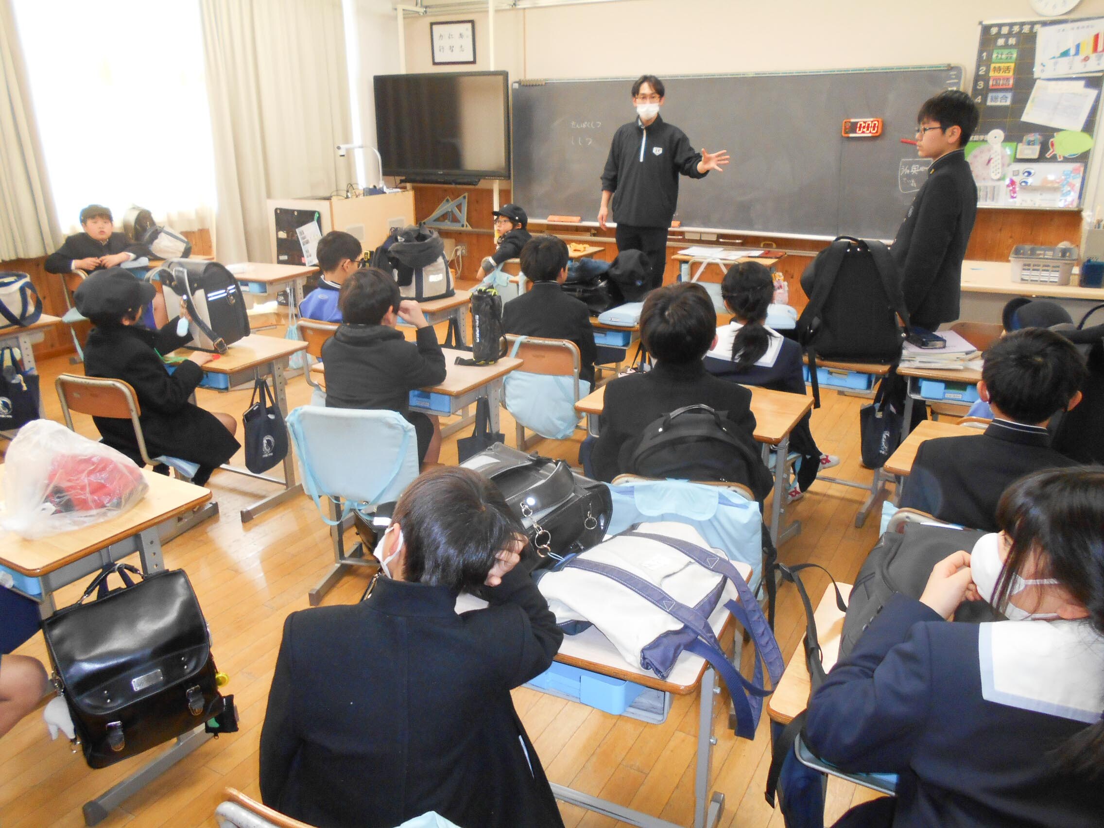 登下校班会 2025.03.11(火) Tweet 今年度最後の登下校班会を行いました。 下校前の時間に全校児童が同じ登下校のグループに分かれて集まりました。そして、1年間の自分たちの登下校を振り返り、新年度も安心・安全に過ごせるように話し合いを行いました。 その後、それぞれのグループごとに、徒歩やスクールバス、電車に乗って下校しました。 « 園児と楽しく遊ぼう 3月のP朝礼 »