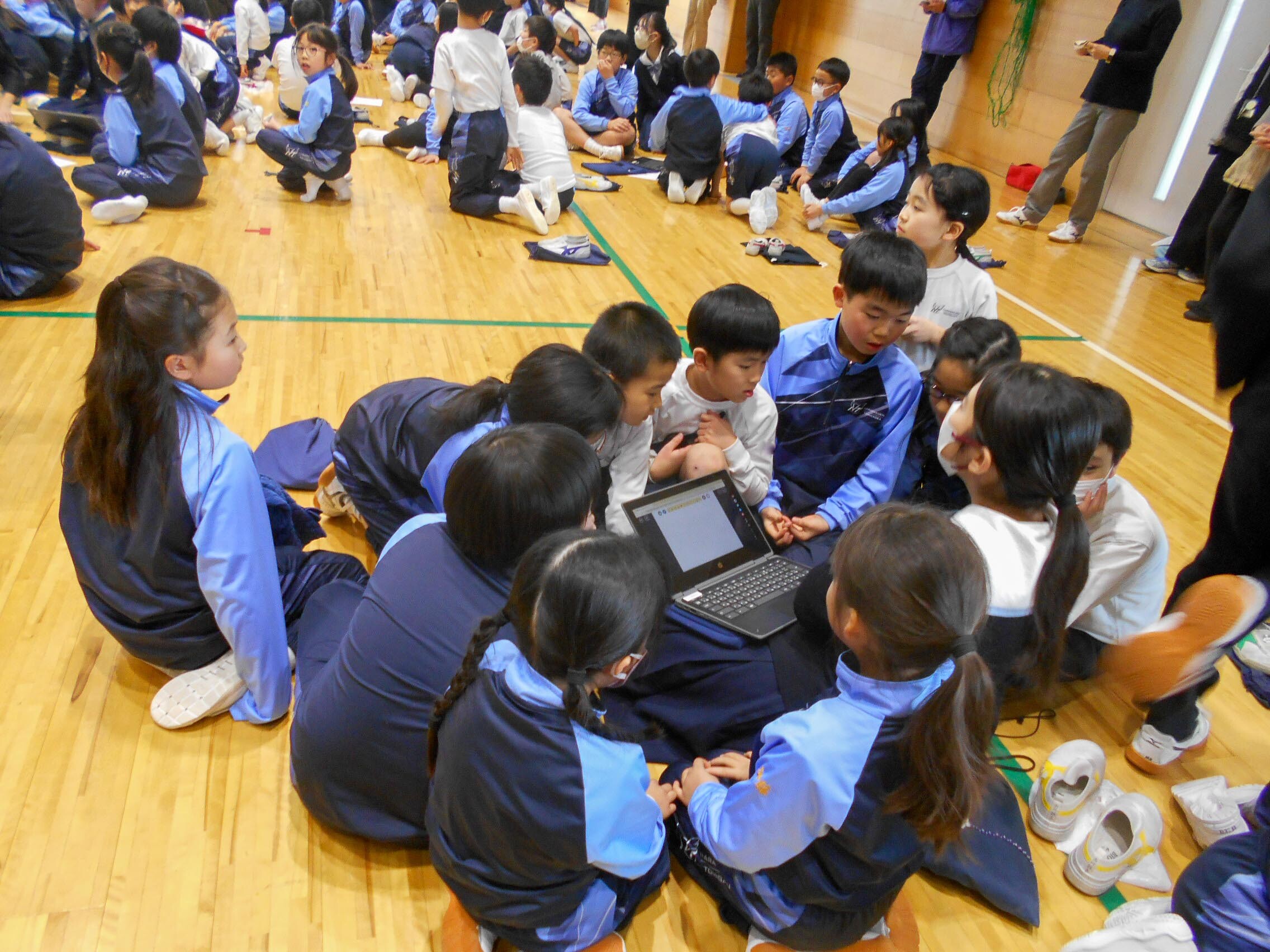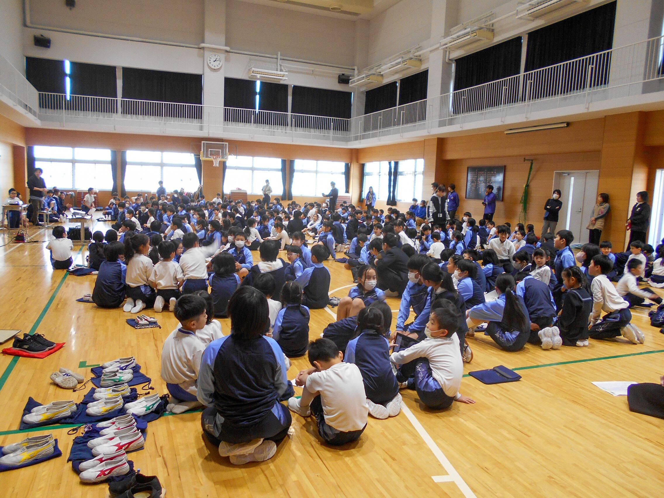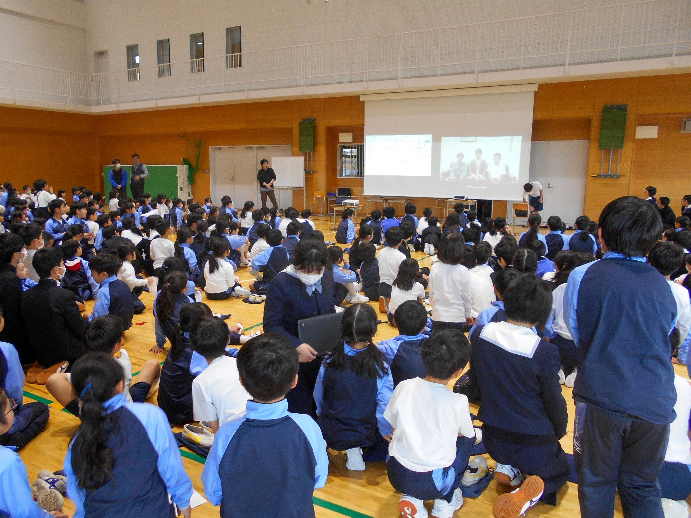 音当てクイズをしよう 2025.02.17(月) Tweet 14日の昼休みに全校児童がP体育館に集まり、今年度最後の縦割り活動をしました。 今回は、企画委員会の児童が企画・準備した音当てクイズでした。 いろいろな音をクイズにして、各グループで相談し何の音か答えを考え、代表の子がロイロノートに書き入れていきます。 正解がわかるたびに、大きな歓声が沸き起こっていました。 « My Dream かるた作り »