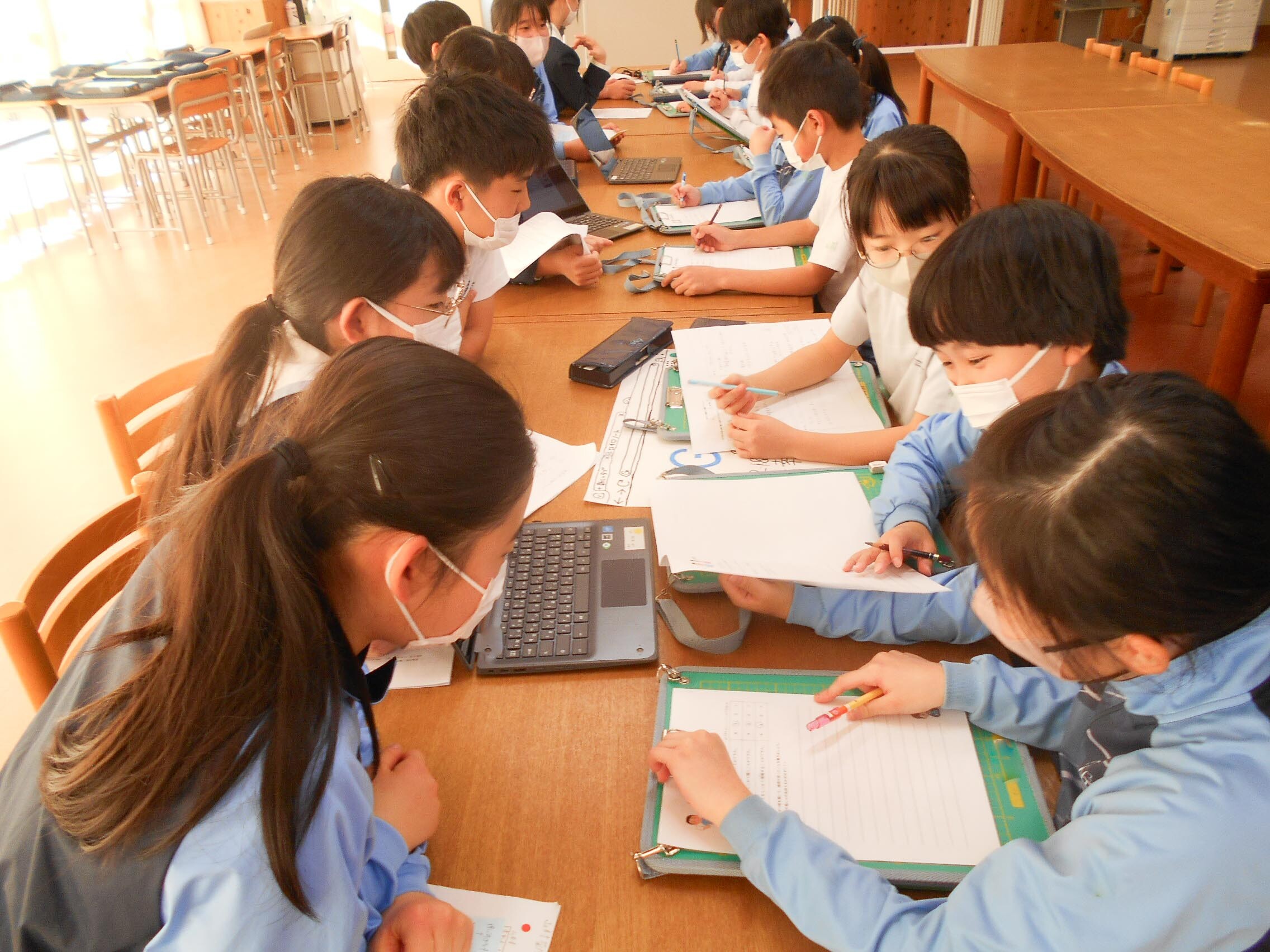 M2生(6年生)がP3生(3年生)に情報モラルについて調べたり学んだりしたことを伝える授業をしました。