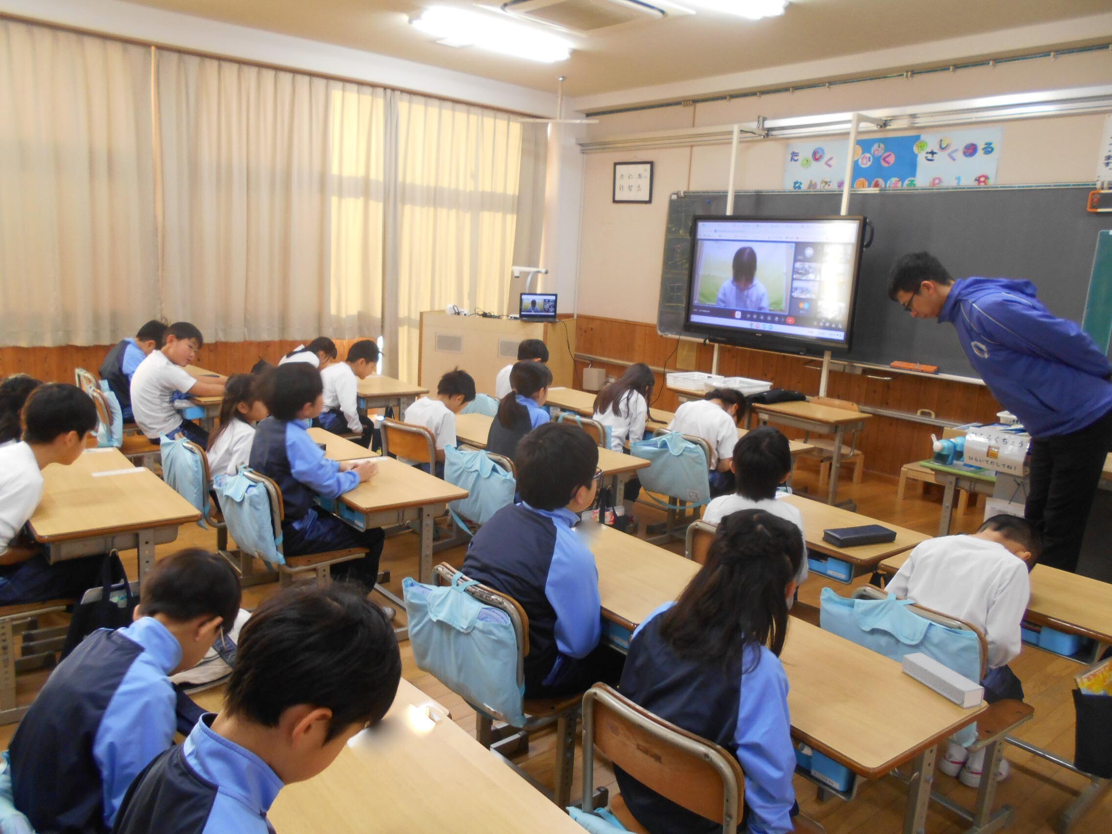 1月14日(火)にP朝礼(1~4年生)をオンラインで行いました。