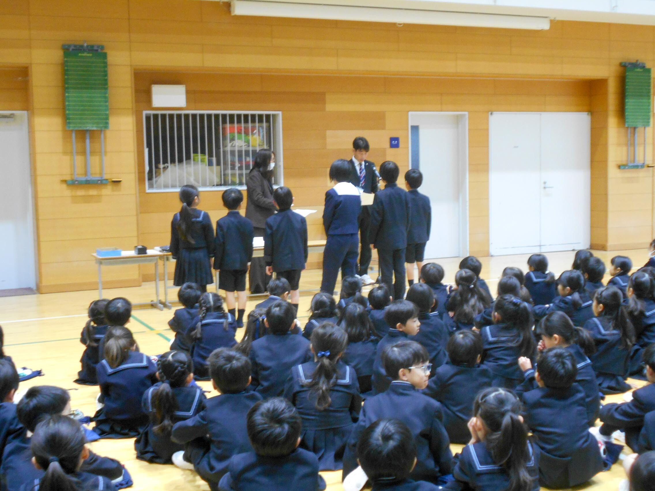 2学期終業式 2024.12.26(木) Tweet 12月24日に2学期の終業式を行いました。 校長からは、2学期にたくさんあった学校行事や日々の学習、生活を皆がよくがんばったことと、それらのことを冬休みや3学期にもつなげてほしいという話がありました。 その後、様々なコンクール等の表彰を行い、最後に担当の先生から冬休みの生活についてのお話でした。 また元気な姿で始業式の日にお会いしましょう。 « 大掃除でピカピカに 3学期スタート! »