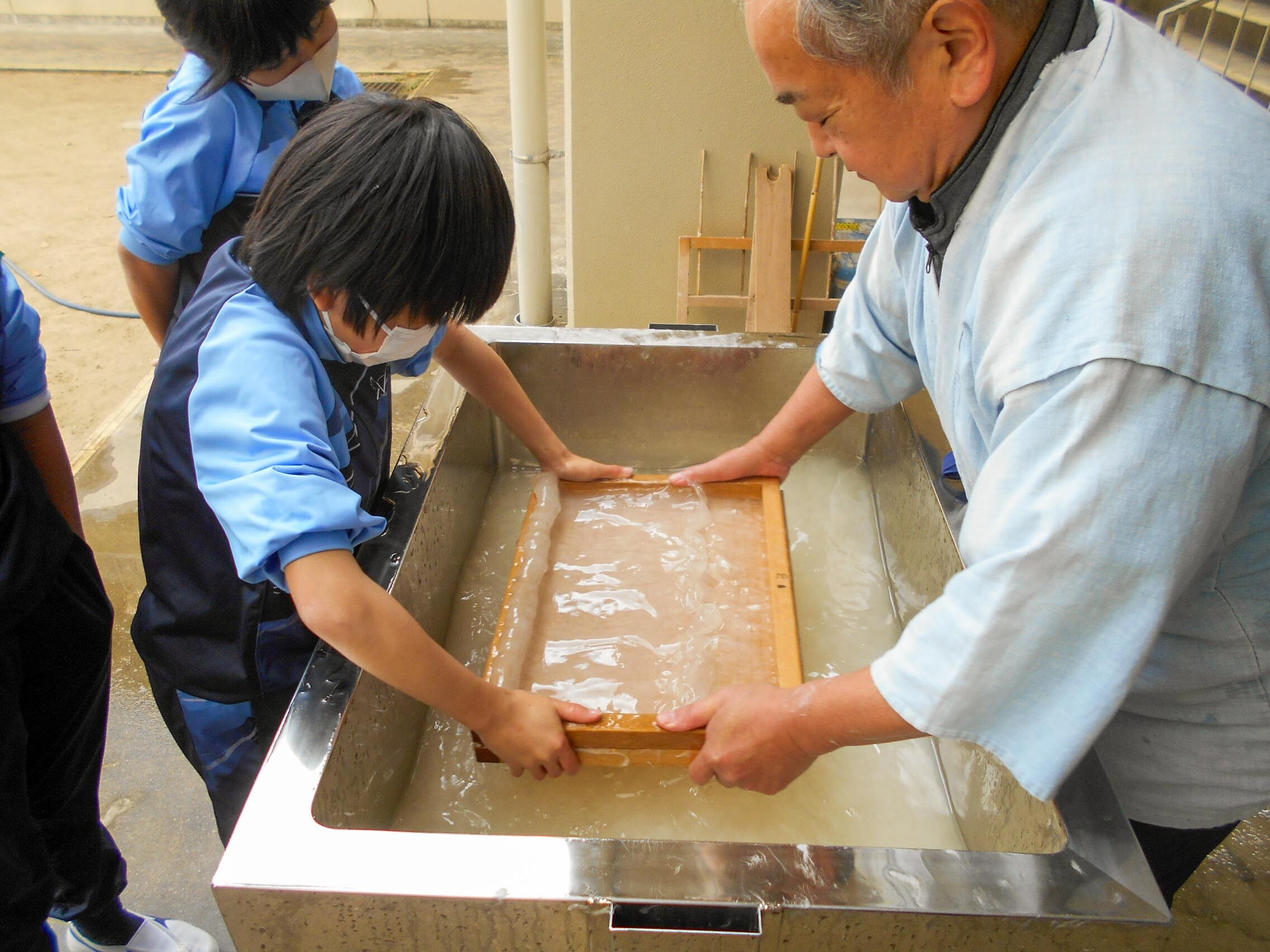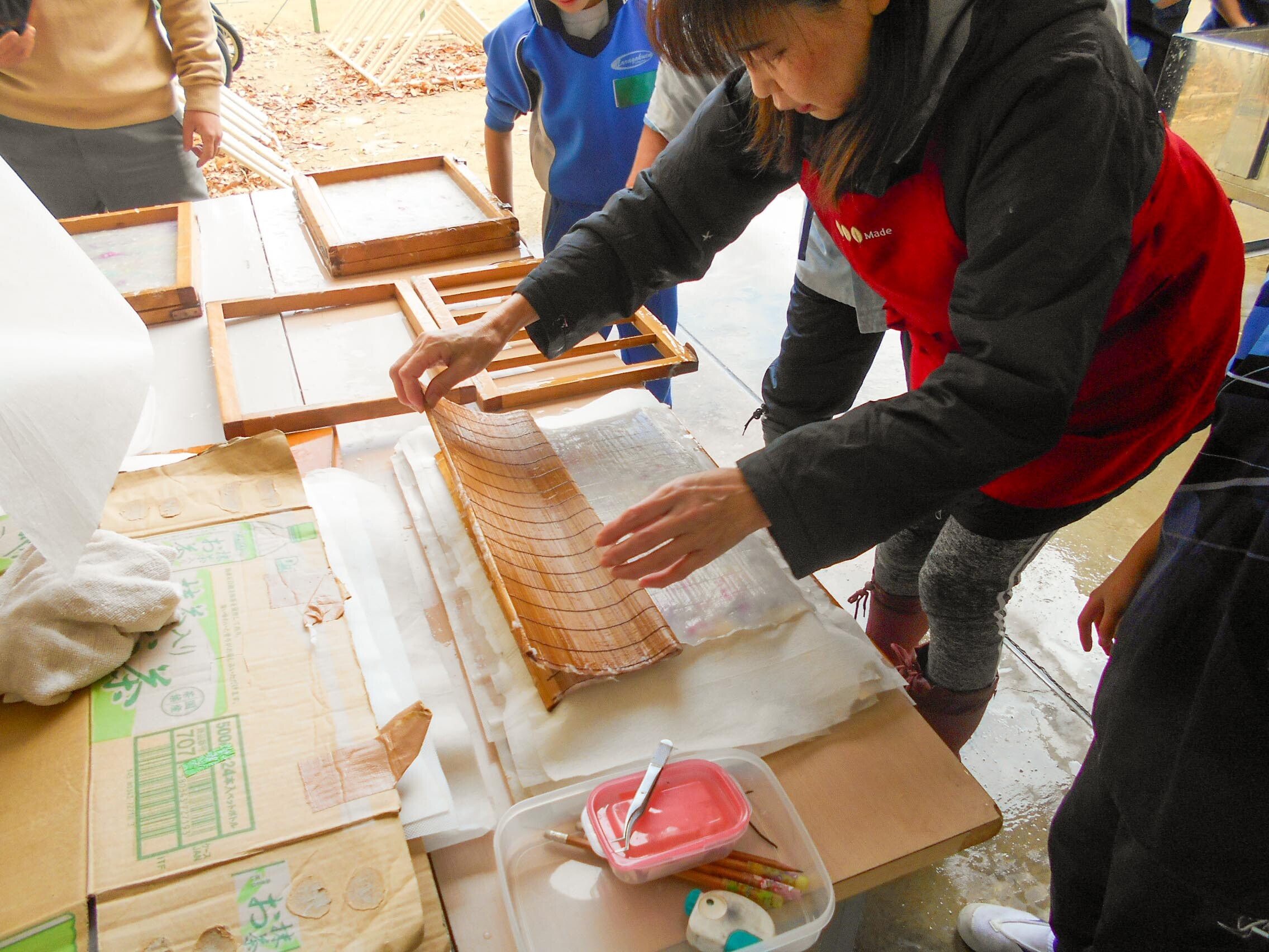 12月9日にP4生(4年生)が紙漉き体験を行いました。