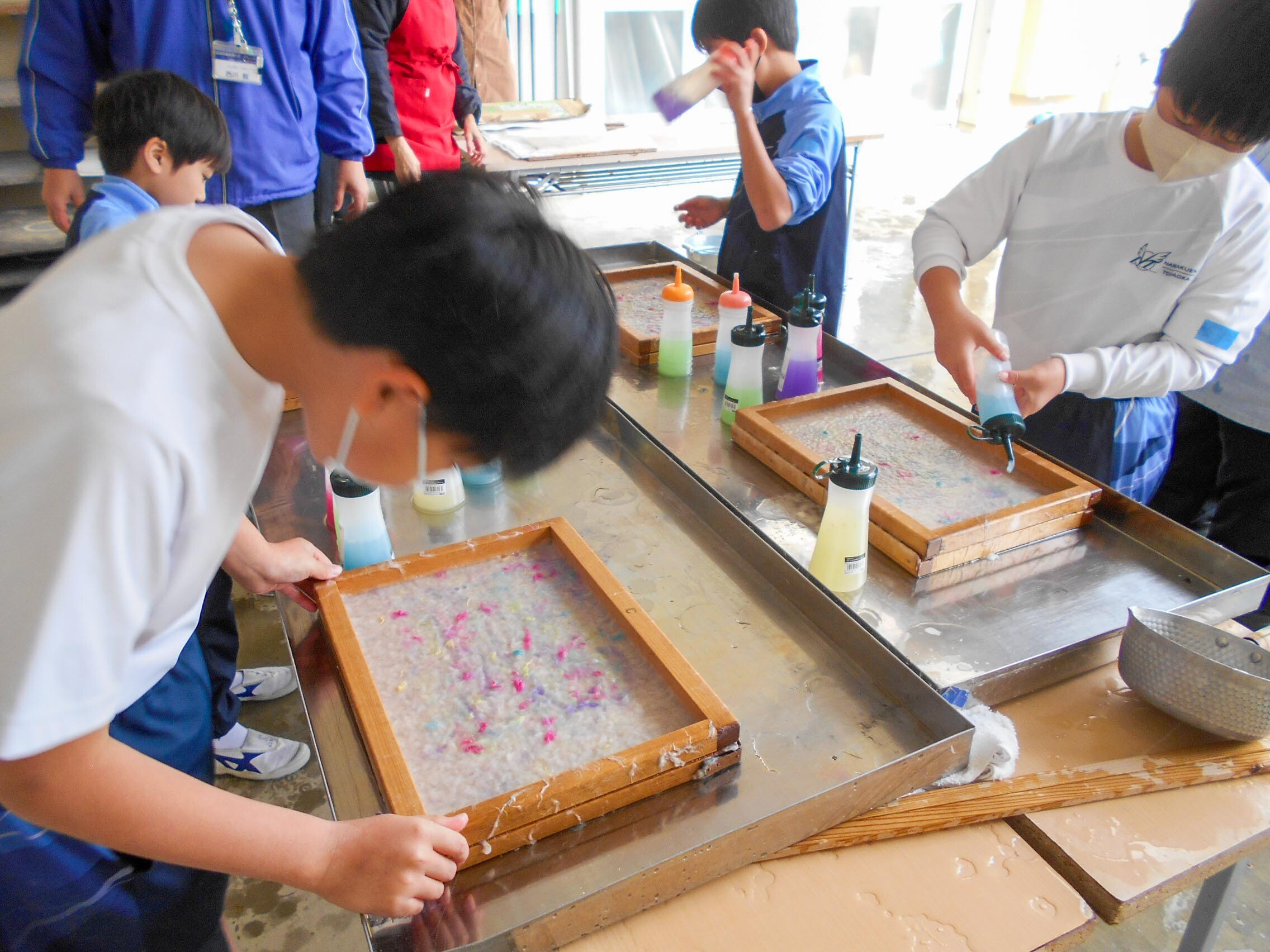 子どもたちは伝統技法を学ぶとともに、一人ひとり個性あふれる和紙作りを楽しんでいました。