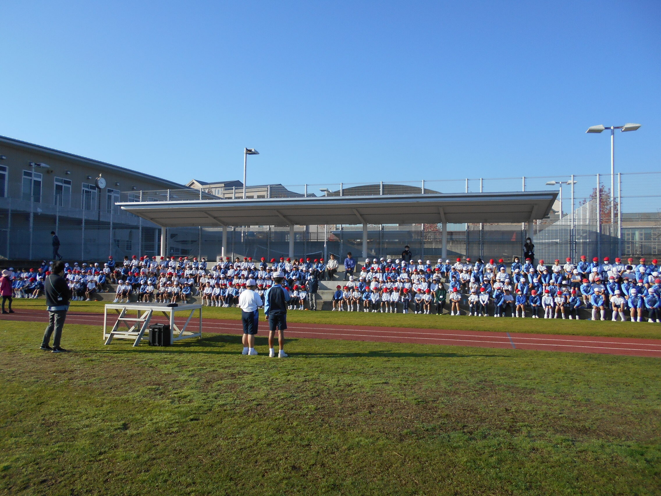 12月全校朝会 2024.12.05(木) Tweet 12月の全校朝会を総合グランドで行いました。校長は、体調を崩している人が多いので健康管理に気を付けることと、マラソンを含めて何事にも自分で目標を決めて取り組むことが大切であるとの話をしました。 その後の1時間目は全校かけ足を行いました。雲一つない青空の下で一生懸命に走りました。 « 英語を楽しもう 紙漉き体験 »