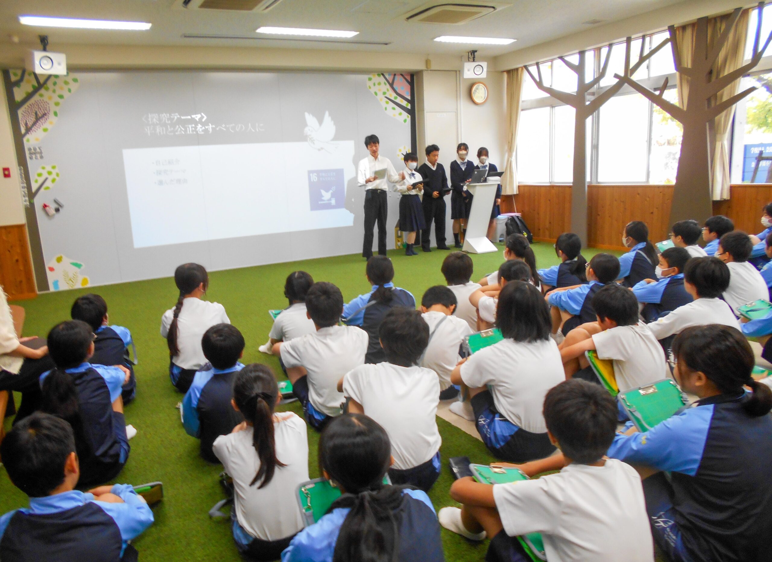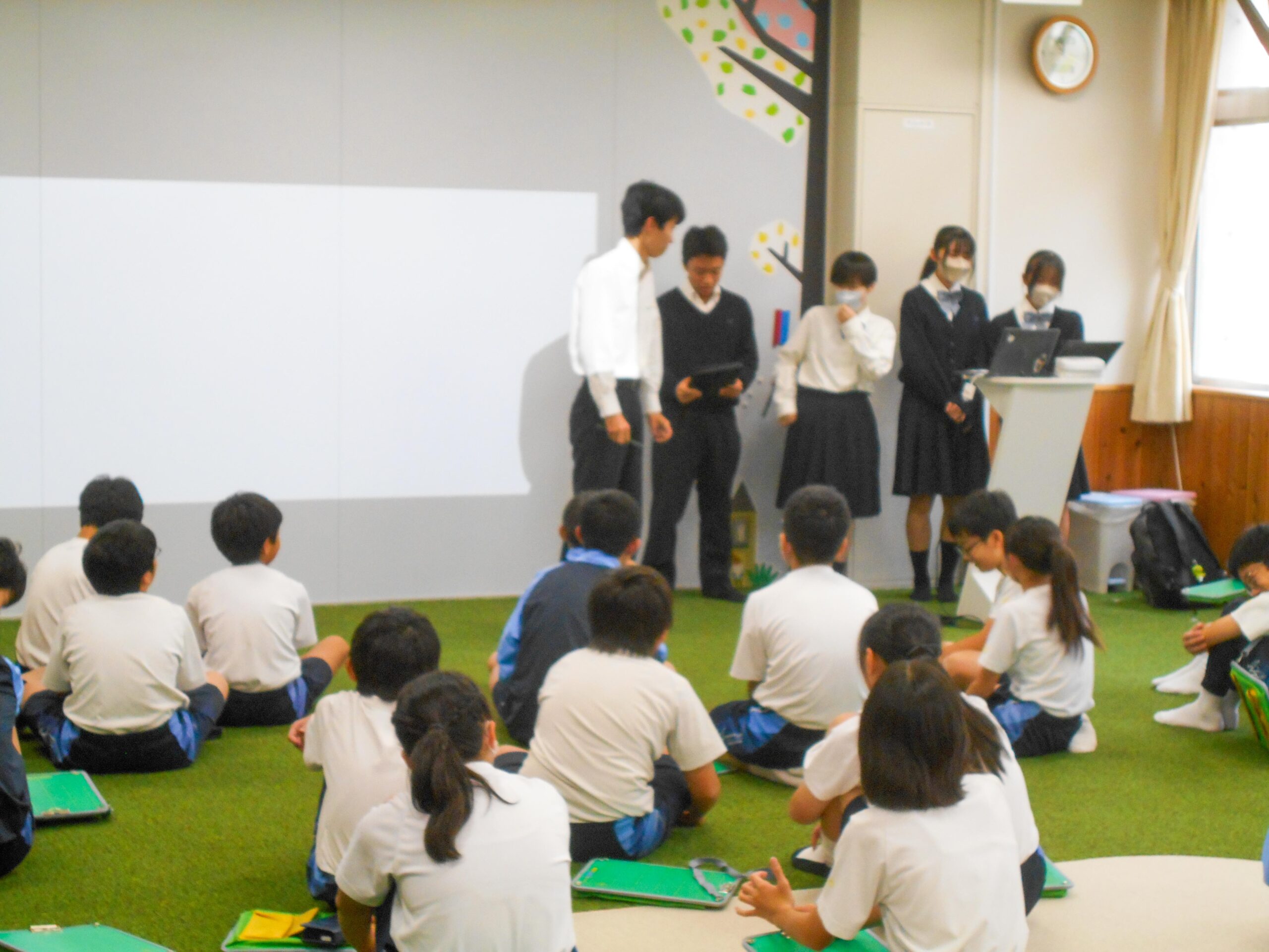 10月31日(金)に、高校の探究の学習の一環としてY2生(高校1年生)が、M2生(6年生)に、いじめに関するお話をしてくれました。