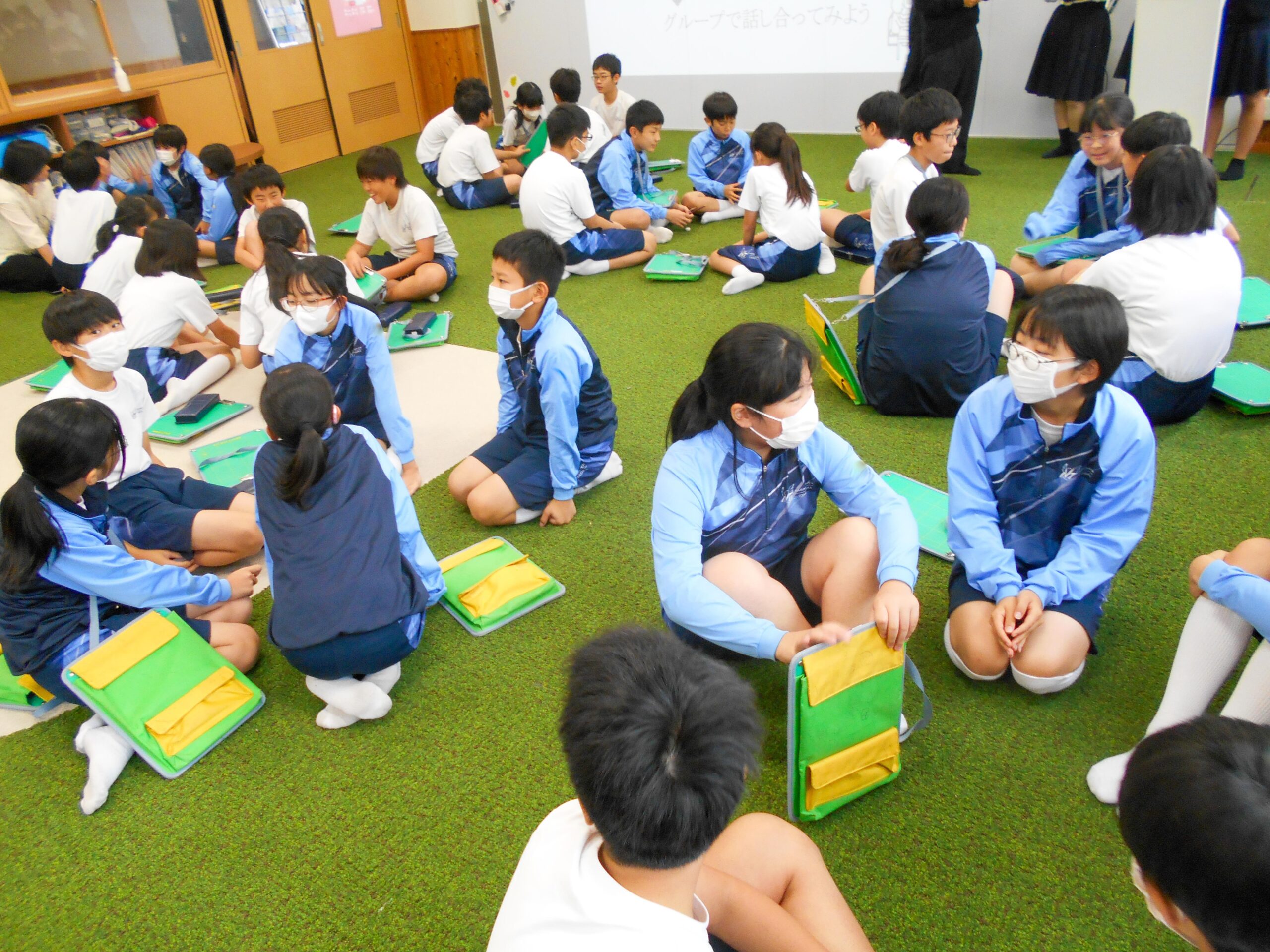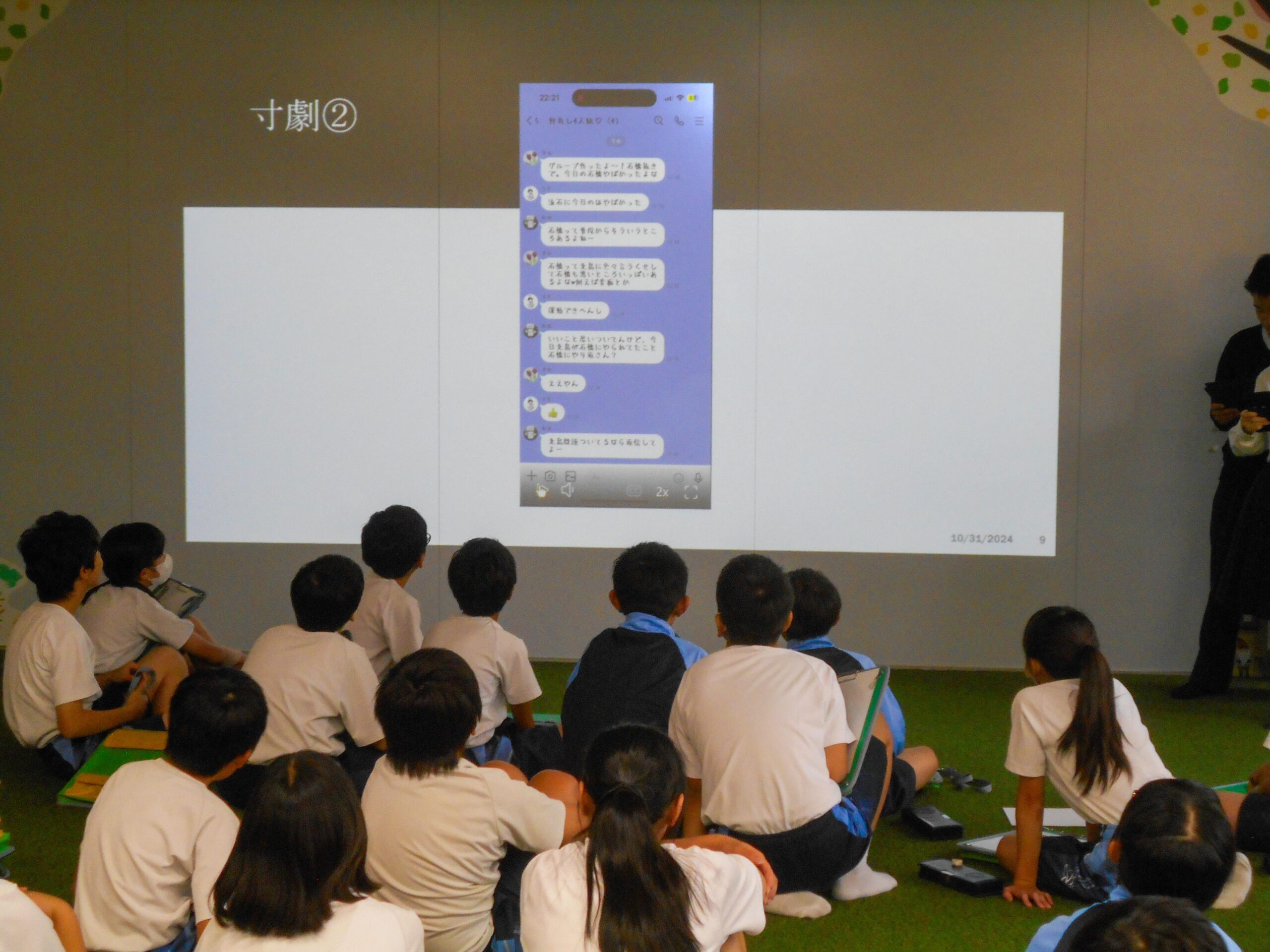 学びの森に集まったM2生は、お兄さん、お姉さんたちによる寸劇をまじえた問題に対して、グループで話し合いをしたり、発表をしたり、アンケートに答えたりして、とても有意義な時間を過ごすことができました。