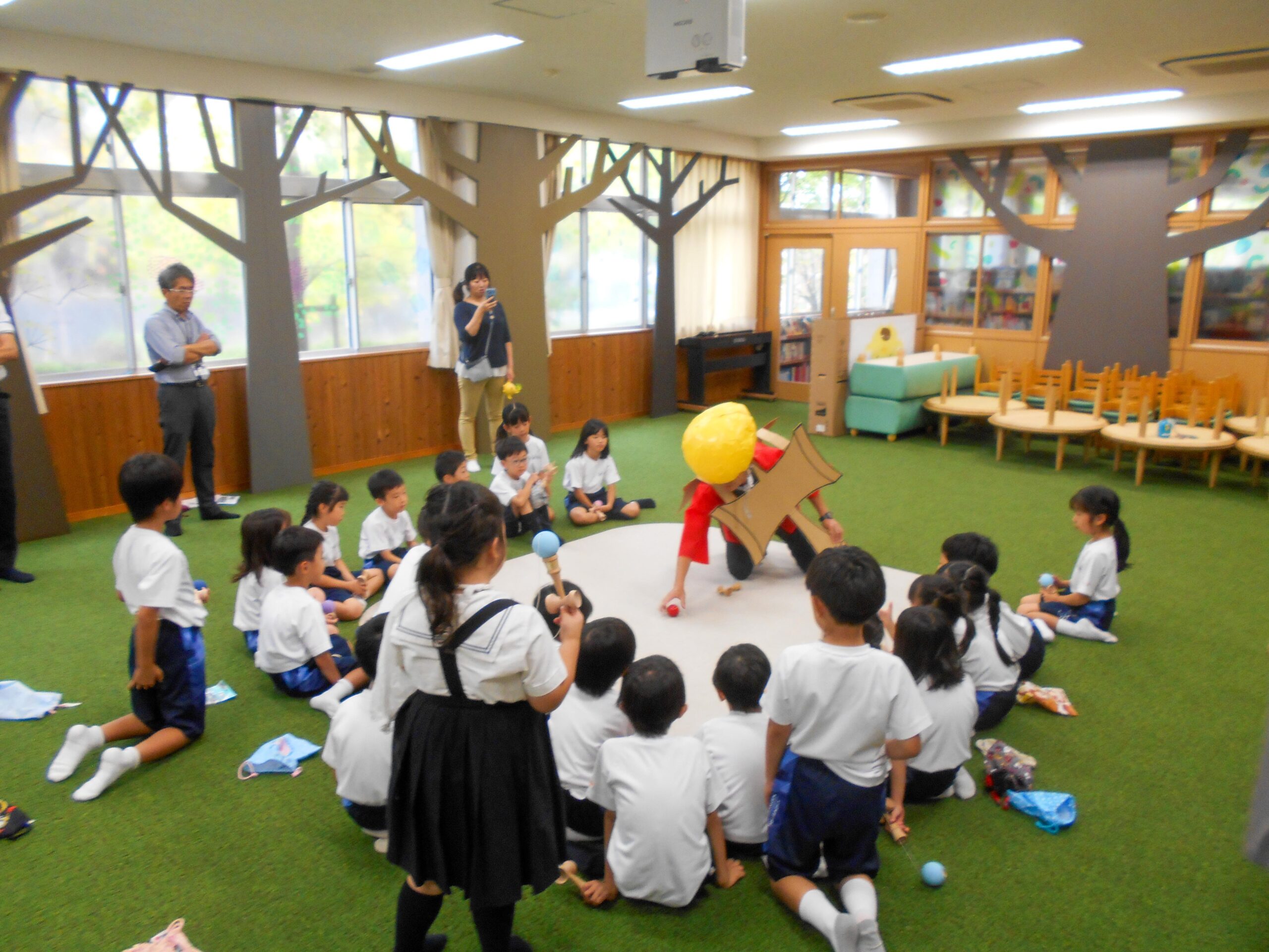 けん玉道にチャレンジ! 2024.10.17(木) Tweet P1生(1年生)の生活科の時間では、「けん玉道」が始まりました。 今回は特別ゲストにスーパーケンダマンがやって来て、いろいろな技を紹介したり、いっしょにけん玉をしたりしました。 さあ、これから練習してどんどん上手くなっていくことでしょう。 « 中間考査に集中! 稲刈り »