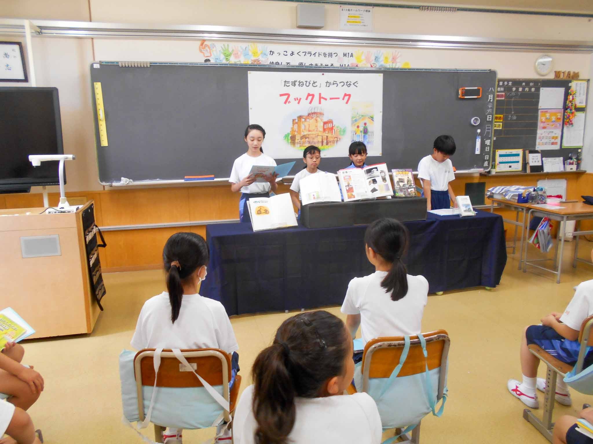 M1生は、平和学習の発表としてブックトークの練習や模型作りを行っていました。