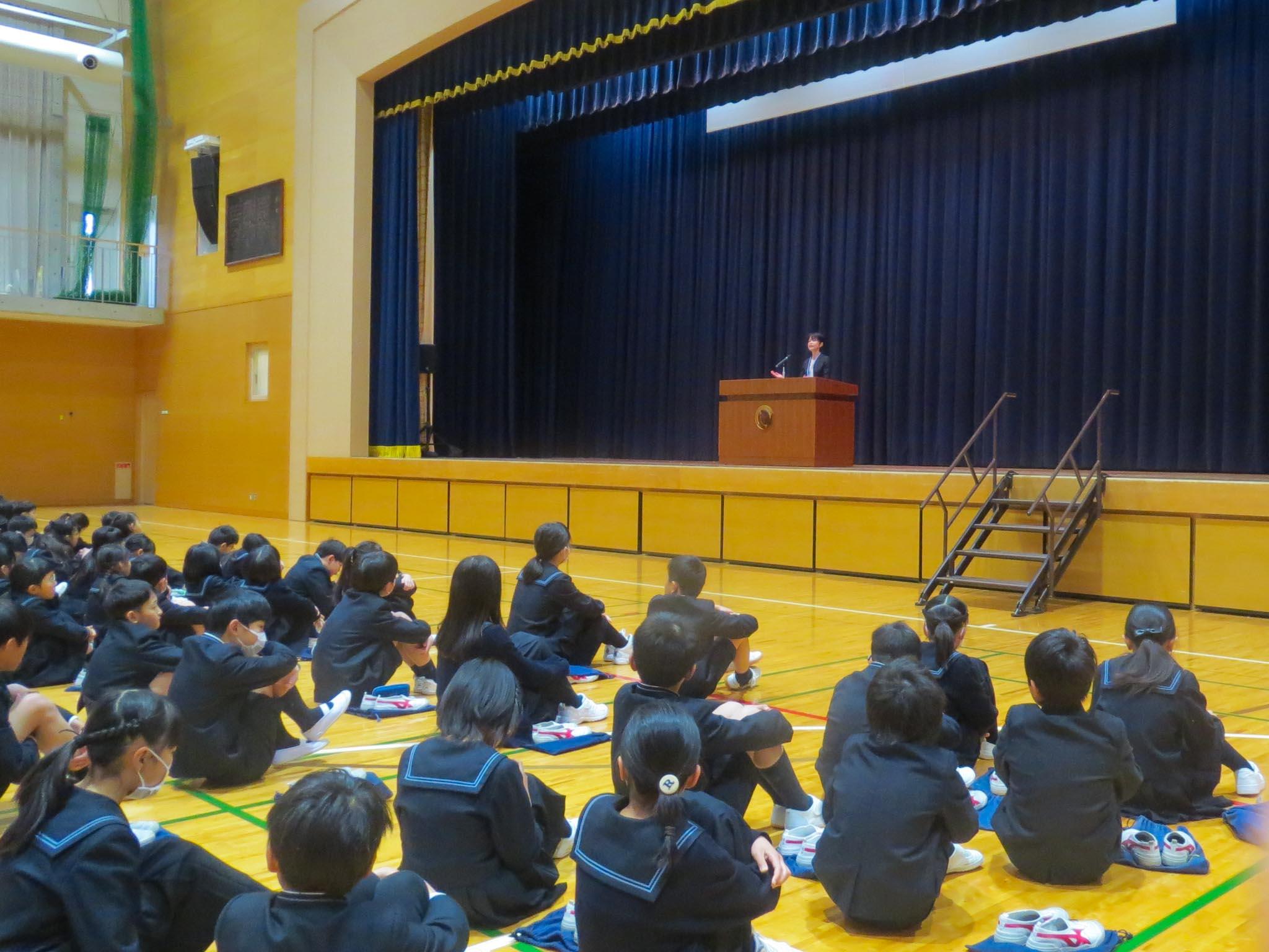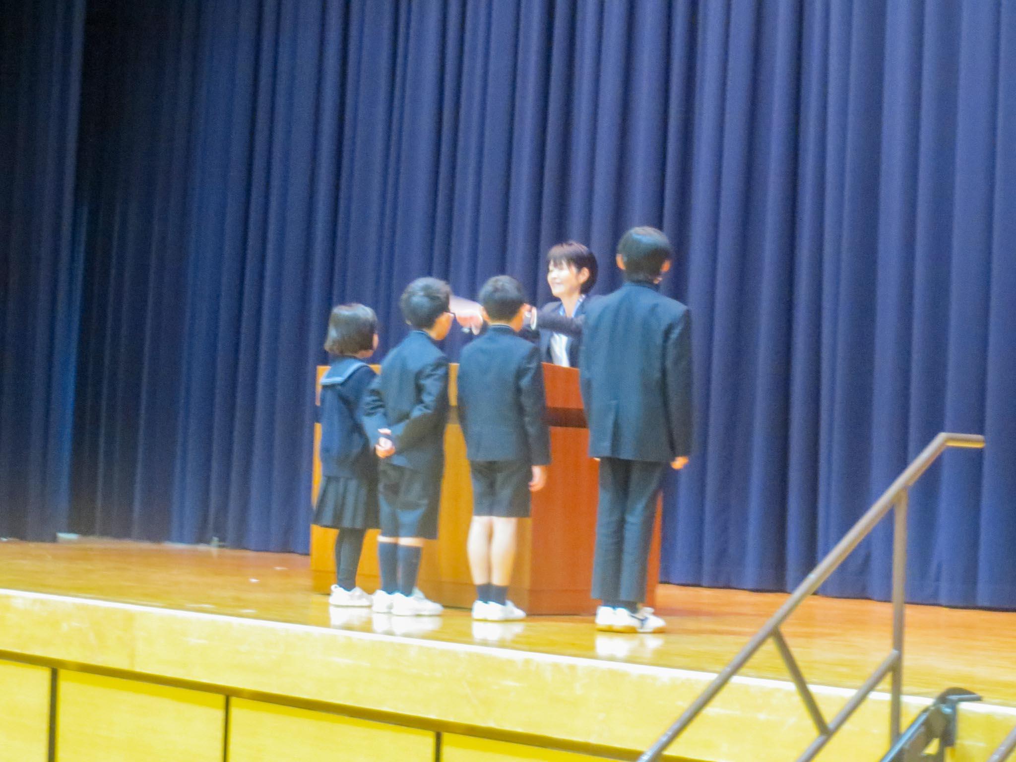 今年度最後の修了式を行いました。各学年の代表に修了証を渡すとともに、皆勤賞の子どもたちも名前を呼びあげて表彰しました。みんなの1年間の頑張りを認める式となりました。