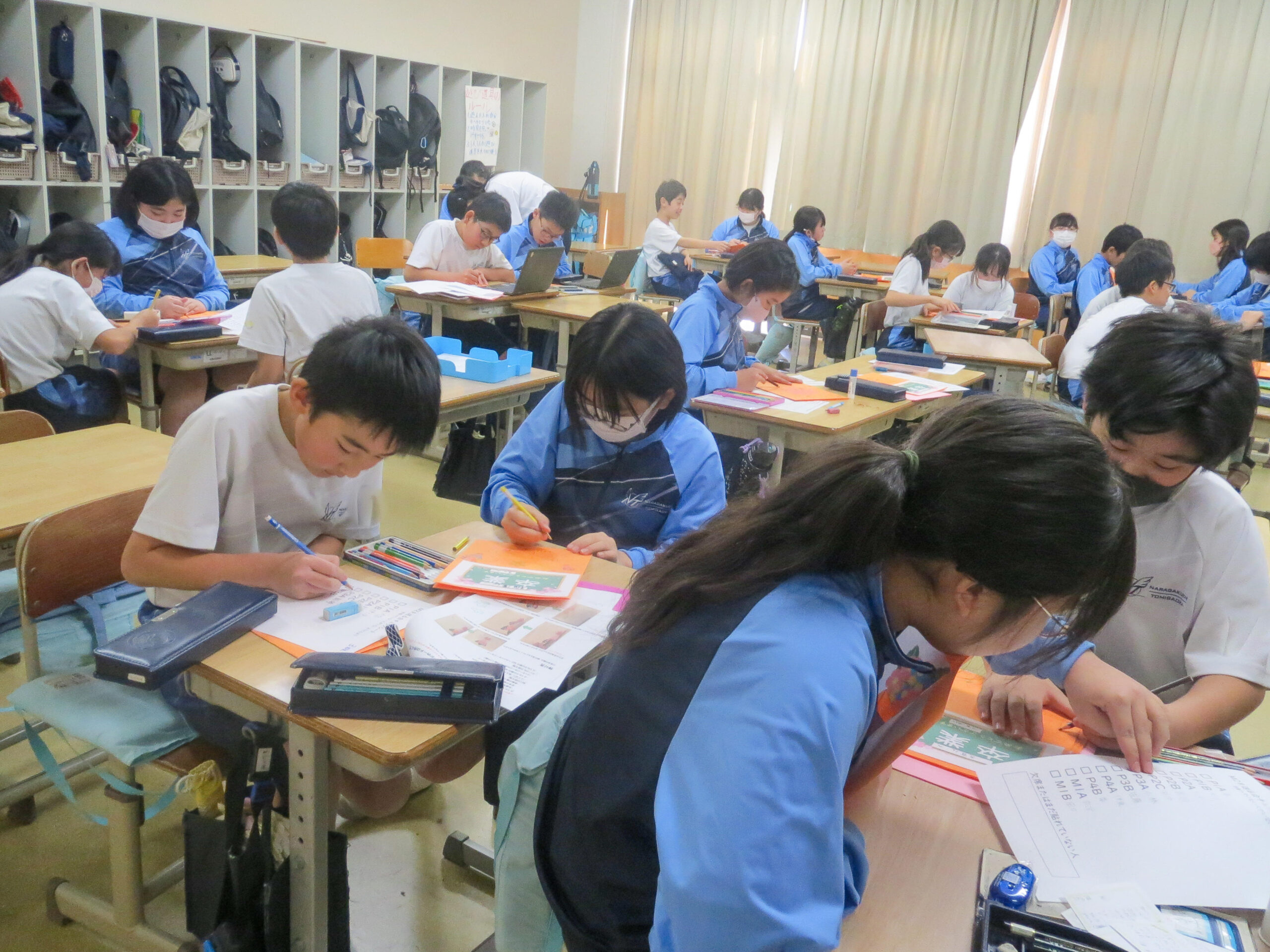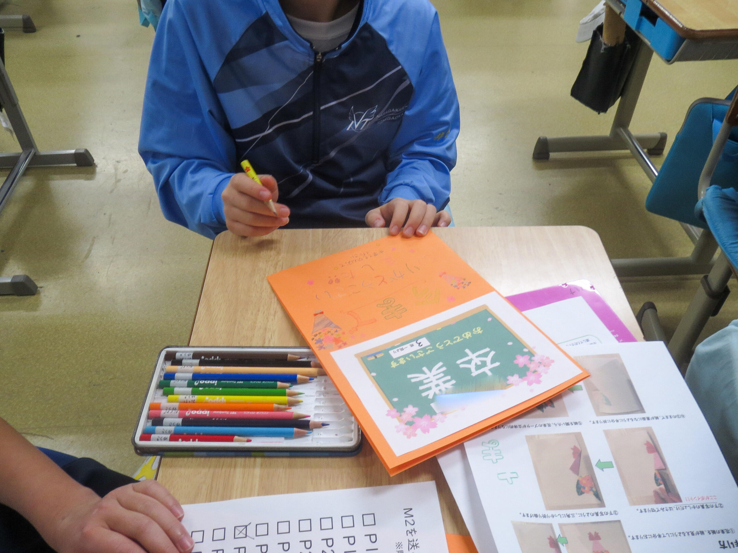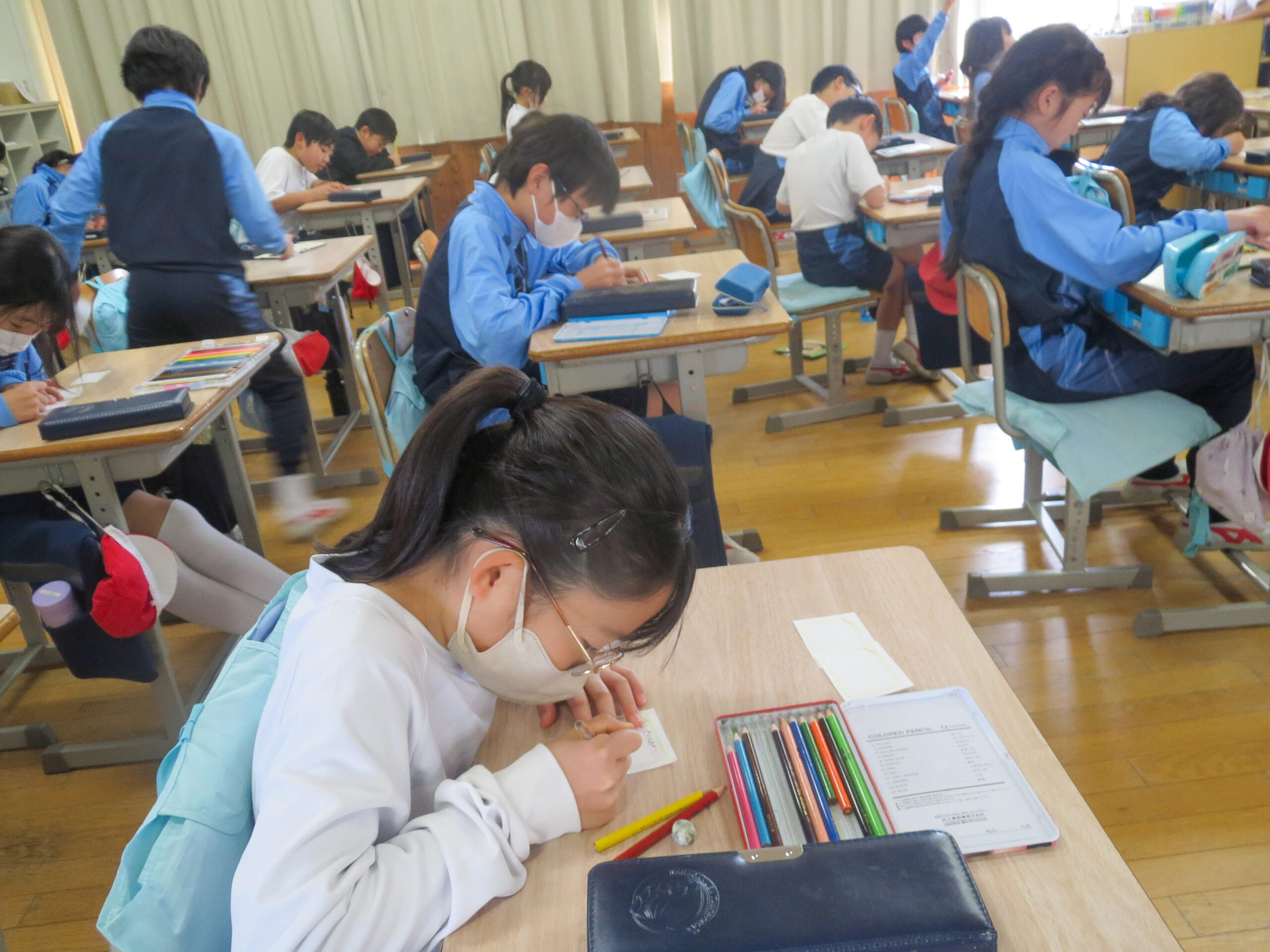 たてわりグループでリーダーとしてお世話になったM2生に感謝の言葉を届けようと、M1(小学5年)生が中心になってP1(小学1年)生からP4(小学4年)生に呼びかけて活動を行いました。本当は、グループごとに集まって活動しようと計画を立てていたのですが、感染対策のためにM1生がリモートで呼びかけて、それぞれ自分の教室でM2生への感謝のカードを書きました。M1生は、それをまとめて仕上げます。M2生を送る会でプレゼントする予定だということです!
