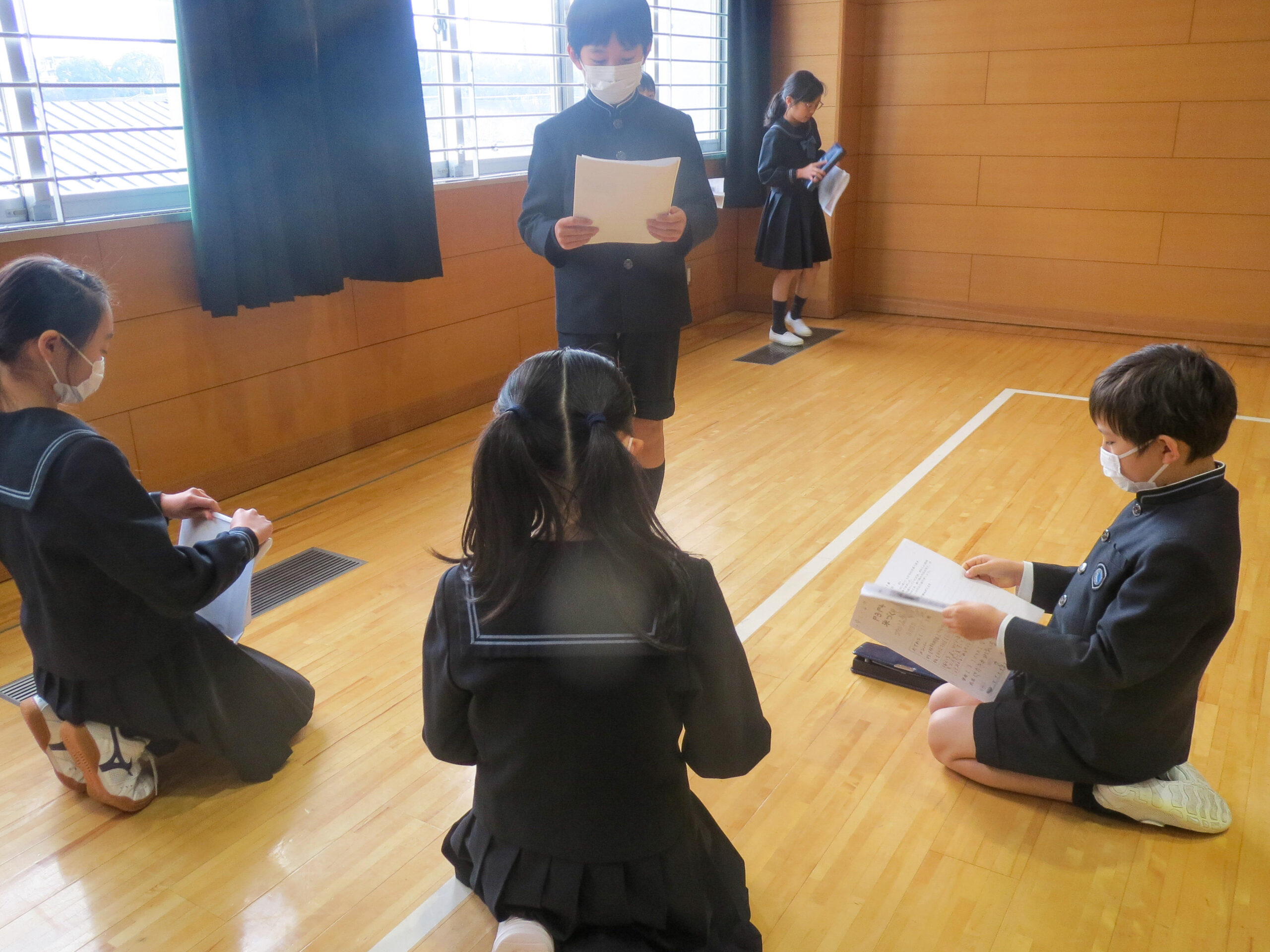 今年度、学校にある棚田で米作りをしたのは、P4(小学4年)生とP3(小学3年)生でした。P4生は、昨年度今のM1(小学5年)生と一緒に米作りをしてきました。経験を活かしながらの今年度の取り組みでしたので、いろいろな場面でP3生をリードする姿を見ることができました。今日は、グループごとに振り返りながら、P4生はP3生にいろいろな学んだことを伝えていました。「稲をかるときは、根元をかれば切りやすいことと、自分の方にカマを引くと切りやすいです。2年間お米を作って、こうやってお米がとれるようになったのは、飯田さんたちが手伝ってくださったからだと思います。この感謝は忘れないようにしたいです。…」などと伝えながら、P3生に来年の頑張りを伝えてくれました。