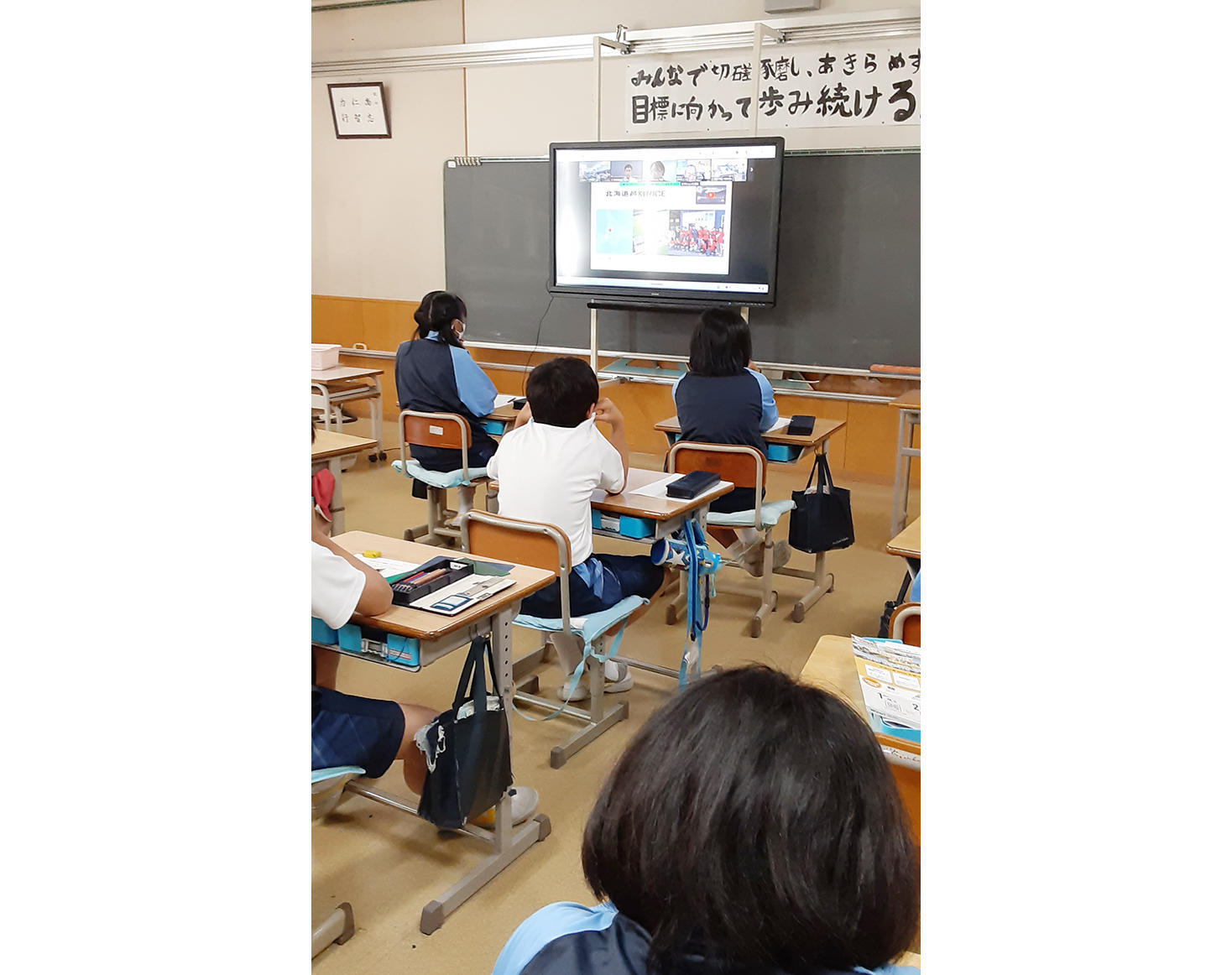 その一環として「SDGsみらい給食」和風カレーをいただきました。食品添加物の代替やグルテンフリーの実現にも優れた機能を発揮するとされている「ライスジュレ」をカレールーの代わりに使ったカレーです。P3(小学3年)生からM2(小学6年)生までが、オンラインでお話を聞きました。ライスジュレを作っている「YANMAR MARCHE」、お米の生産者「北海道芦別RICE」の方が、子どもたちに直接「声」を届けてくださったのです。