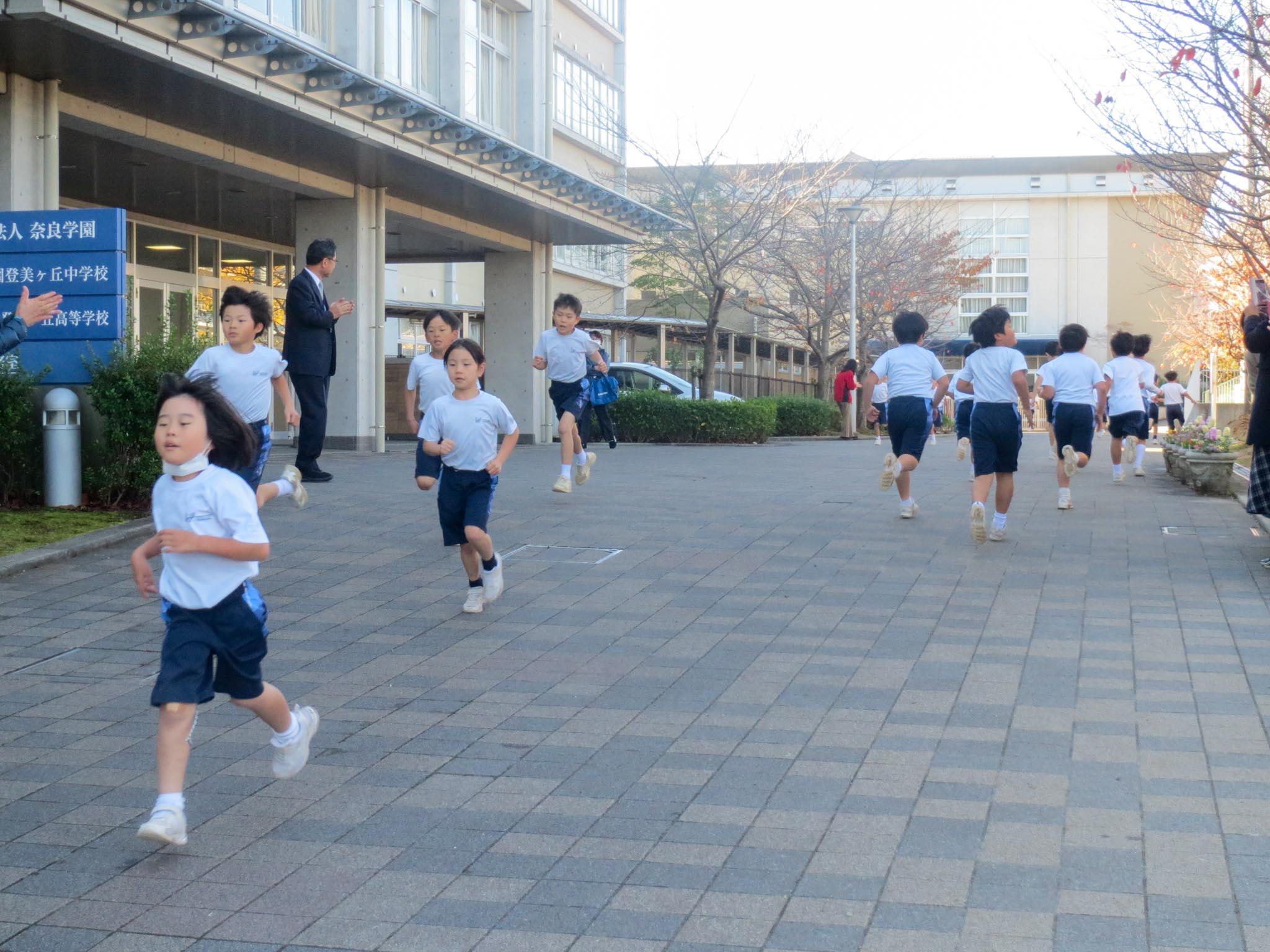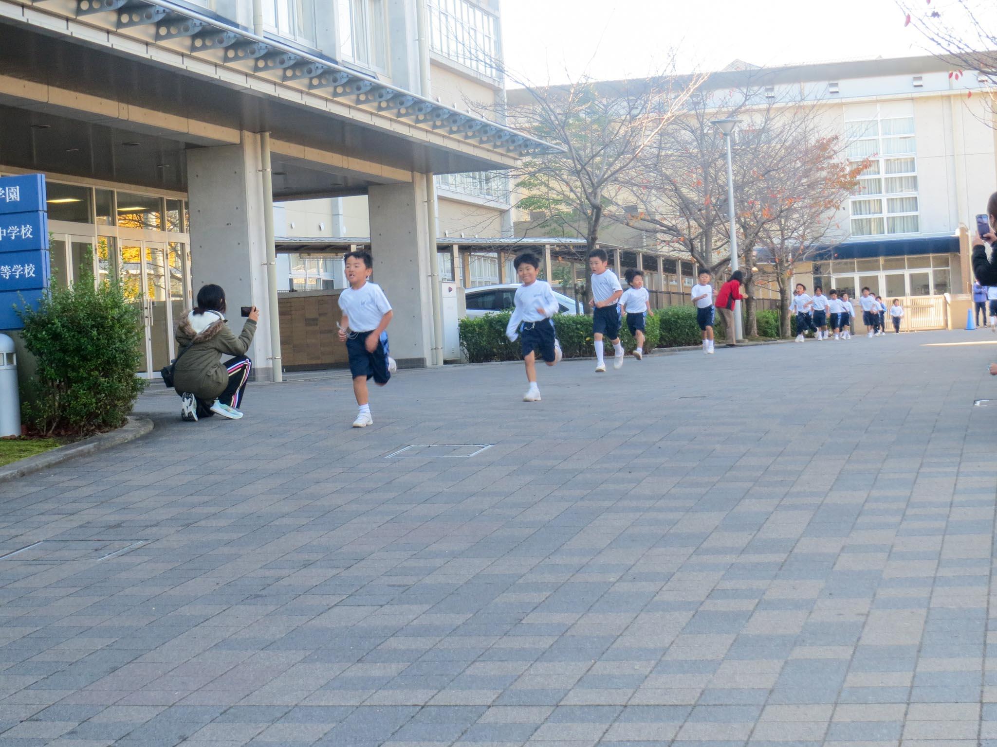 全学年の子どもたちが総合グラウンドの周りとプロムナードを走り切るマラソン大会です。10月ごろからマラソンカードを使って休み時間に走りながら自分を鍛えてきました。全校かけ足でも全学年で向かう力を高め、試走も行い、本番に備えてきました。1・2年生は約1㎞、3・4年生は約1.9㎞、5・6年生は約2.8㎞の距離を走ります。