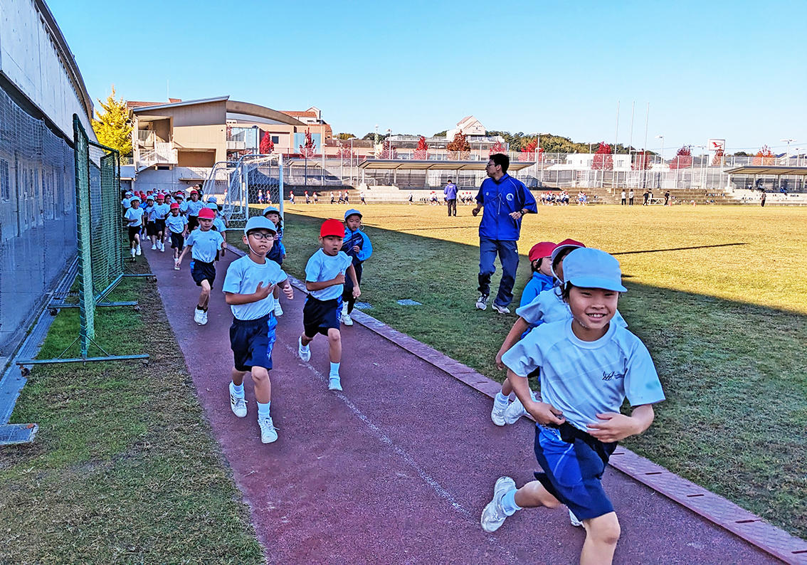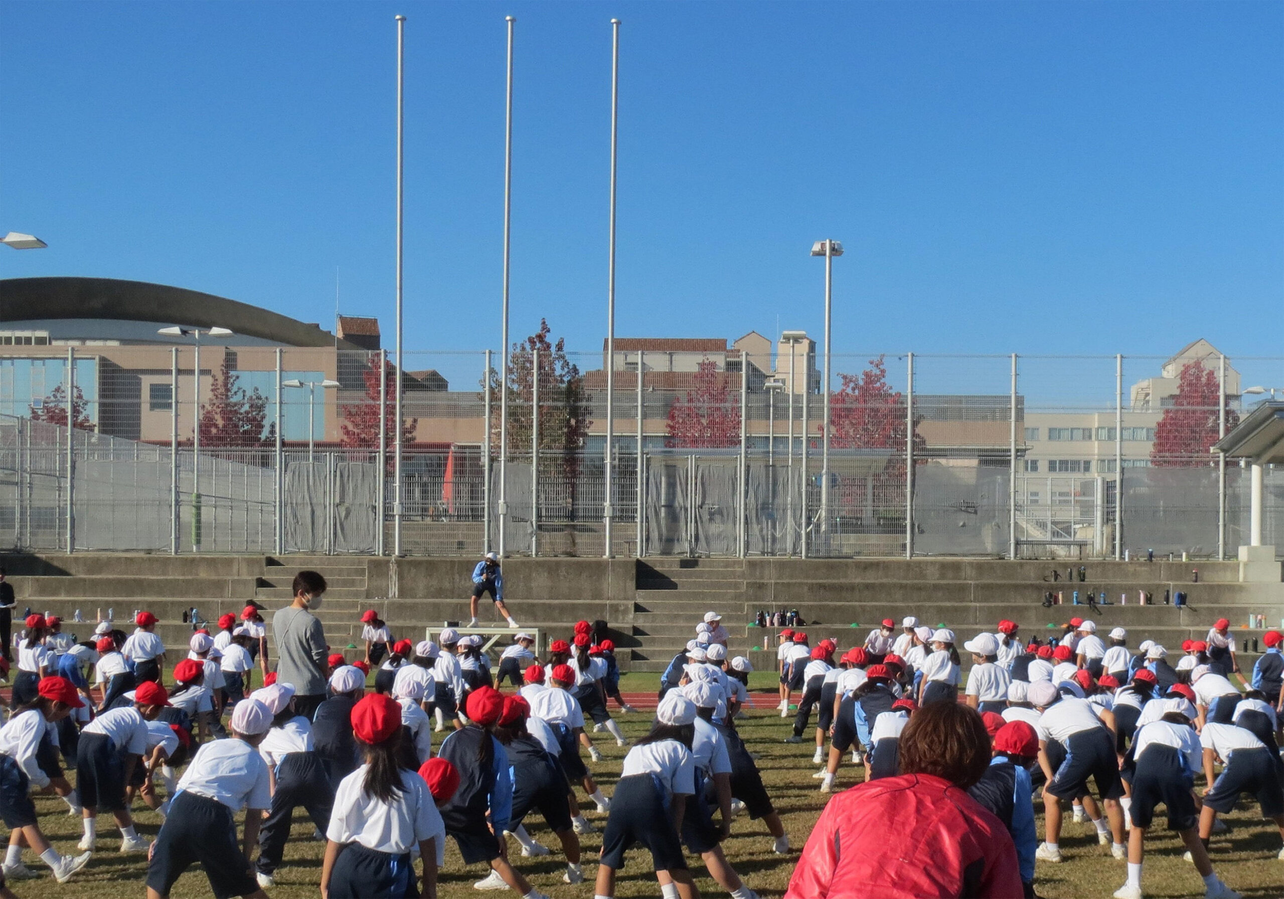 子どもたちで向かう力を高め合えるように、体育委員が準備体操も進めてくれたり、学年ごとのスタート直後のペースメーカーを務めてくれたりして取り組んでいます。
