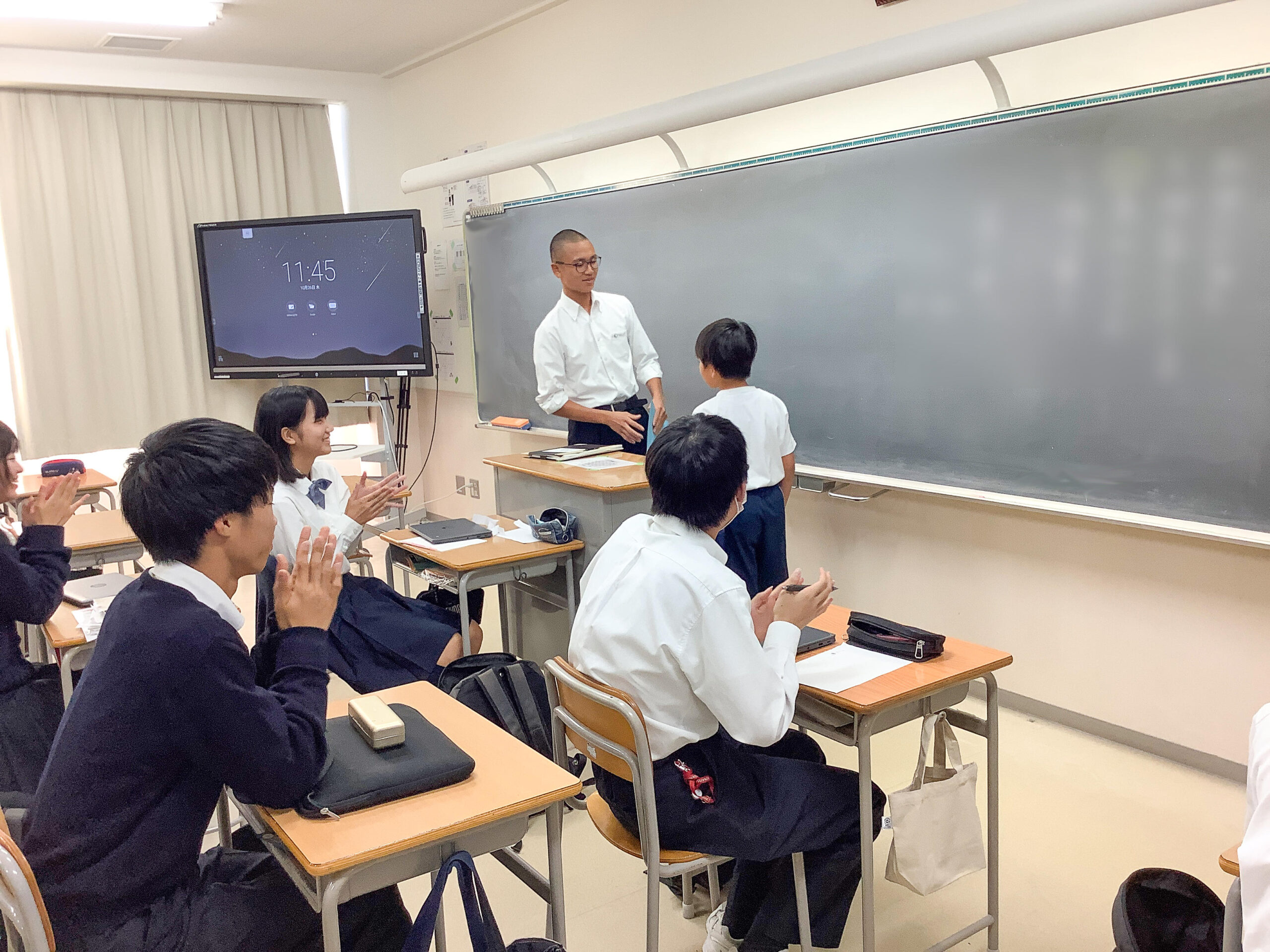 こうして、出来上がったメッセージをもって、Y2生のクラスに行く日がやってきたのです。各クラスから代表者1名でY2生のクラスの前で代表のお姉ちゃんやお兄ちゃんに渡しました。笑顔で迎えてくれたY2クラスのみんなから拍手をもらっても、まだ多少緊張の子どもたちでした。Y2生のみなさん、ありがとう!