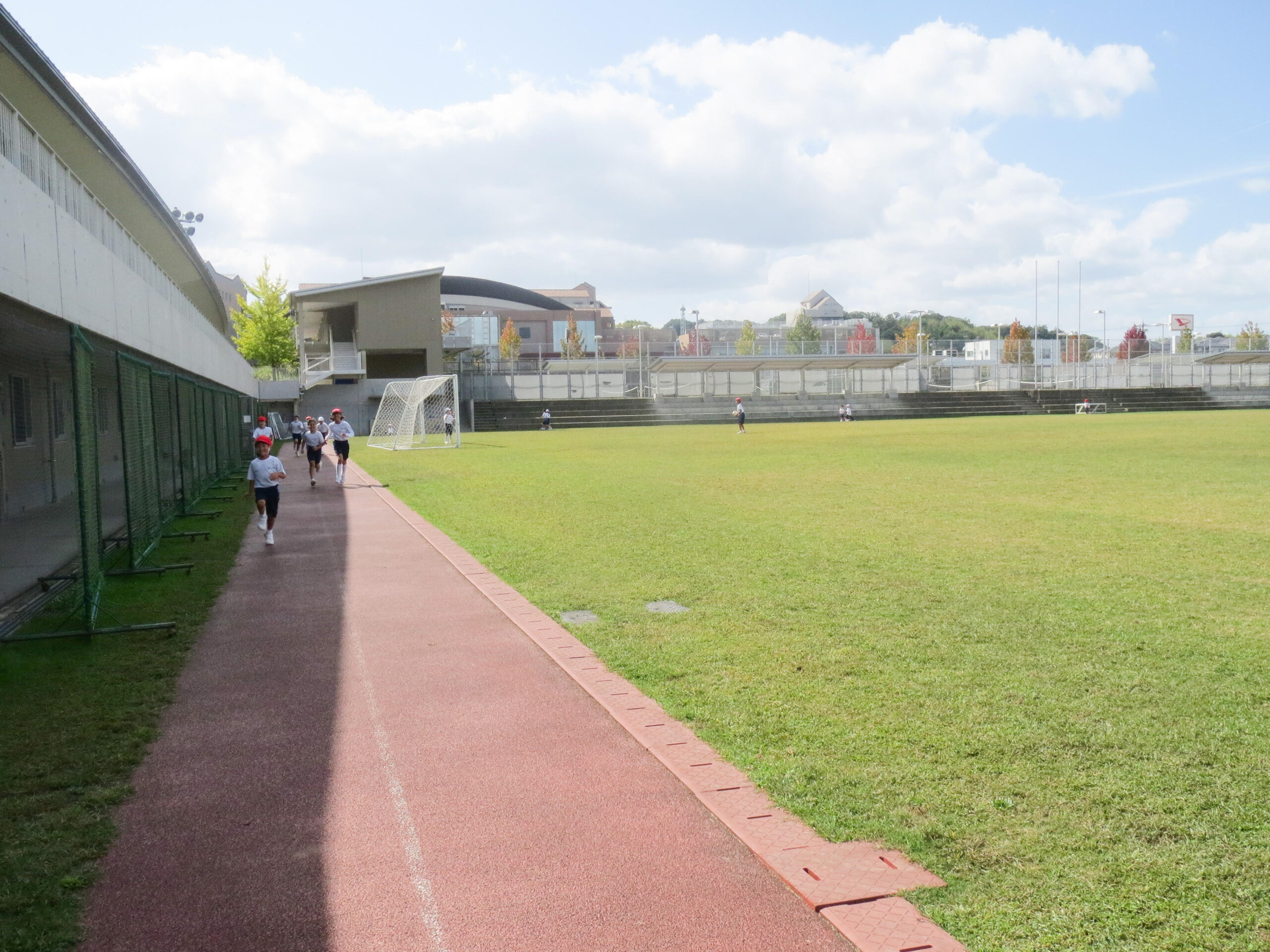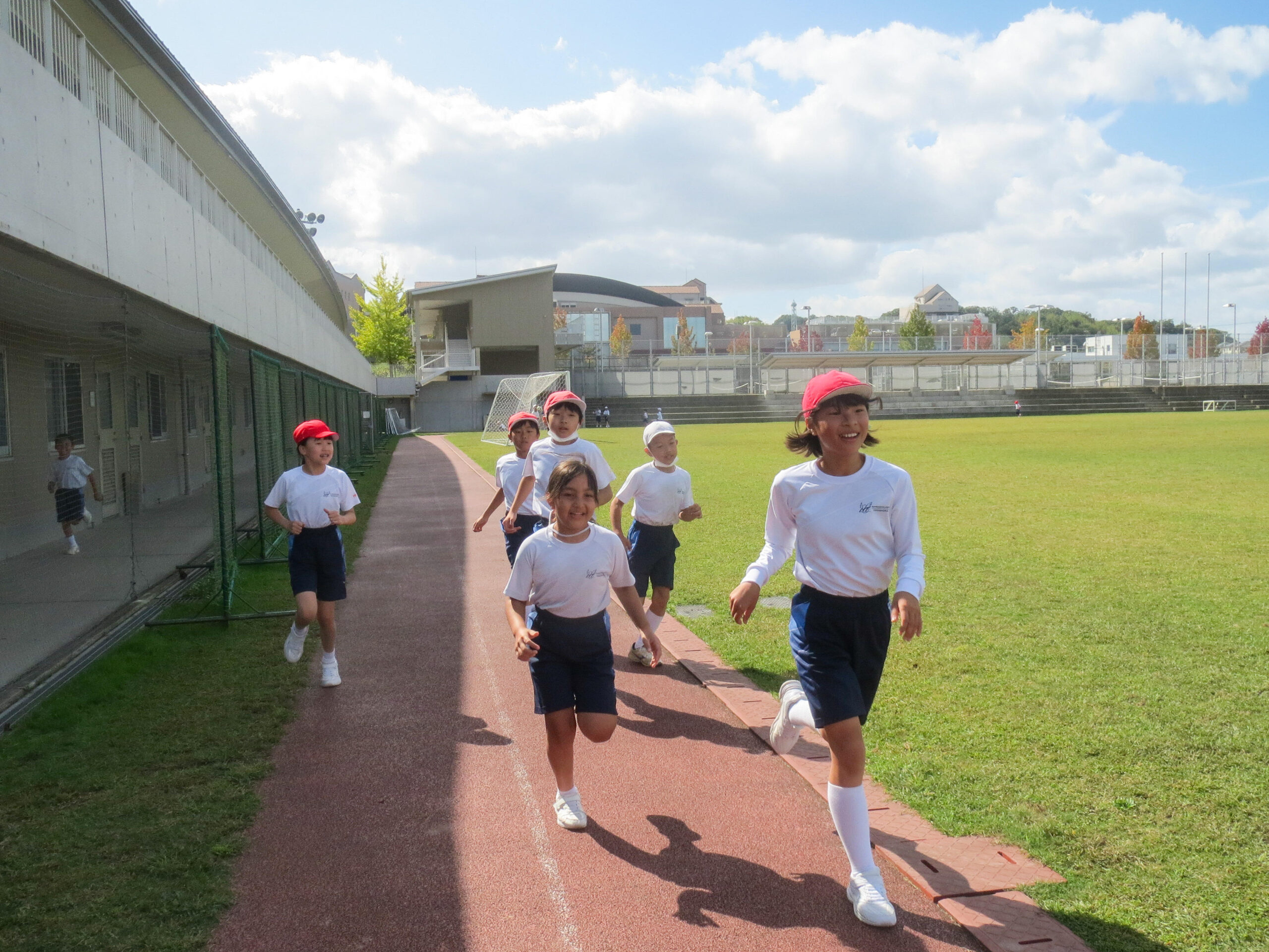 昼休みに総合グラウンドに出てみると、一生懸命に走っている子どもたちがいます。11月終わりのマラソン大会に向けて、走った数だけマラソンカードが塗りつぶせるのです。