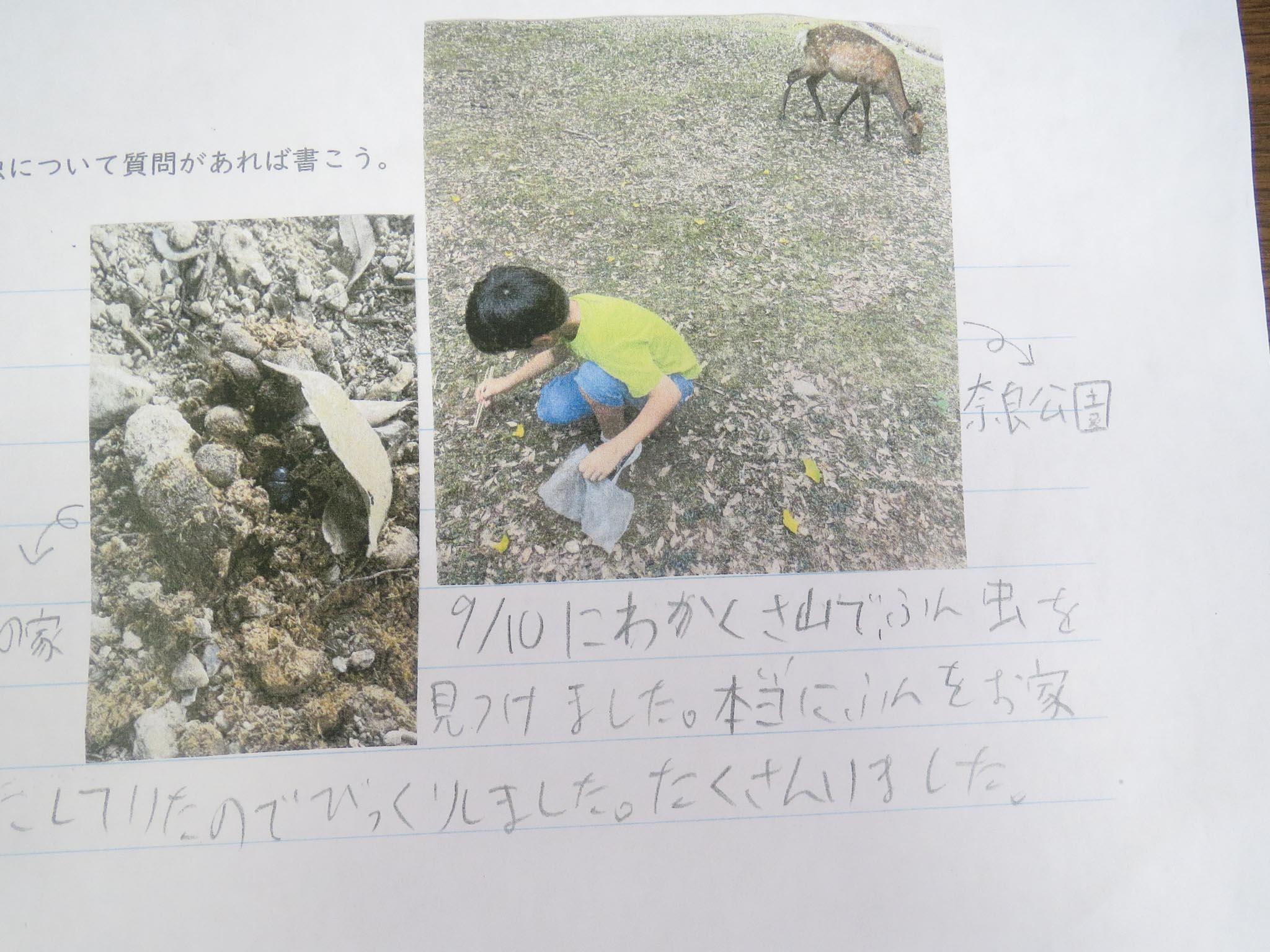 後日、中村館長への質問などの中に、実際に若草山に行って糞虫を見つけ、糞を家にしている様子を観察してきた子どものお手紙がありました!
