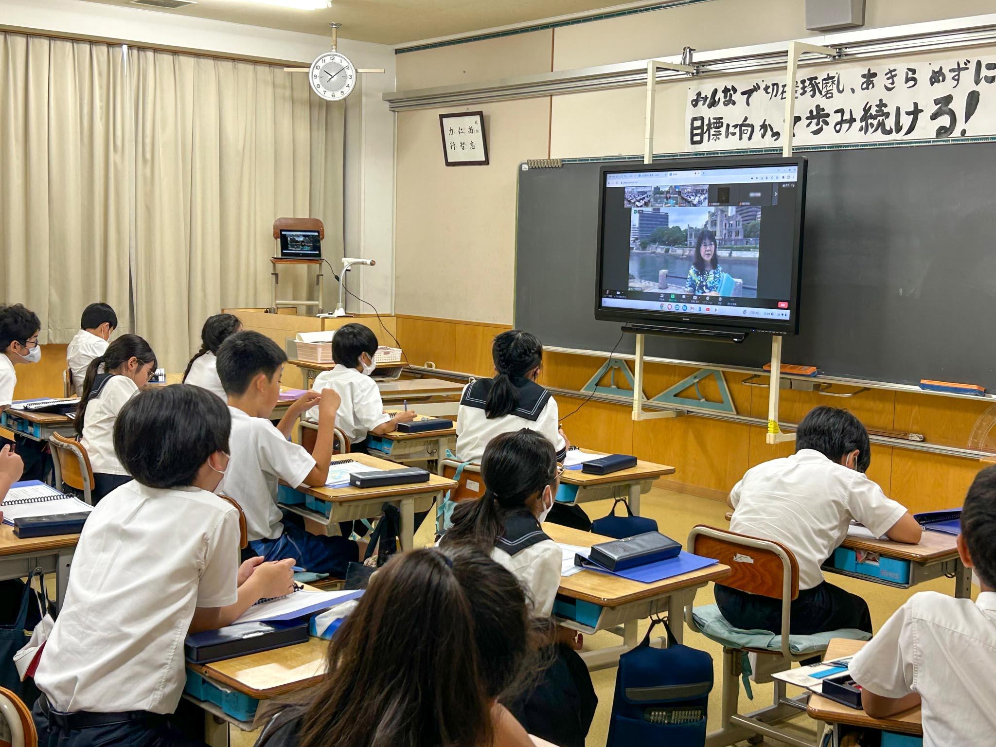 2学期に広島への宿泊学習を予定しているM1(小学5年)生が、事前学習としてオンラインで広島を訪れました。