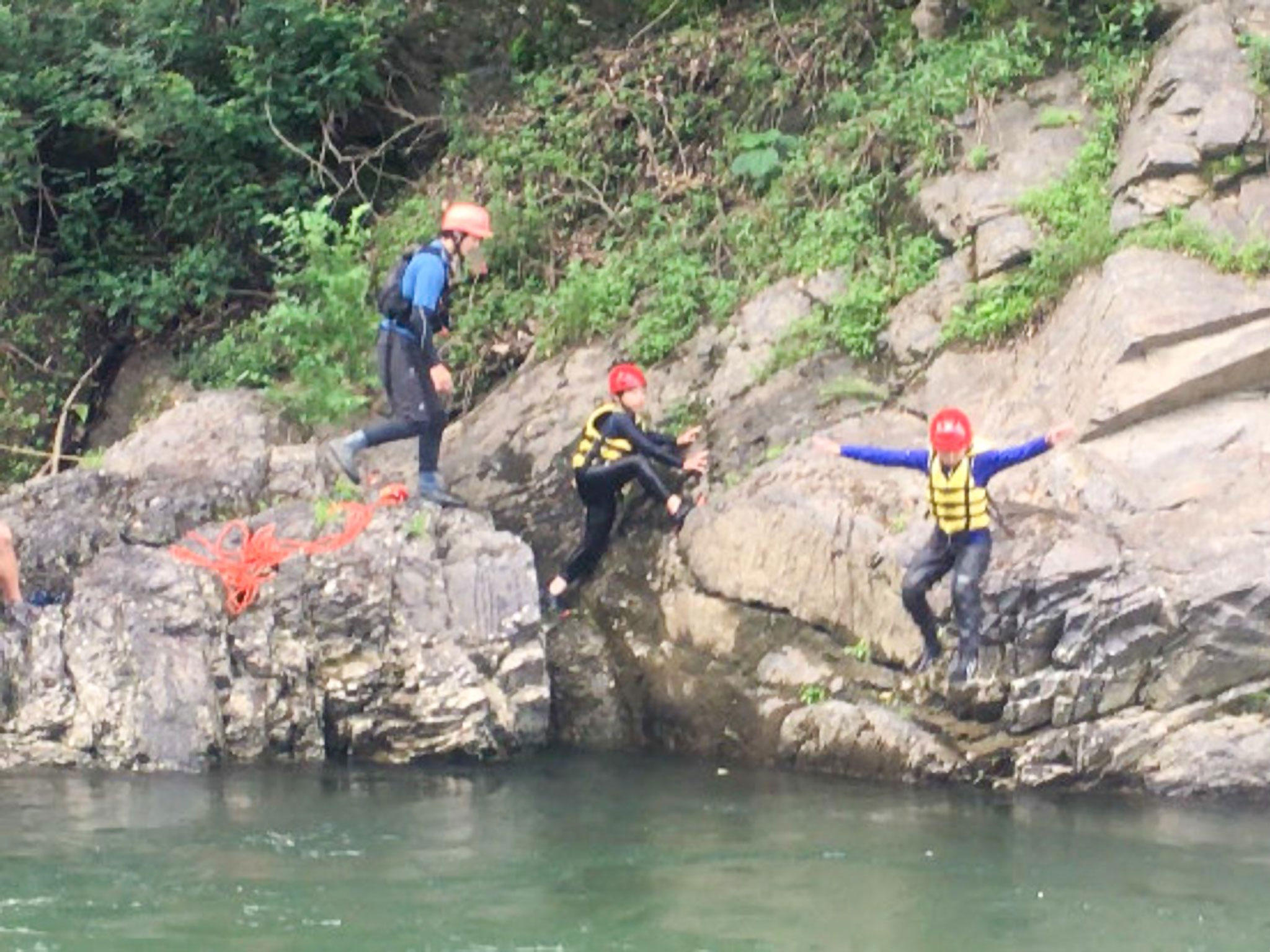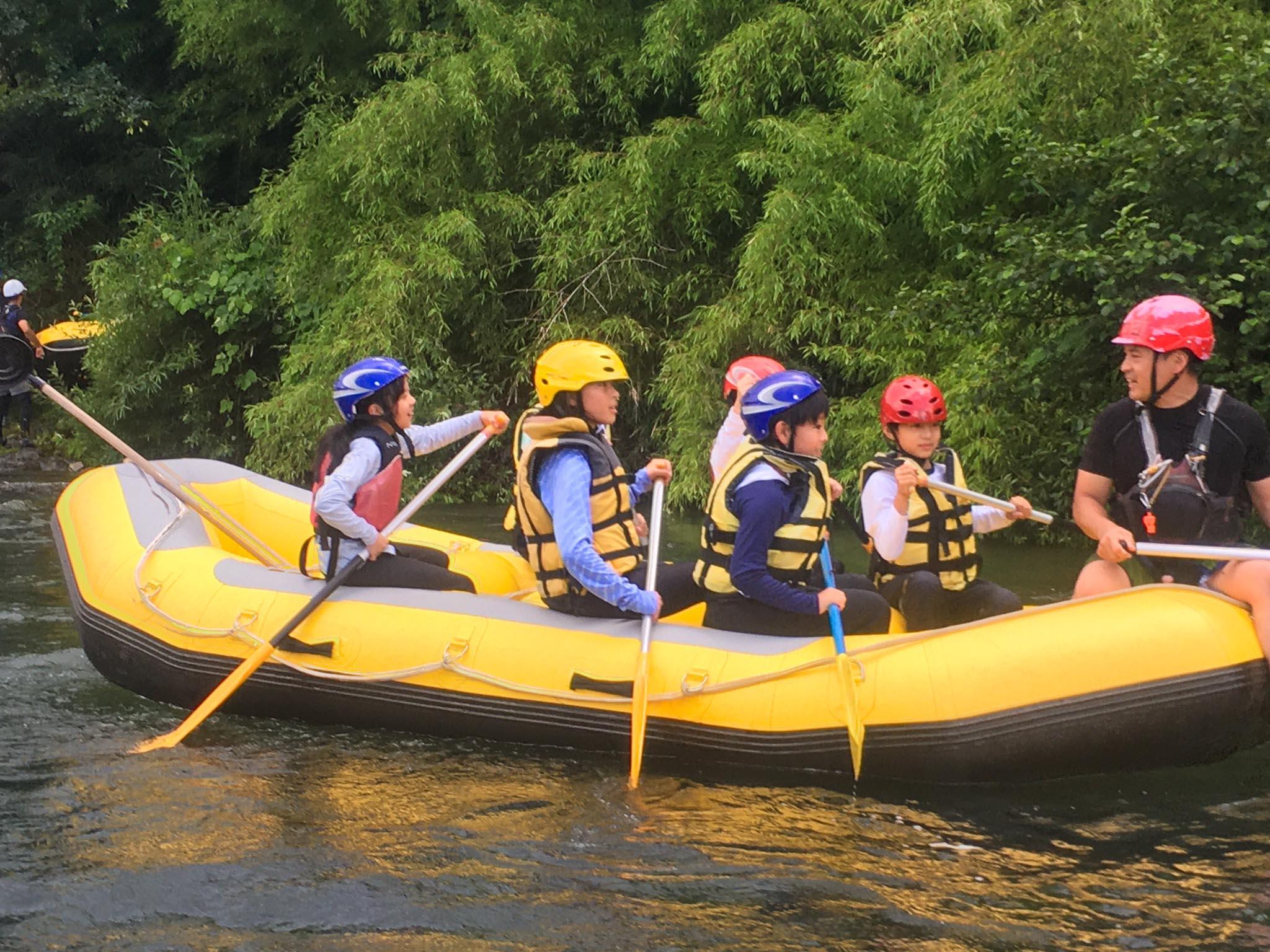 初日はラフティングを楽しみました。川の流れや水の冷たさを感じたり、勇気を出して岩場から川に飛び込んだりと自然を全身で感じました。宿についたら部屋で今日の振り返りを記録したり、みんなと楽しく食事をしたりしました。