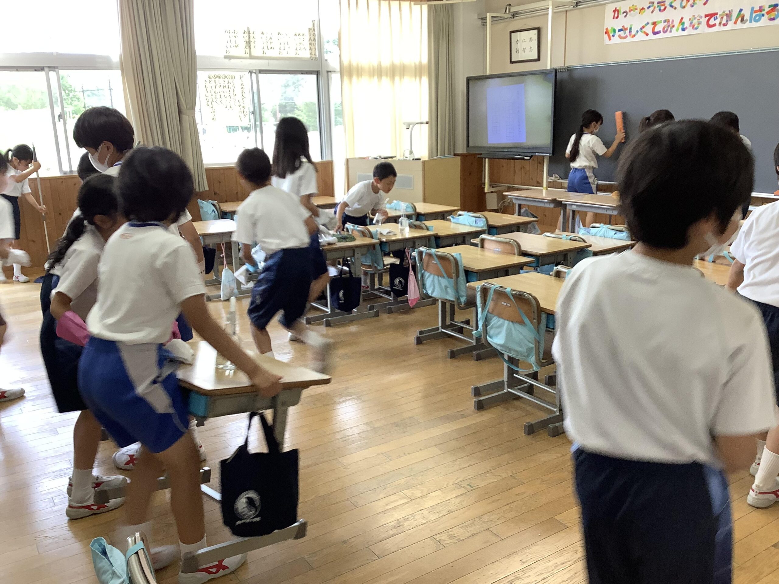 「今日、1年生に掃除を見せました。てきぱき行動して、時間をあまらせました。1年生や先生にもほめられたのでうれしかったです。早いからといって、ぐちゃぐちゃにやっているのではなく、きちんとやって早くできたと思いました。ほくは、ハンディモップだったので、初めにつくえをふく、そしてほこりがたまっているところにモップをして、できたと思います。1年生がまねをして上手にできたらいいと思いました。上手になったら見せてもらいたいと思いました」
