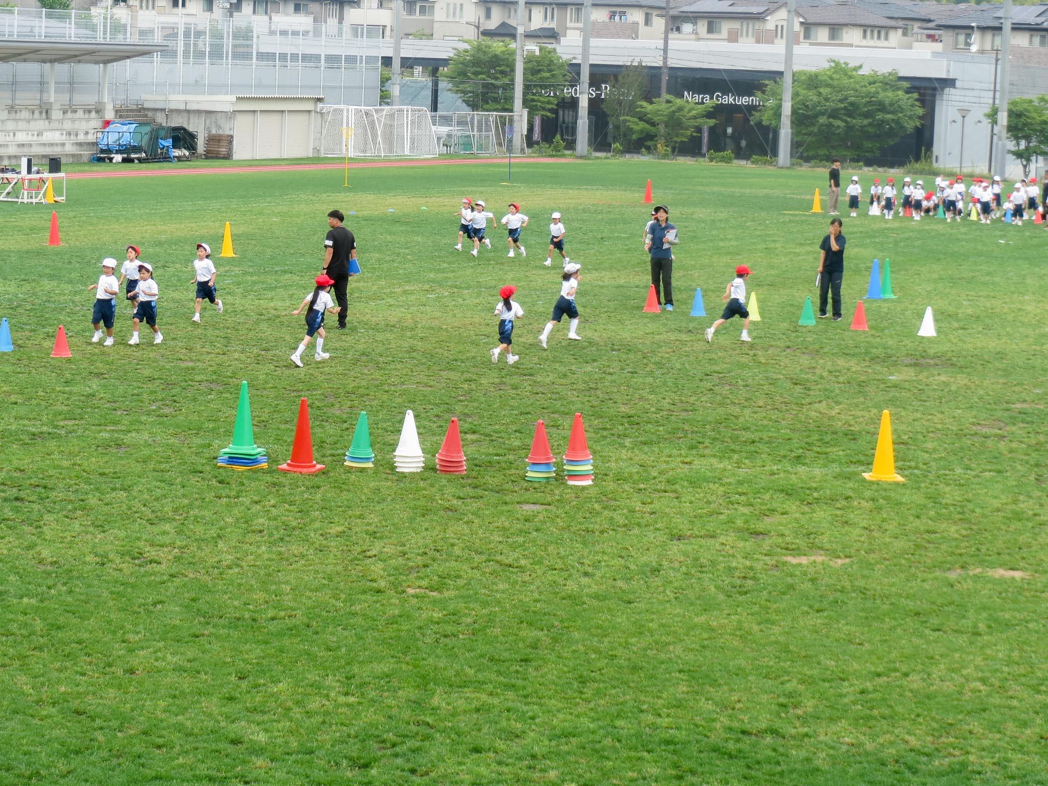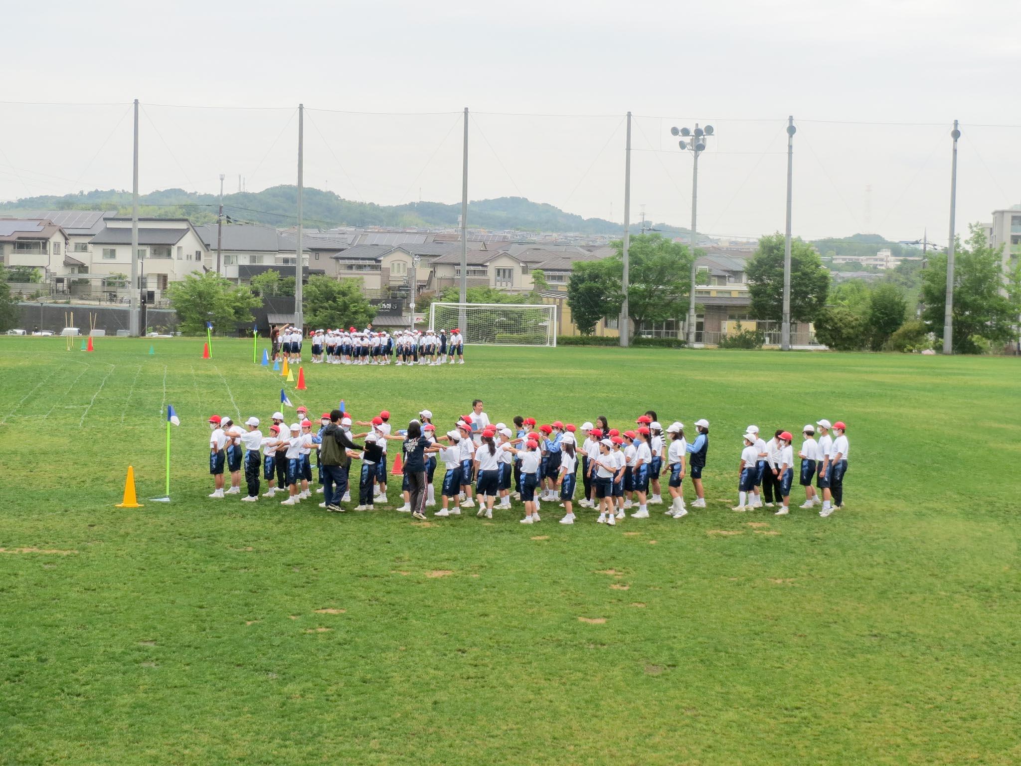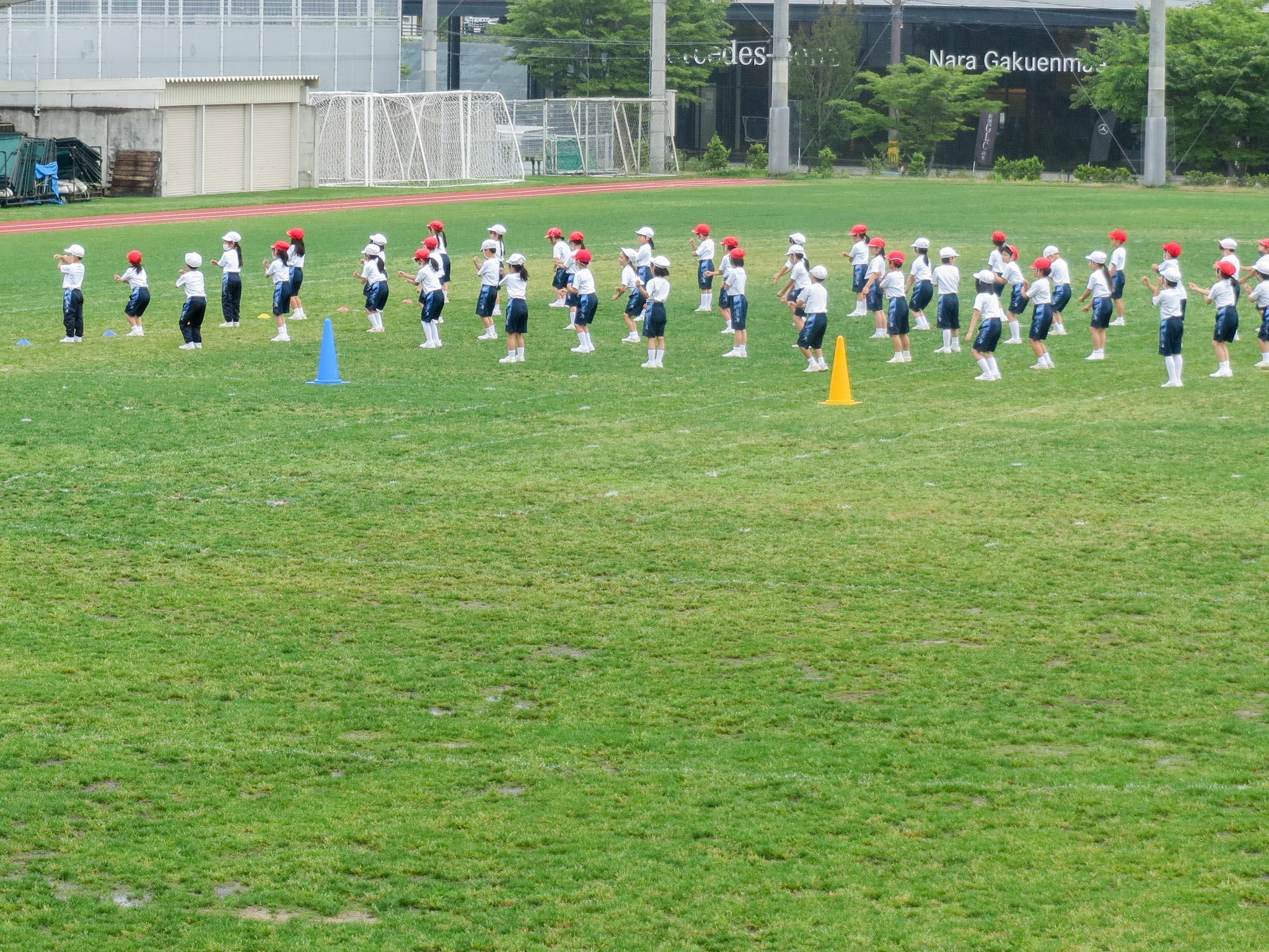 週末に行われる予定の「なとみんピック」。久しぶりに全学年がそろってできる、ということから、子どもたちはスローガンを決めたり、学級旗を作成したり、プログラムを作成したりして準備を進めてきました。また、高学年の子どもたちは、準備や決勝、放送など、一人一人の役割を果たそうと意気込んでいます。そんな中での予行練習。