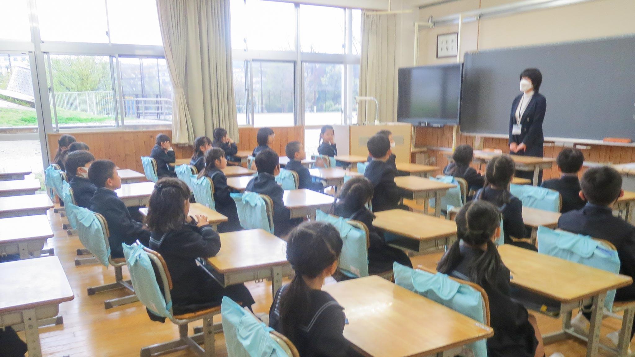 始業式後は、学年全体で学年開き、各学級で学級開きです。P1生もしっかり座ってお話が聞けています。すばらしい!