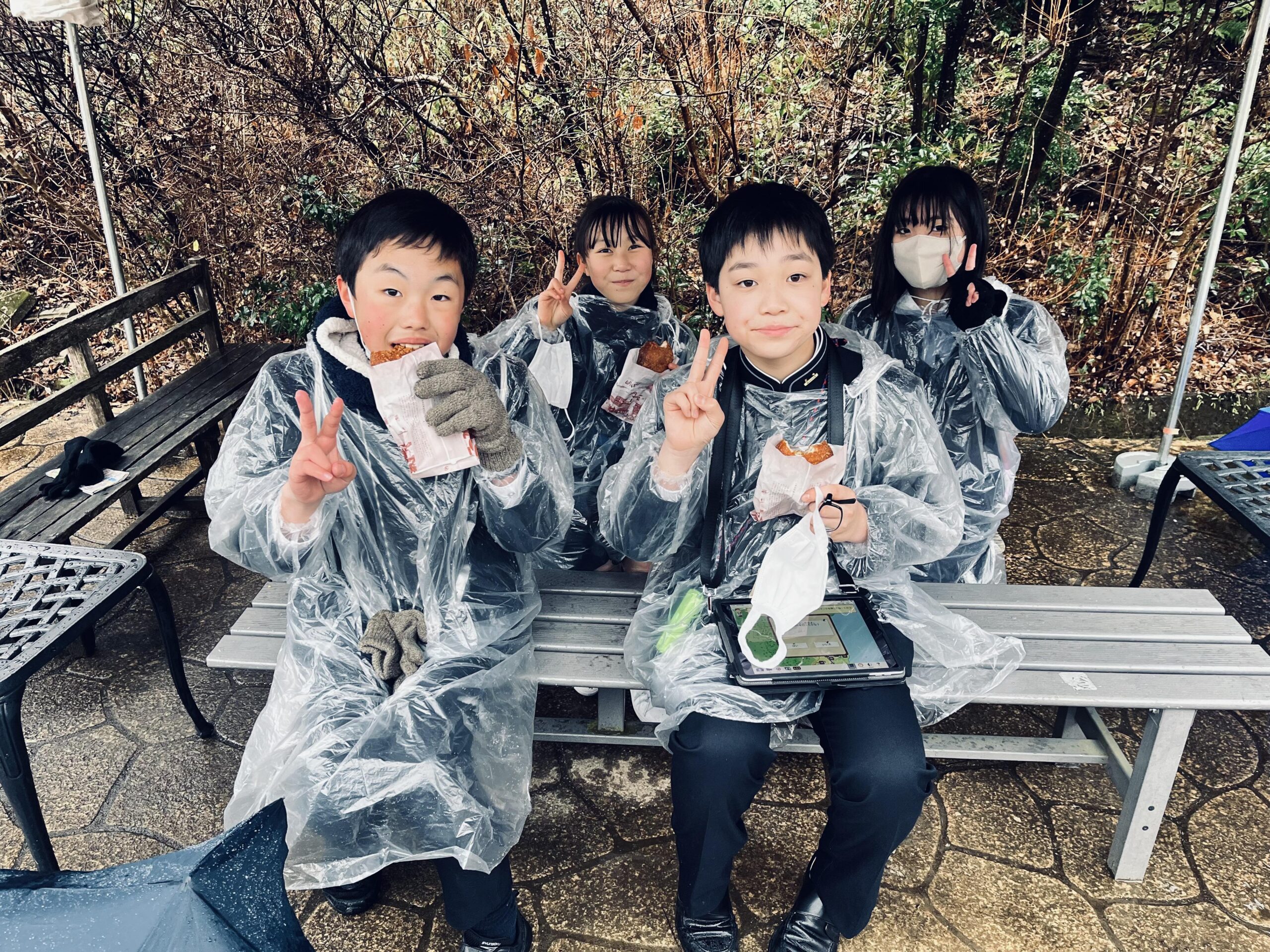 残念ながら雨の中での活動となりましたが、子どもたちはグループで協力して地図を見ながら、目的地を探していました。雨の中での活動で疲れましたが、カレーパンやコロッケや小倉ドックを食べて最後まで元気に活動できました。
